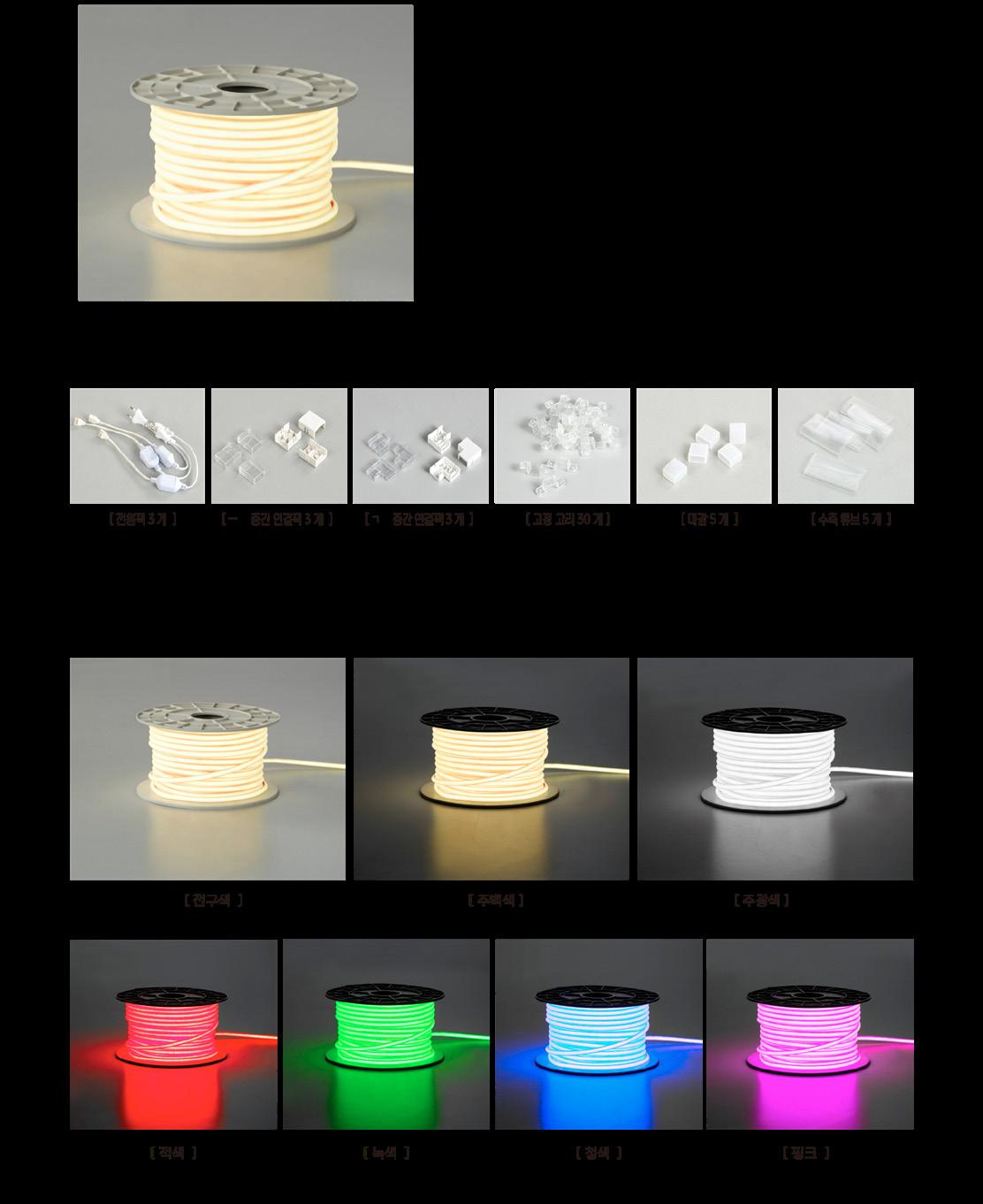 구성 전원 3개, ㄱ연결 3개, 중간연결 3개, 고정고리 30개, 마감 5개, 수축튜브 5개