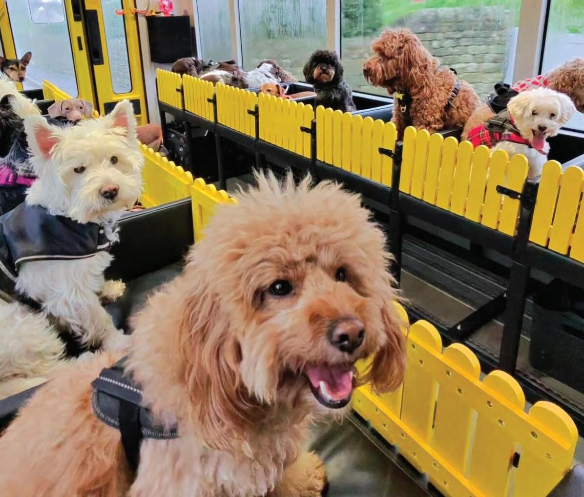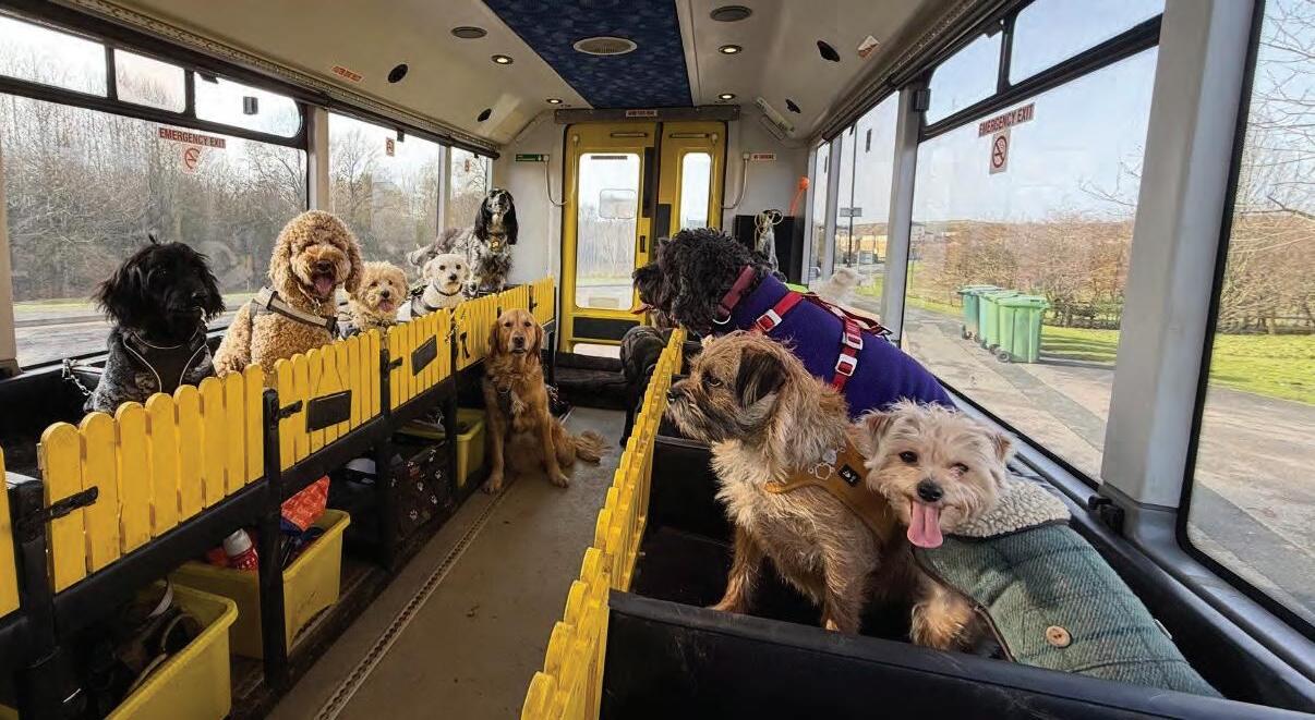 exercise and socialisation in a safe and caring environment. Our specially adapted school bus collects Billy's friends before heading to our secure Bark Park set in the beautiful Cow and Calf moors of Ilkley – where tails wag, paws run free, and friendships grow.