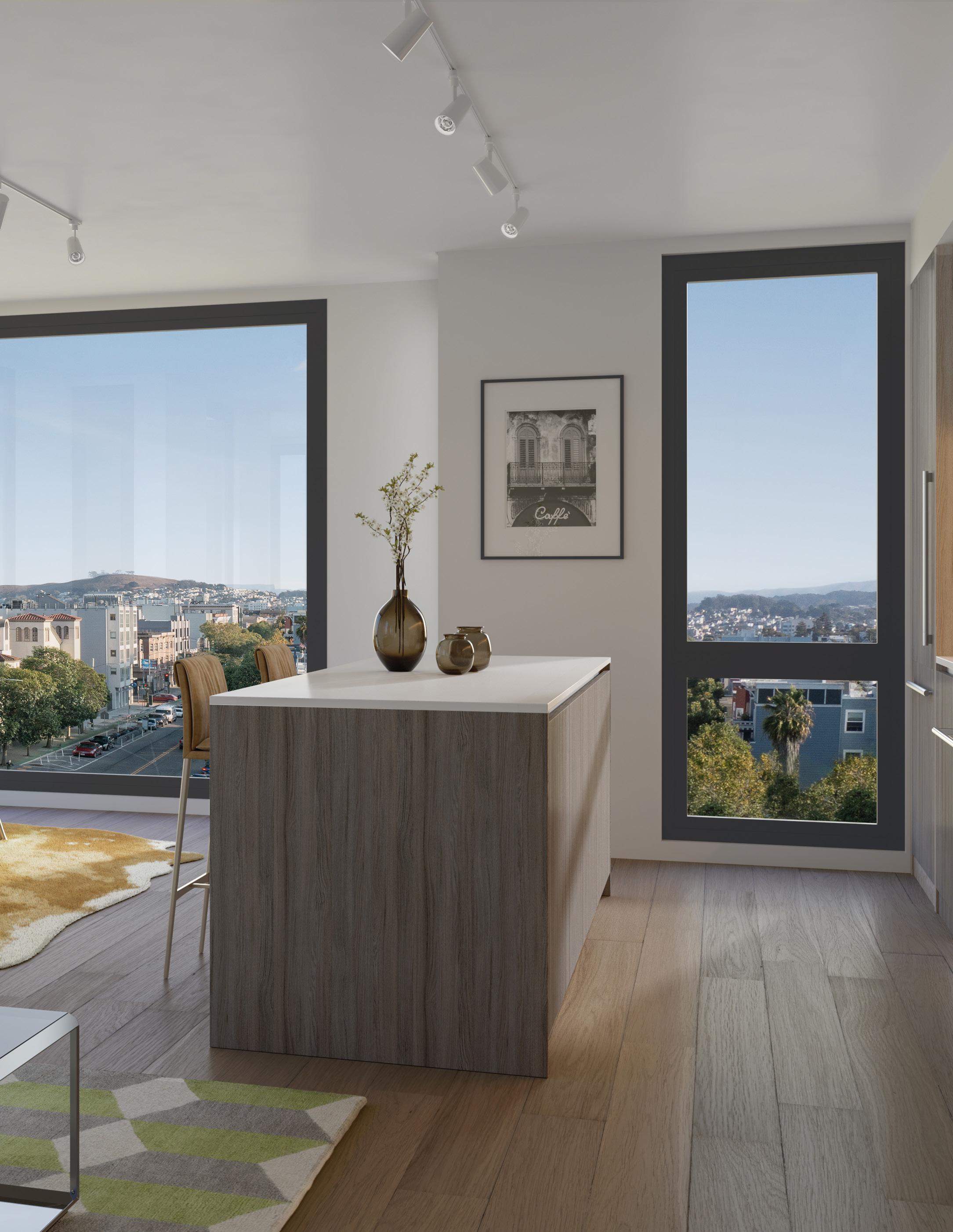 Inside, you’ll find studios, one-, two, and three-bedroom units ranging in size from 450 to 1,280 square feet, delivering open flow with myriad possibilities. Each unit also gains a 360º city-view atop a shared rooftop terrace complete with gourmet outdoor kitchen.