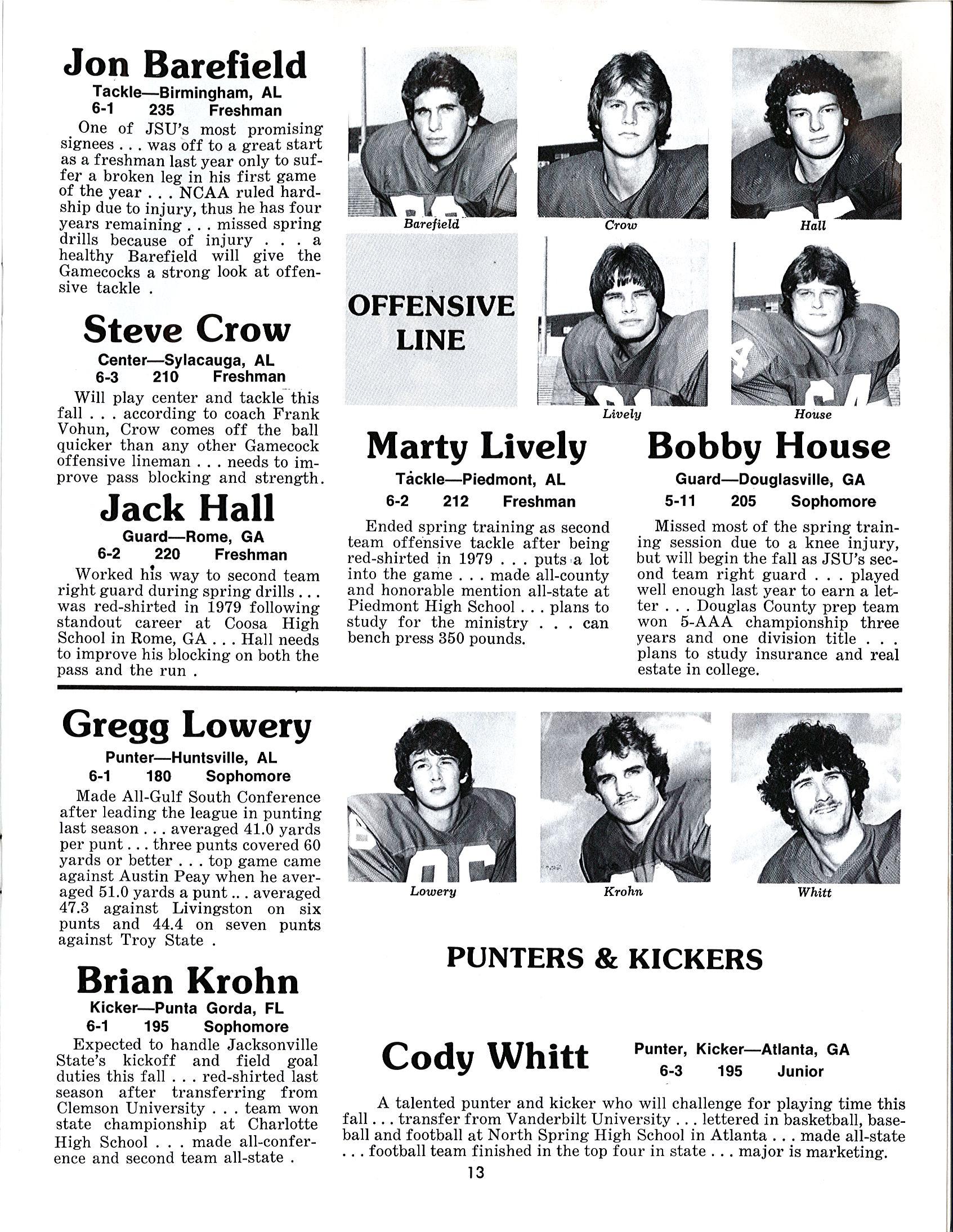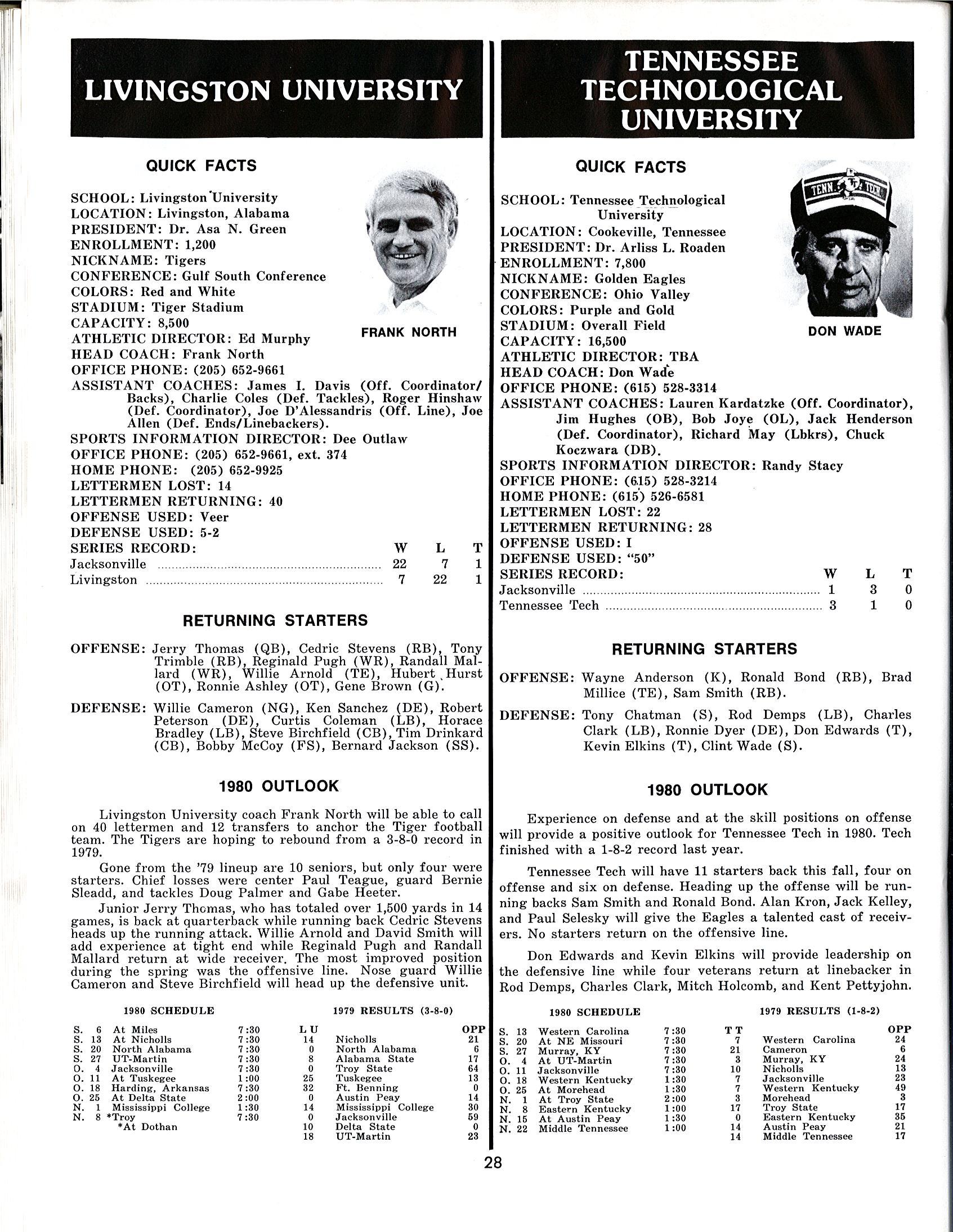 1980 JSU Football Media Guide by Jacksonville State Athletics - Issuu