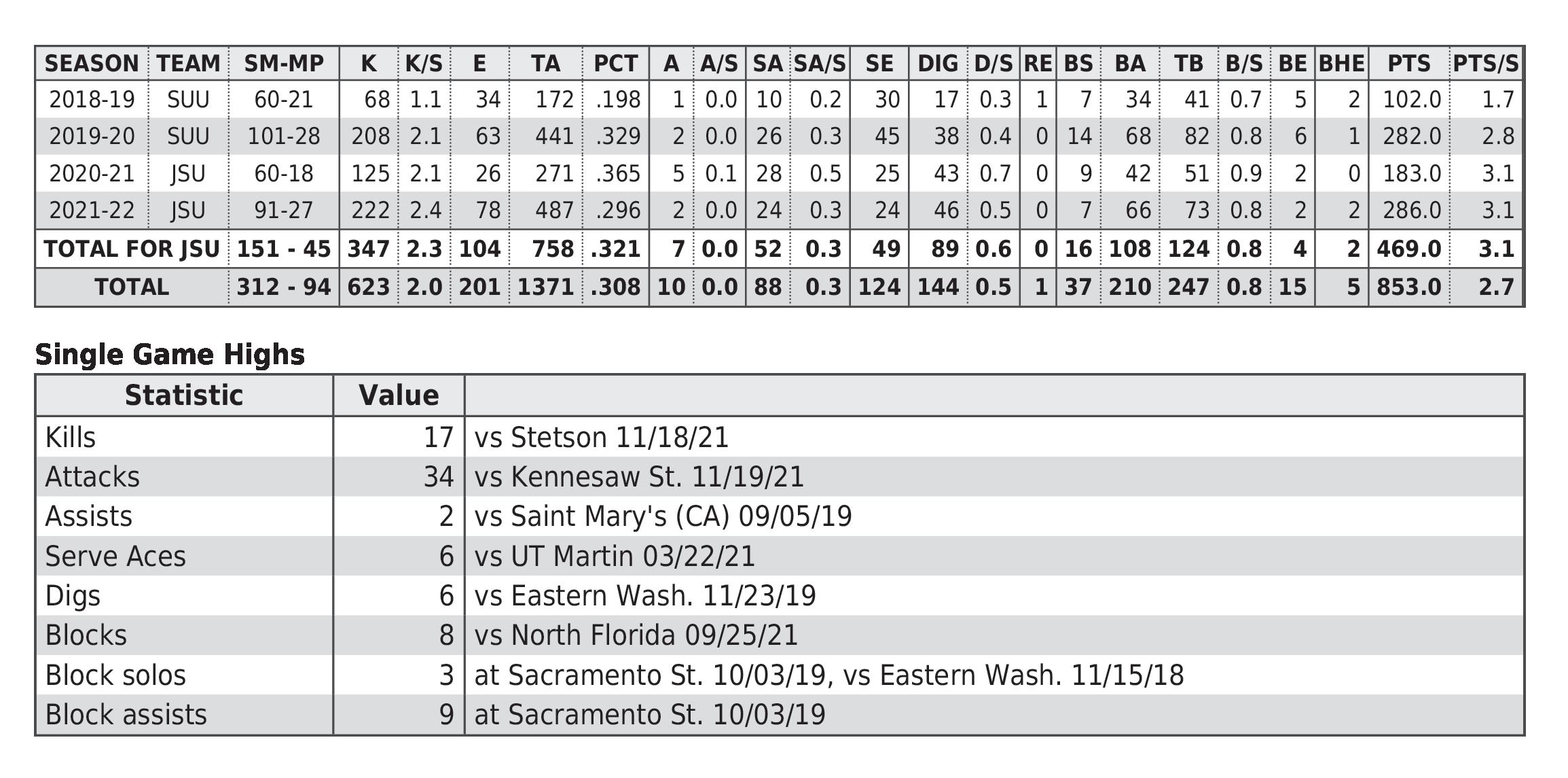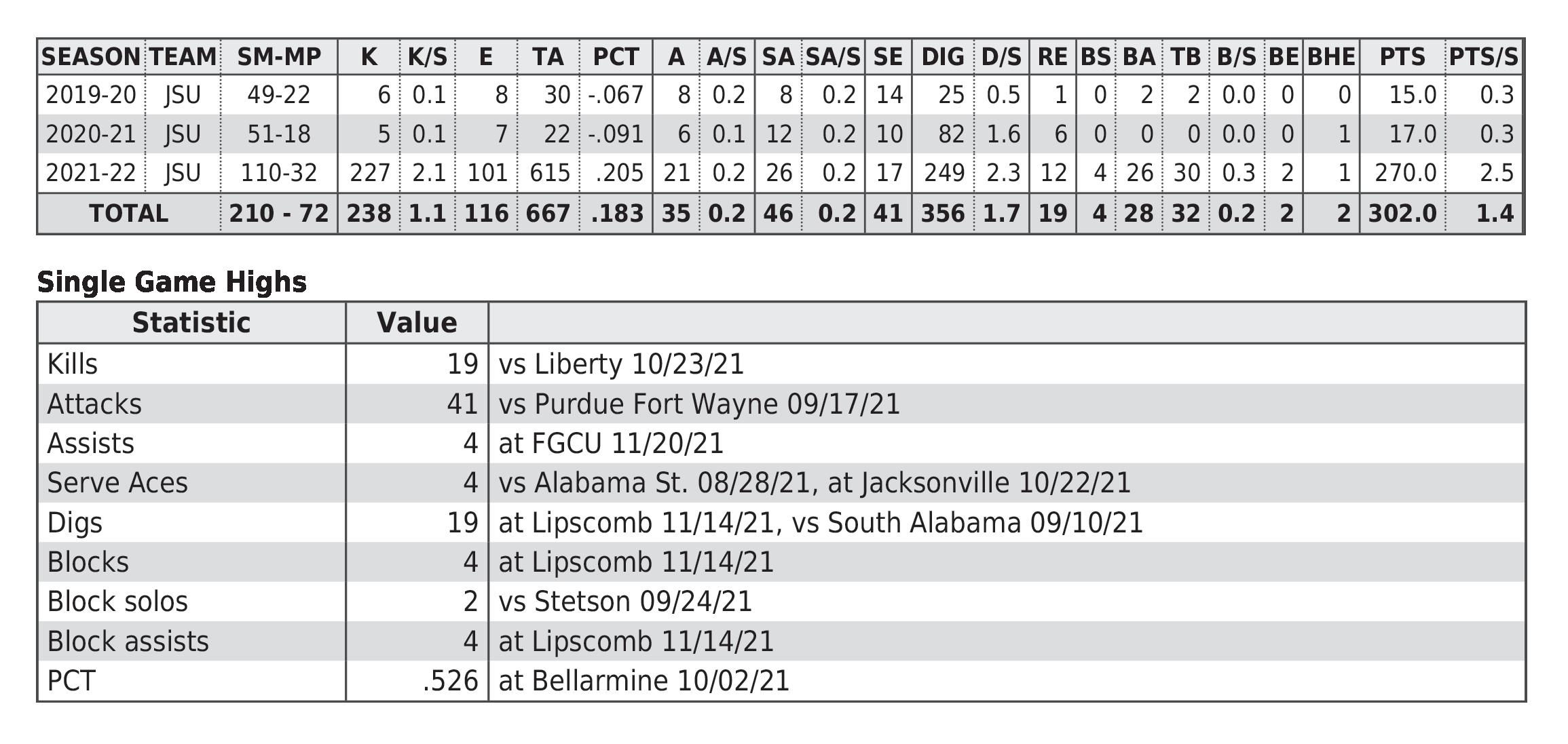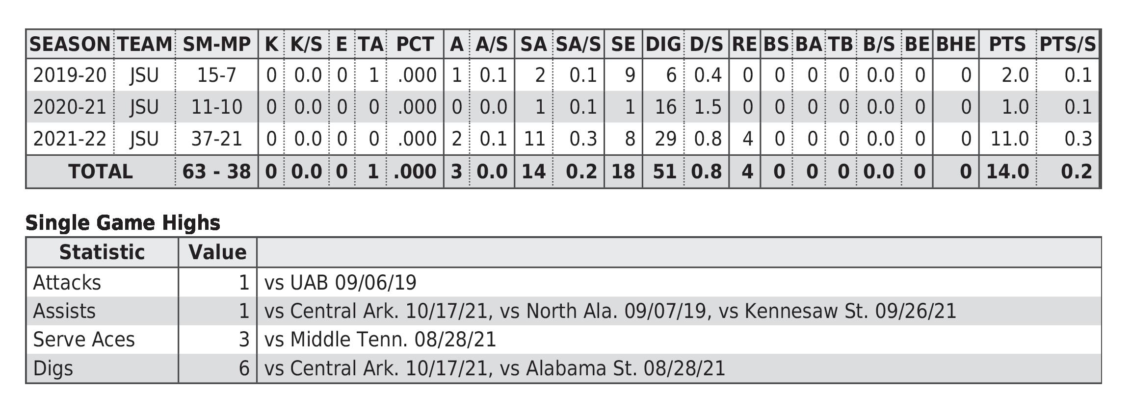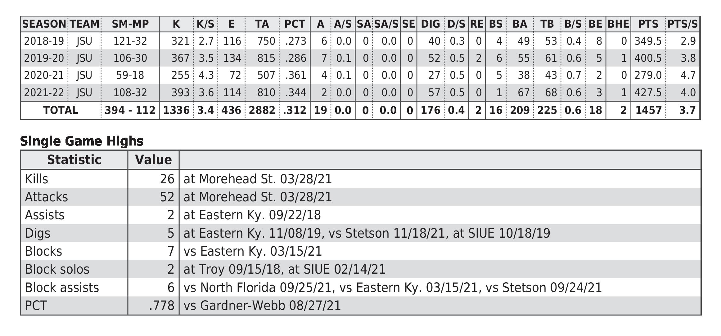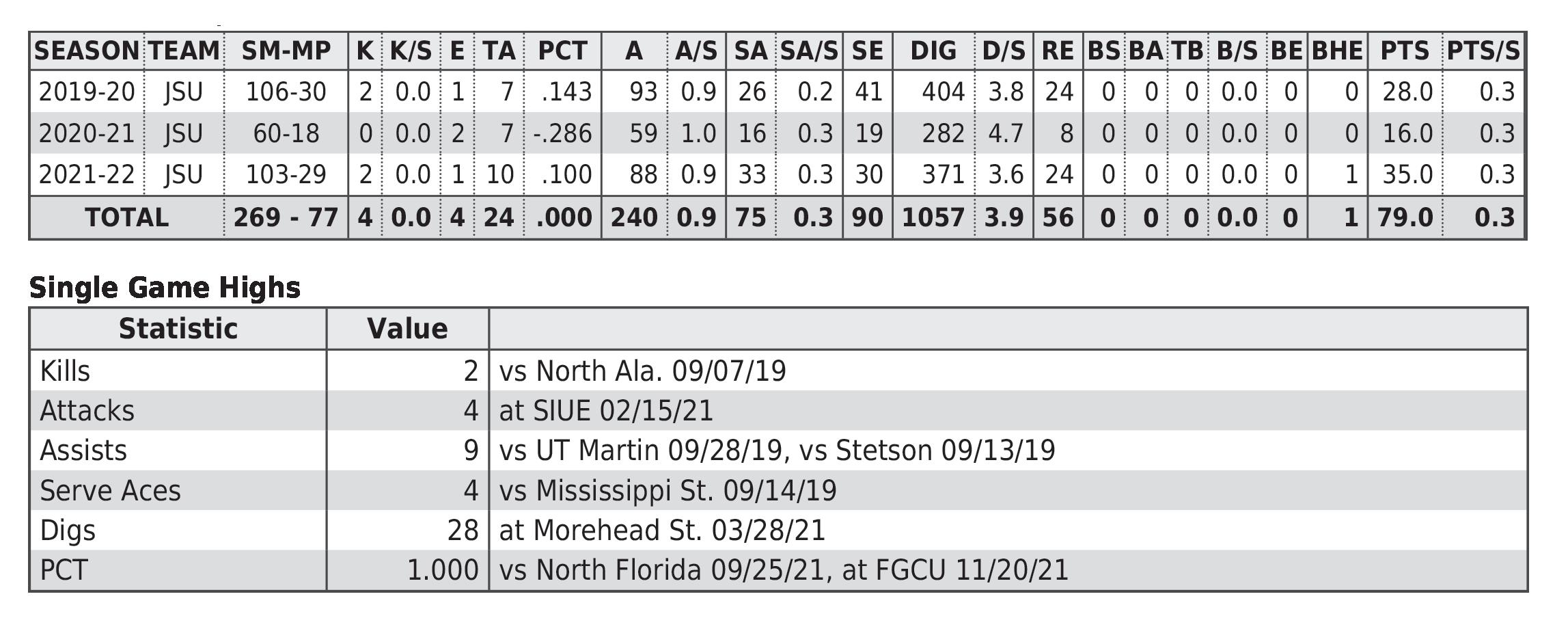 JSU All-Time Career Records 61