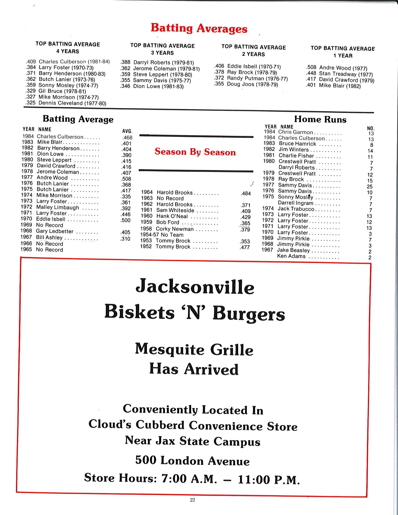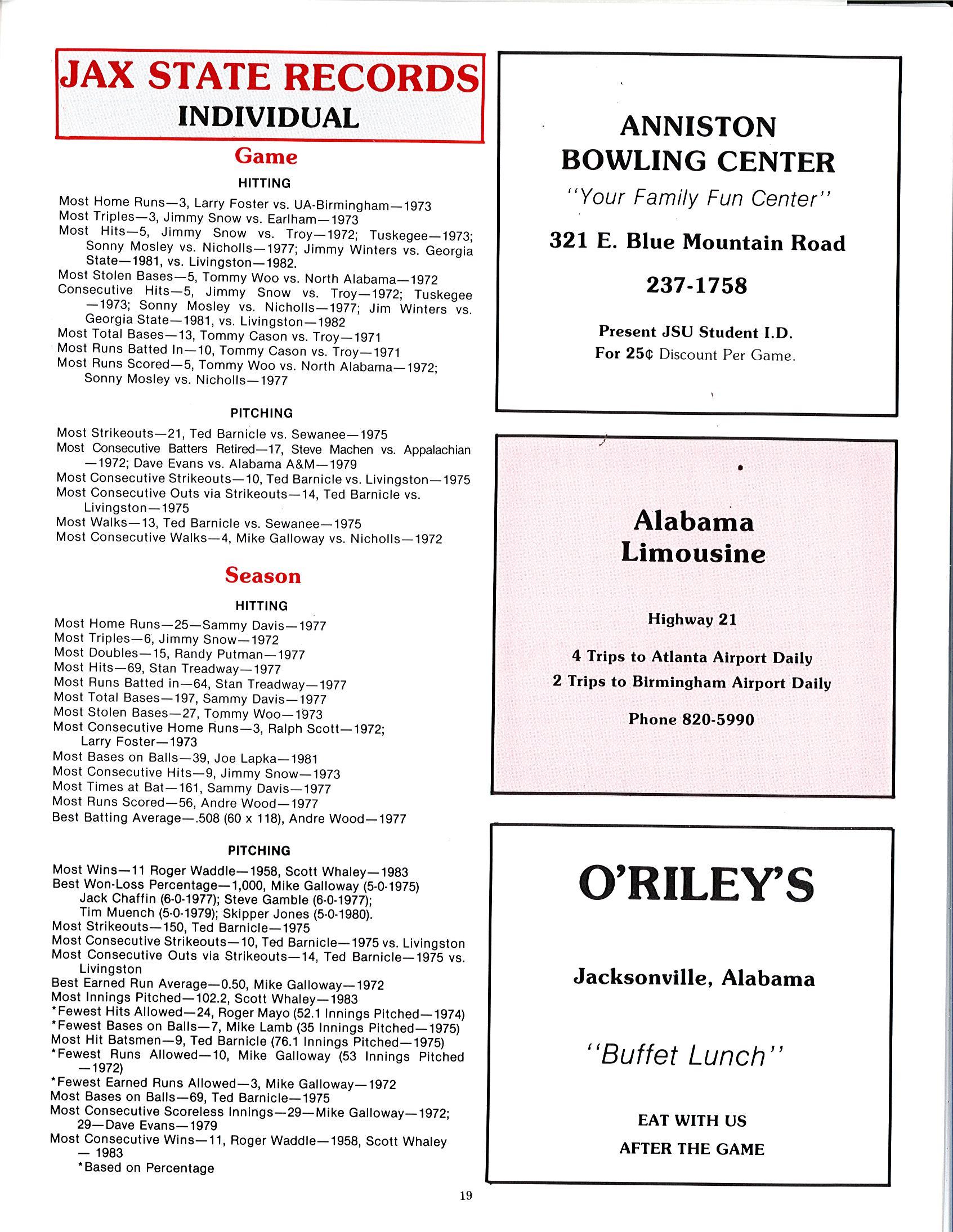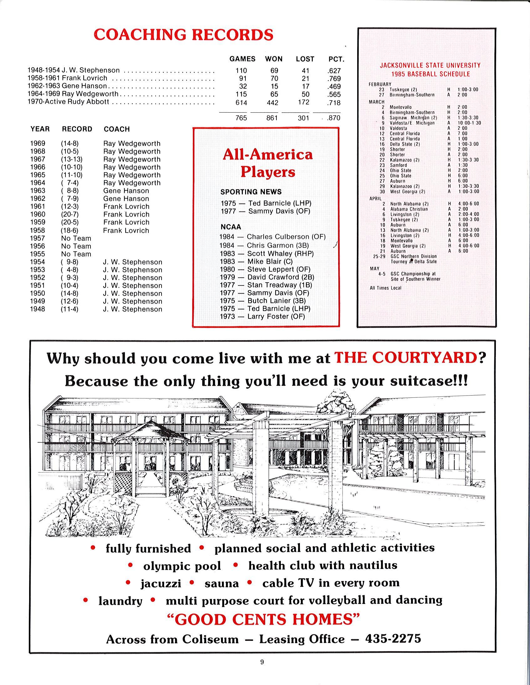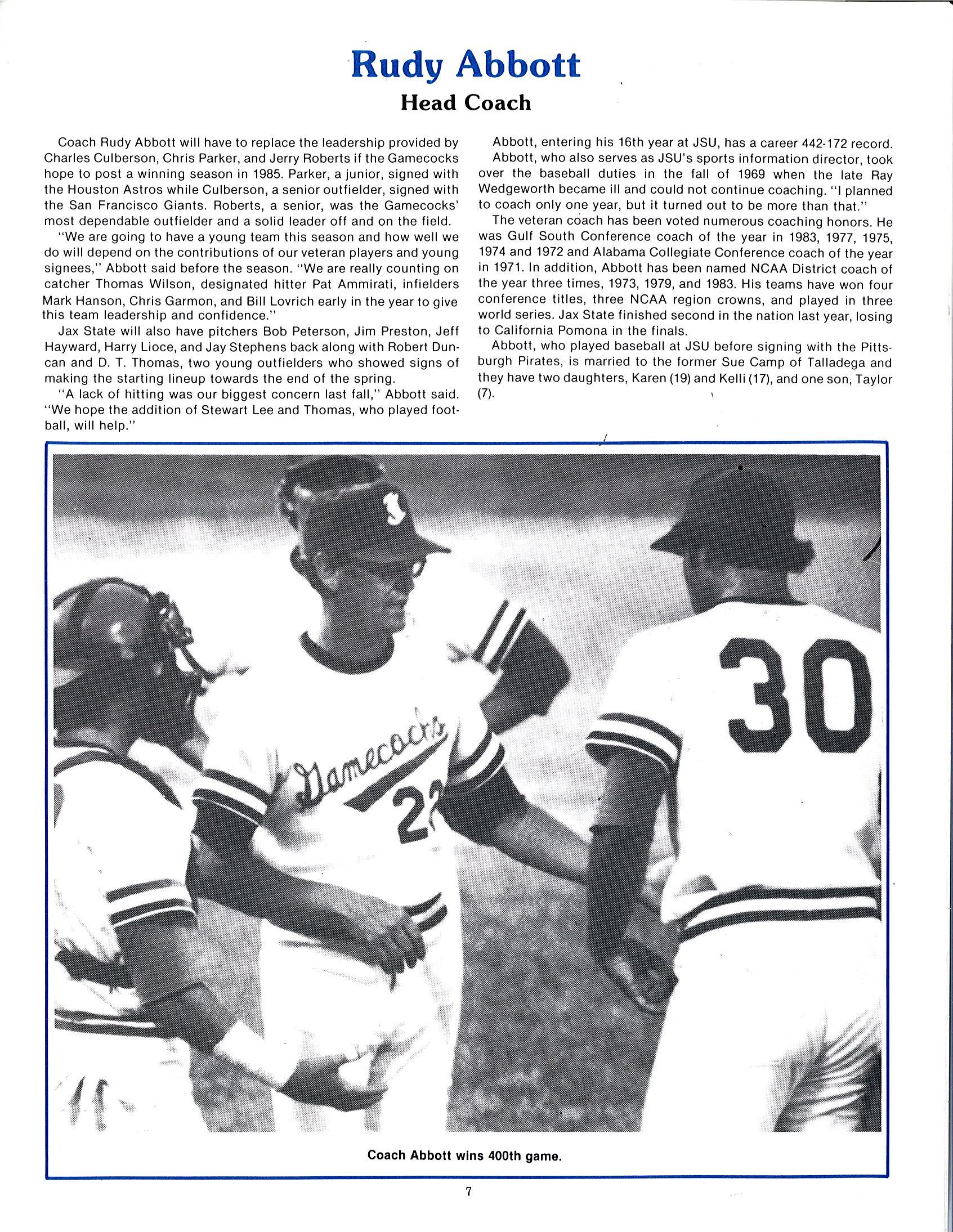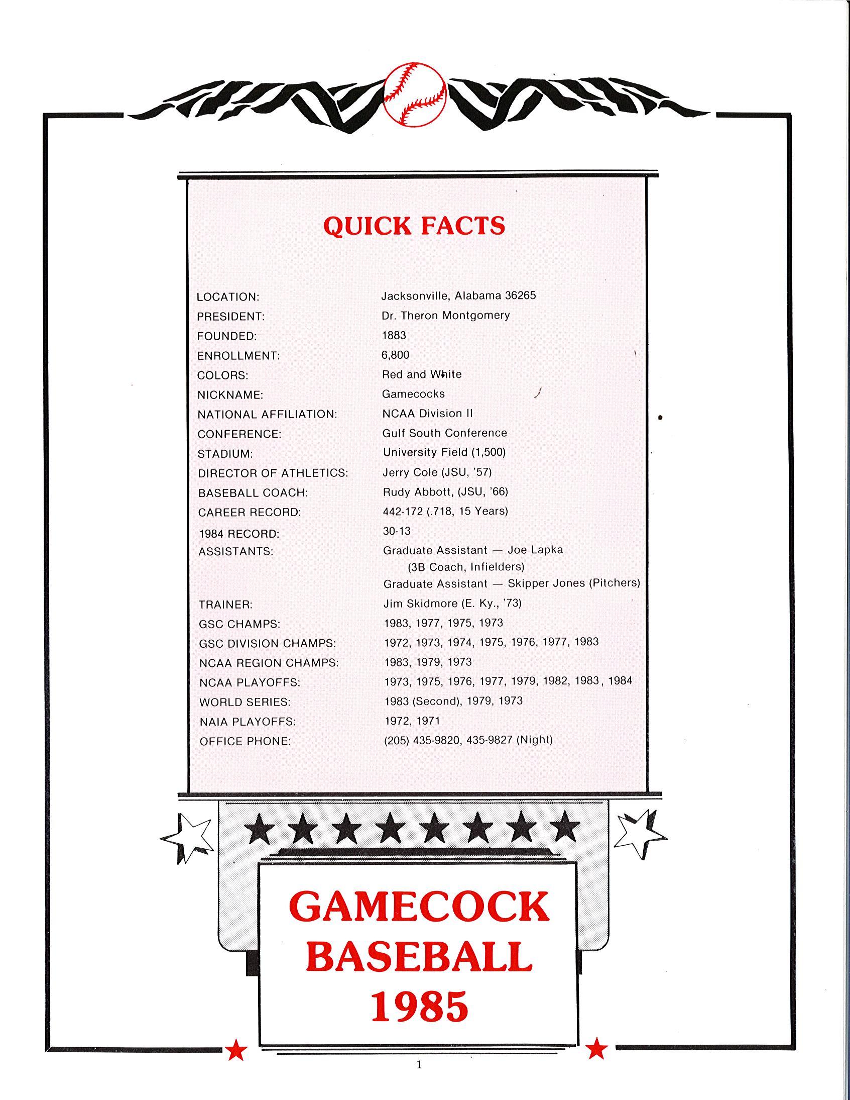 1985 Jacksonville State Baseball Media Guide by Jacksonville State Athletics - Issuu