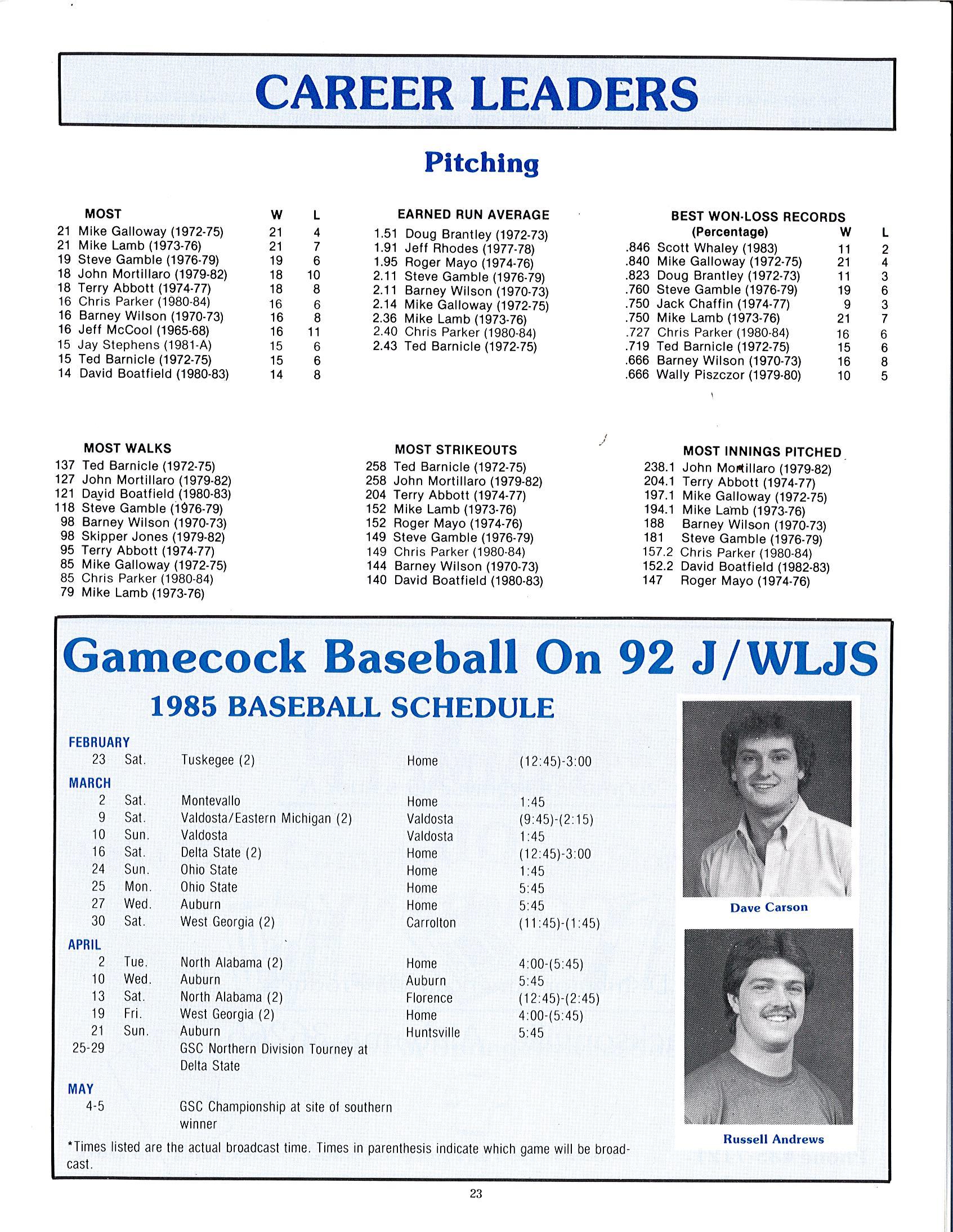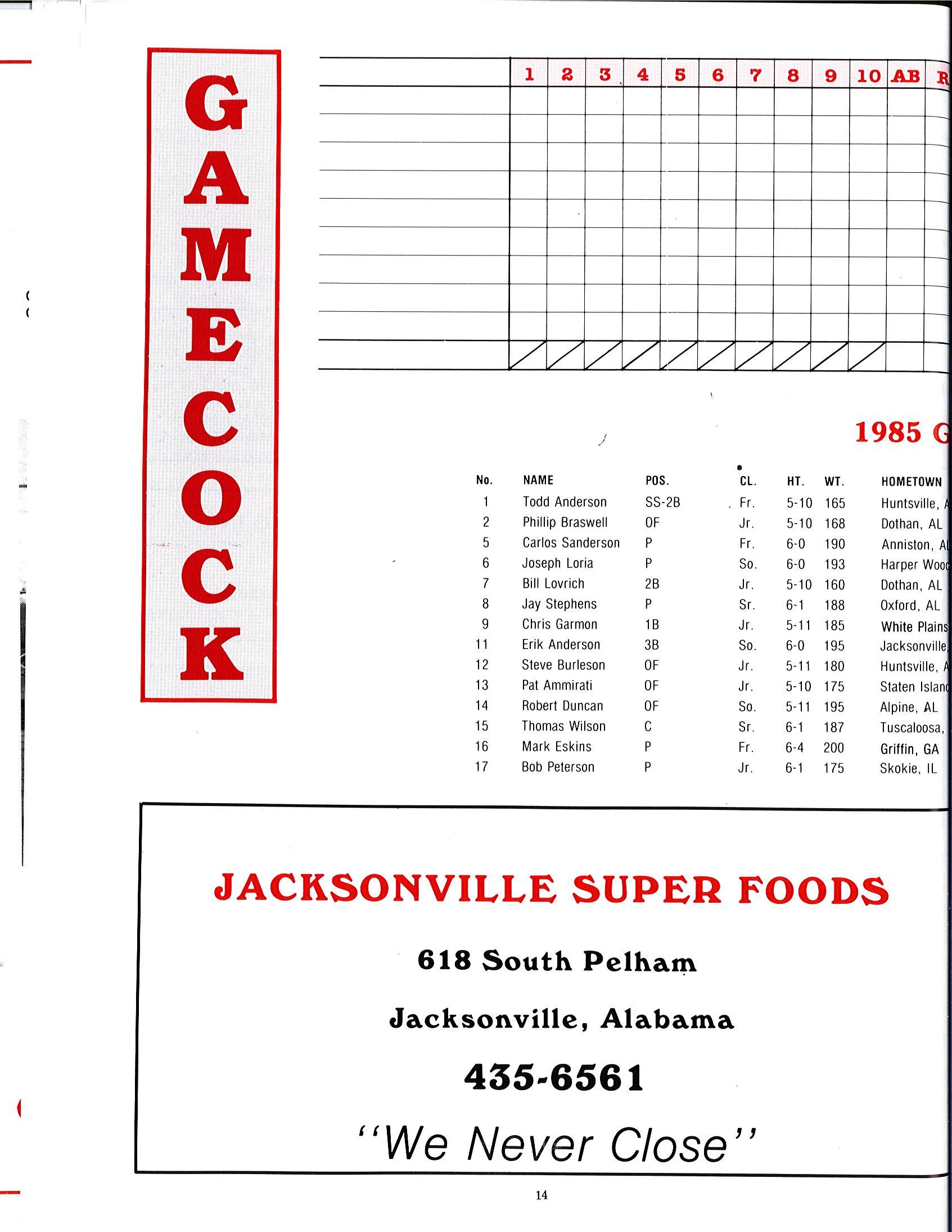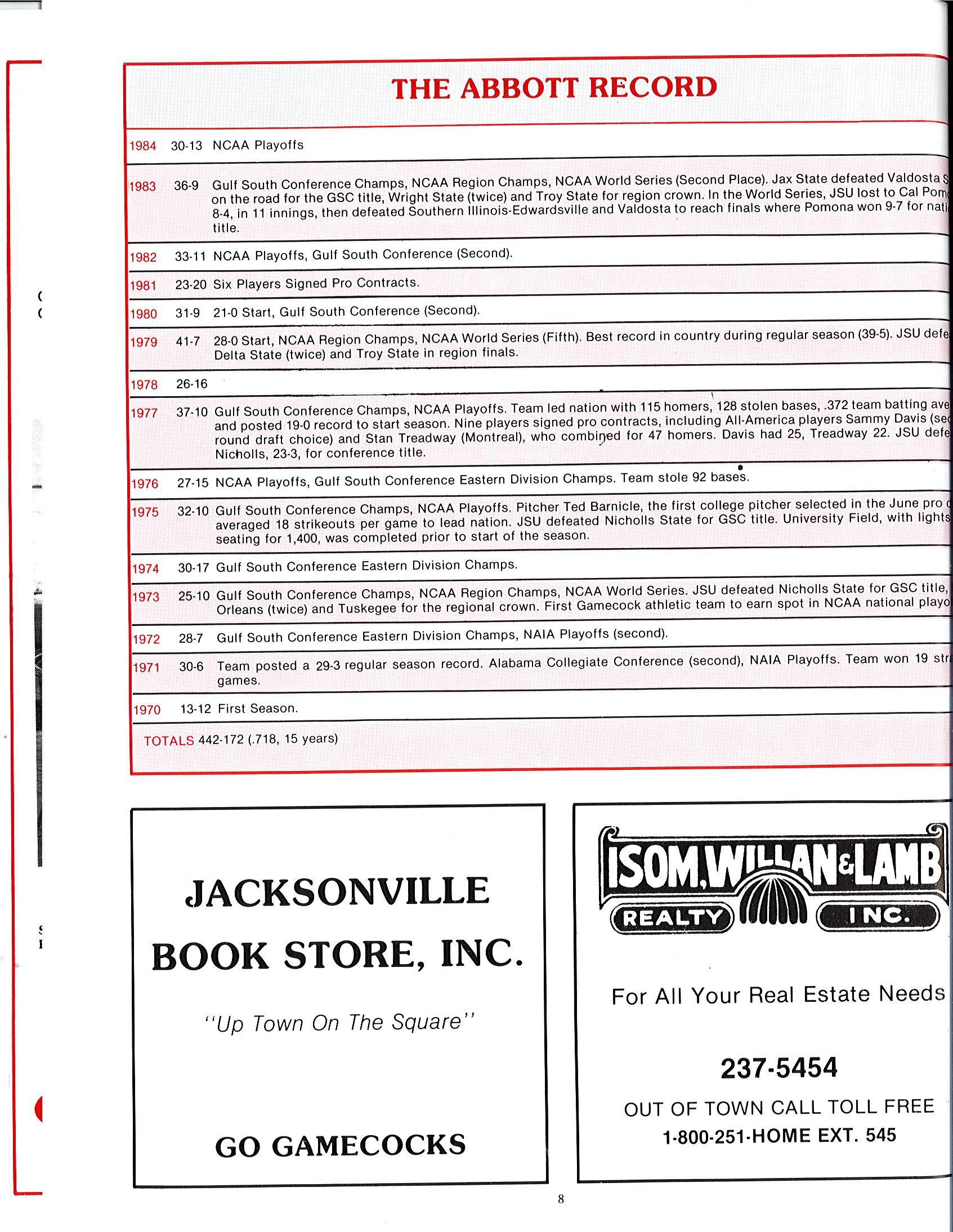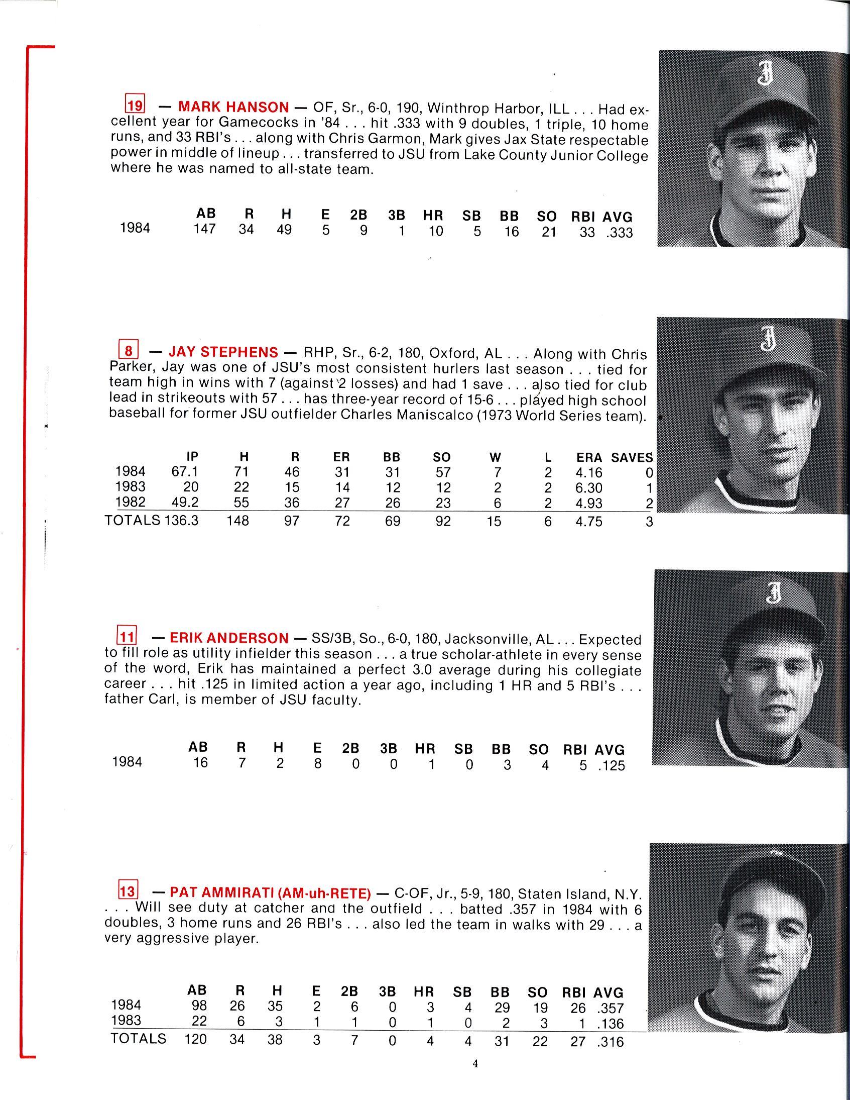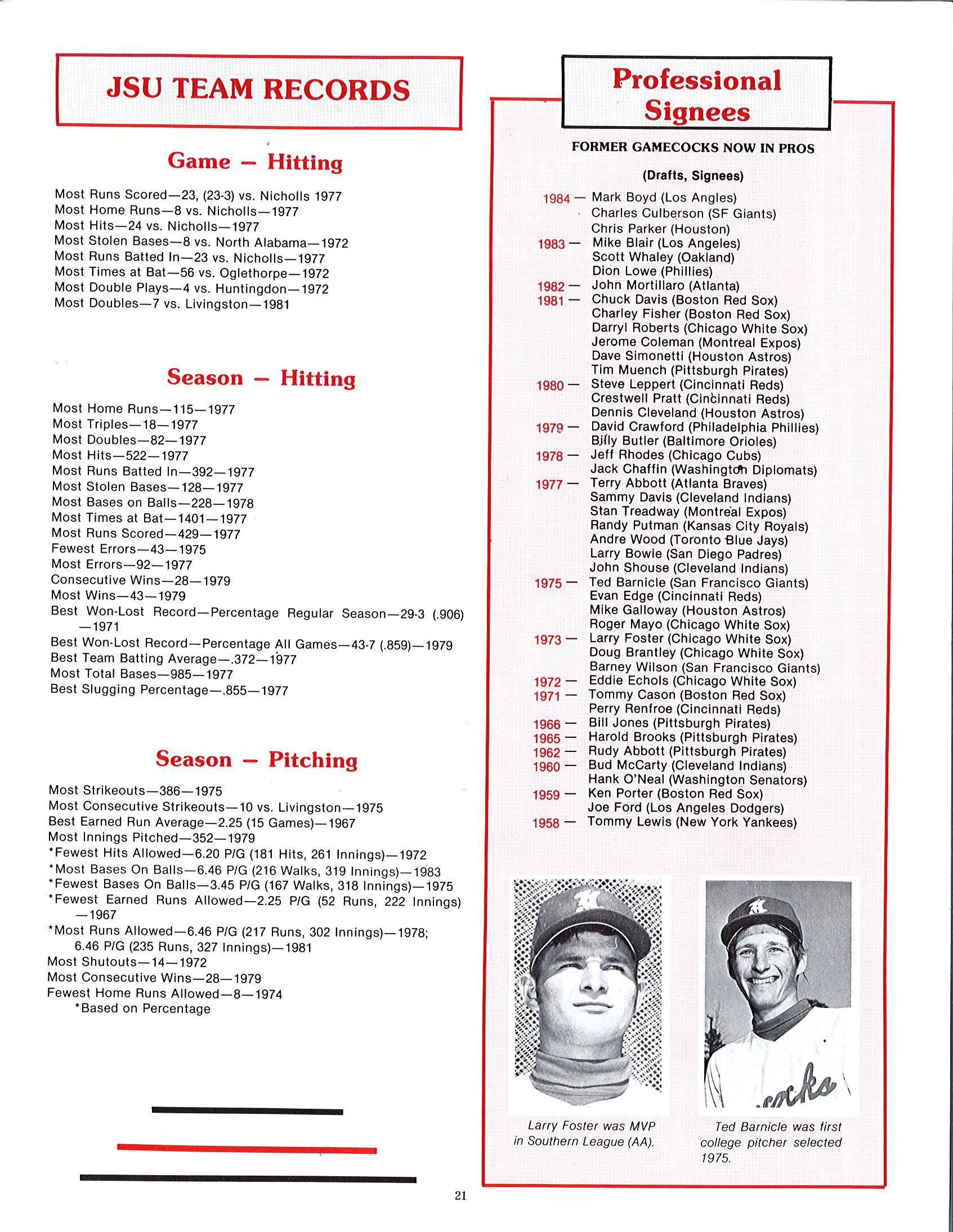 1985 Jacksonville State Baseball Media Guide by Jacksonville State Athletics - Issuu