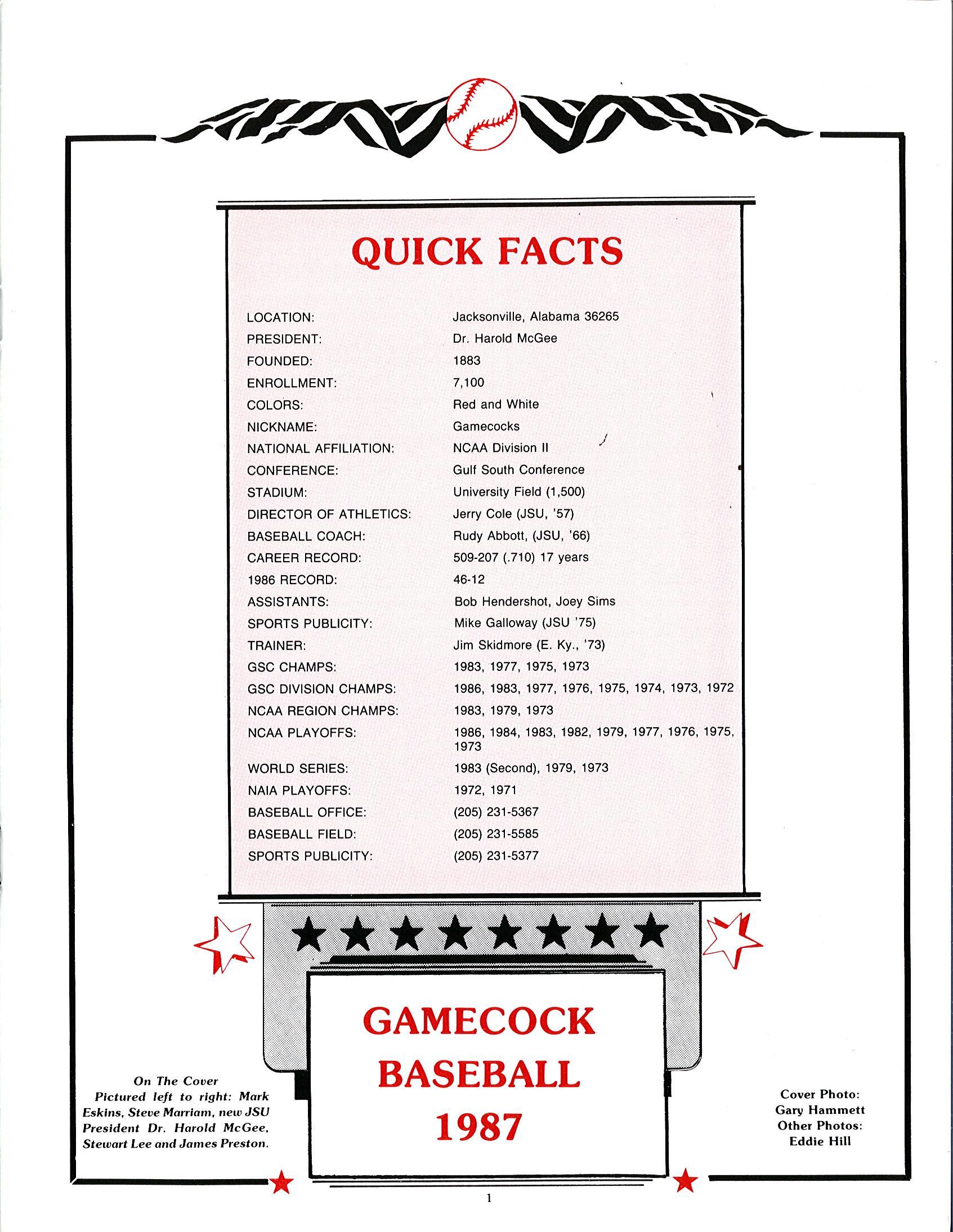1987 JSU Baseball Media Guide by Jacksonville State Athletics - Issuu