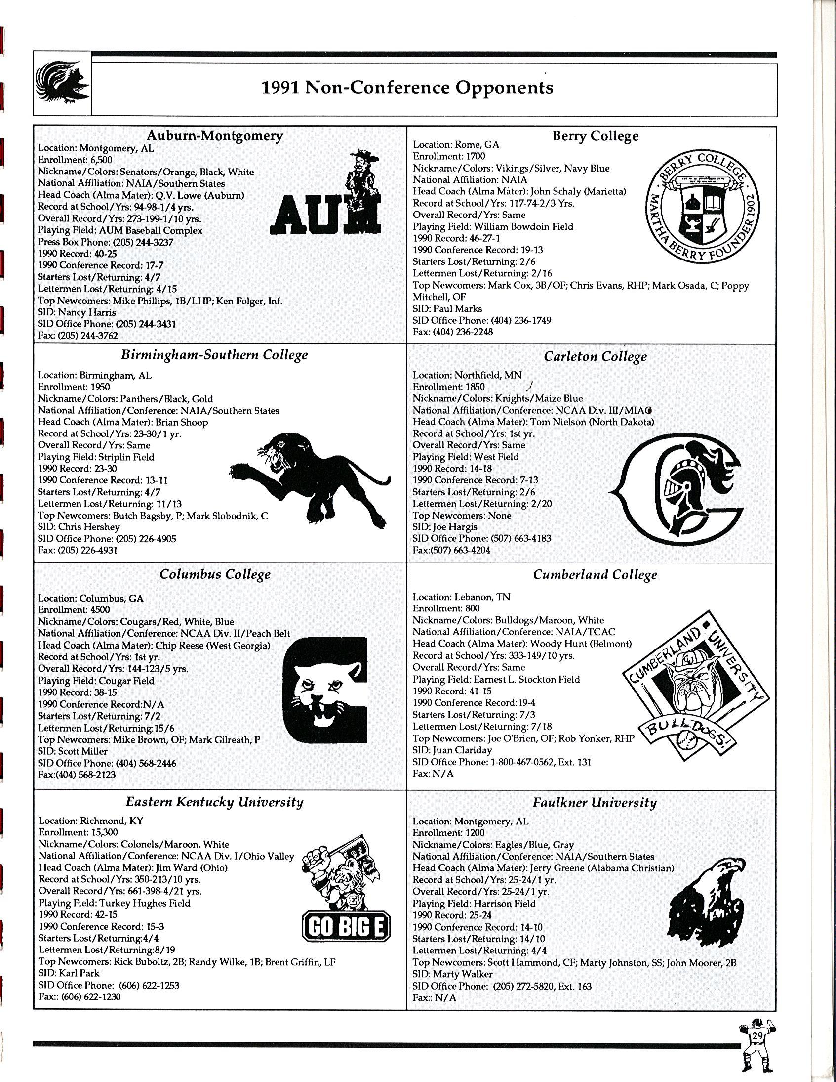 1991 JSU Baseball Media Guide