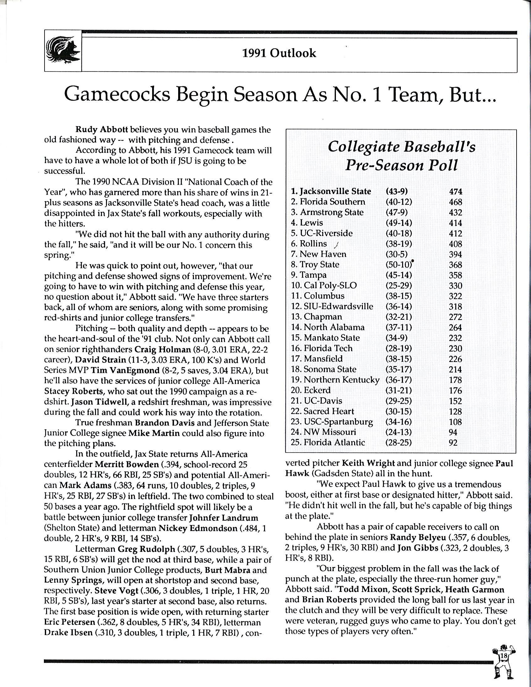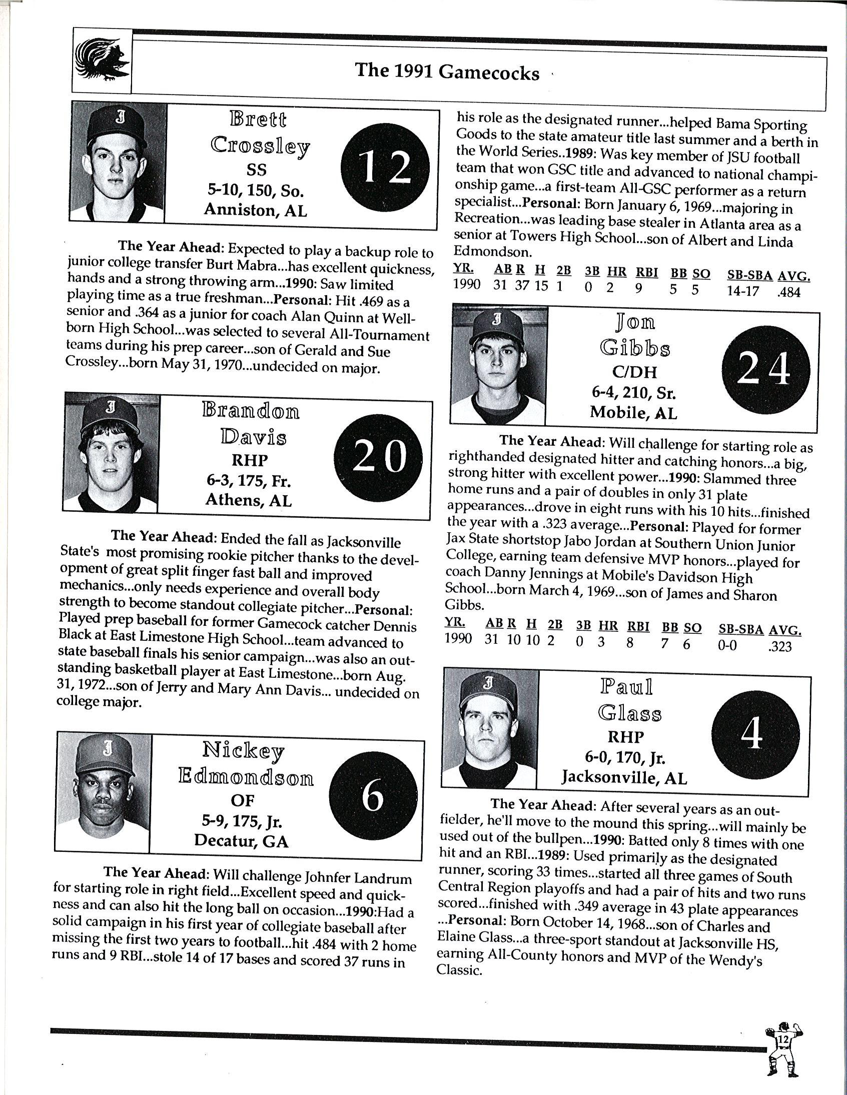 1991 JSU Baseball Media Guide by Jacksonville State Athletics - Issuu