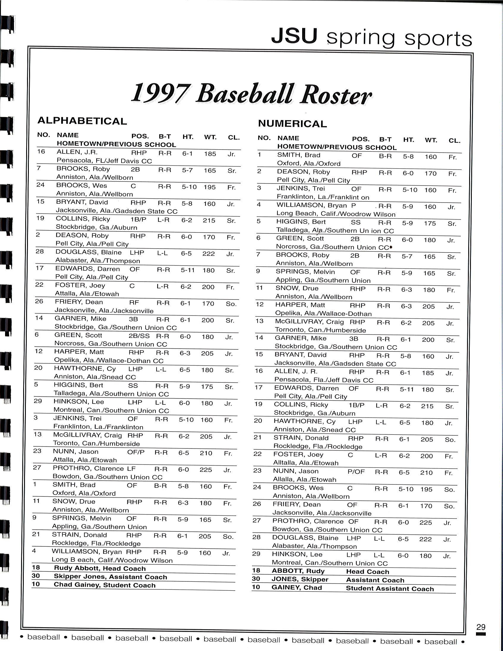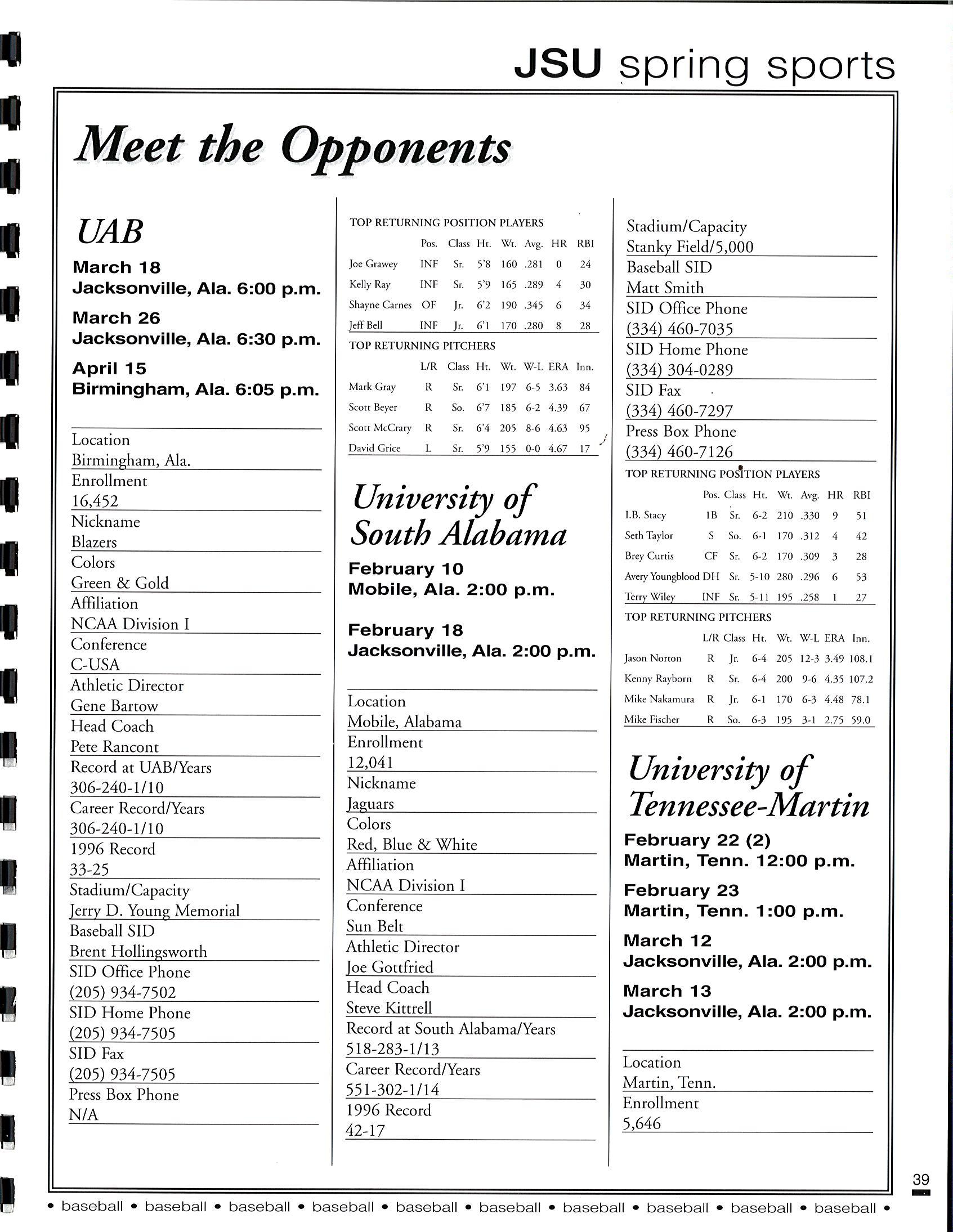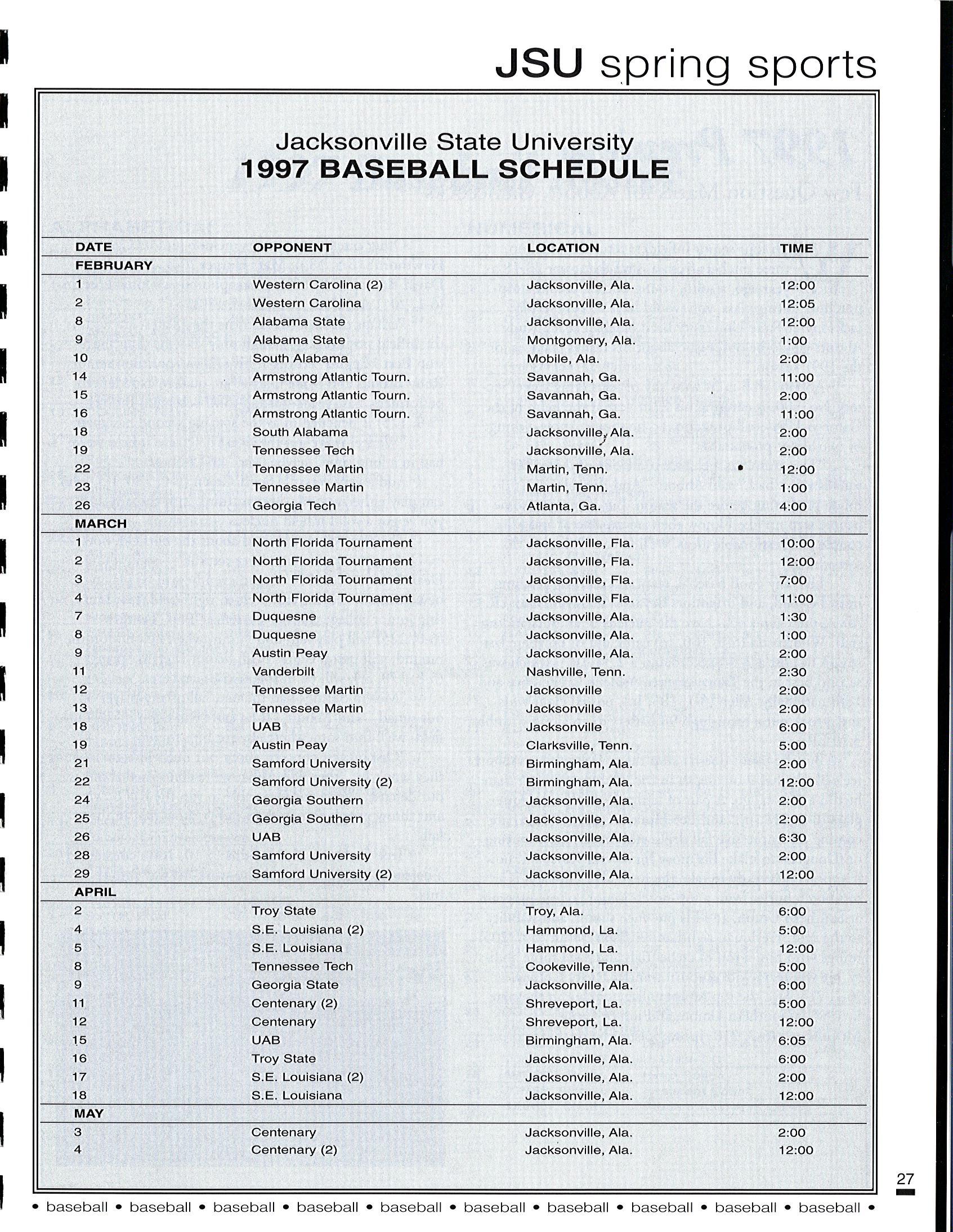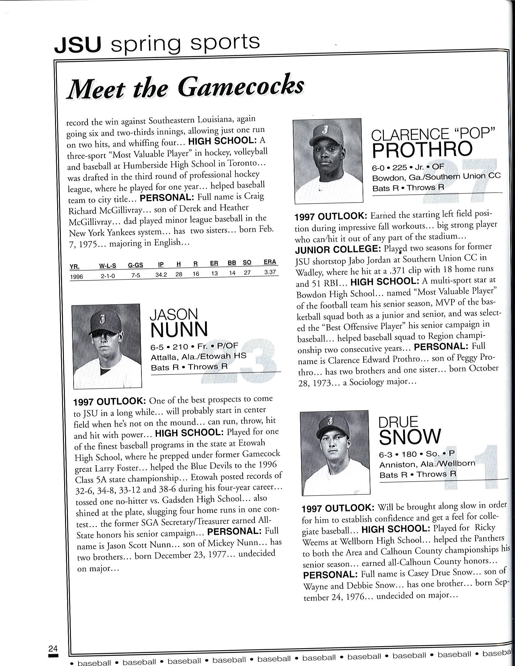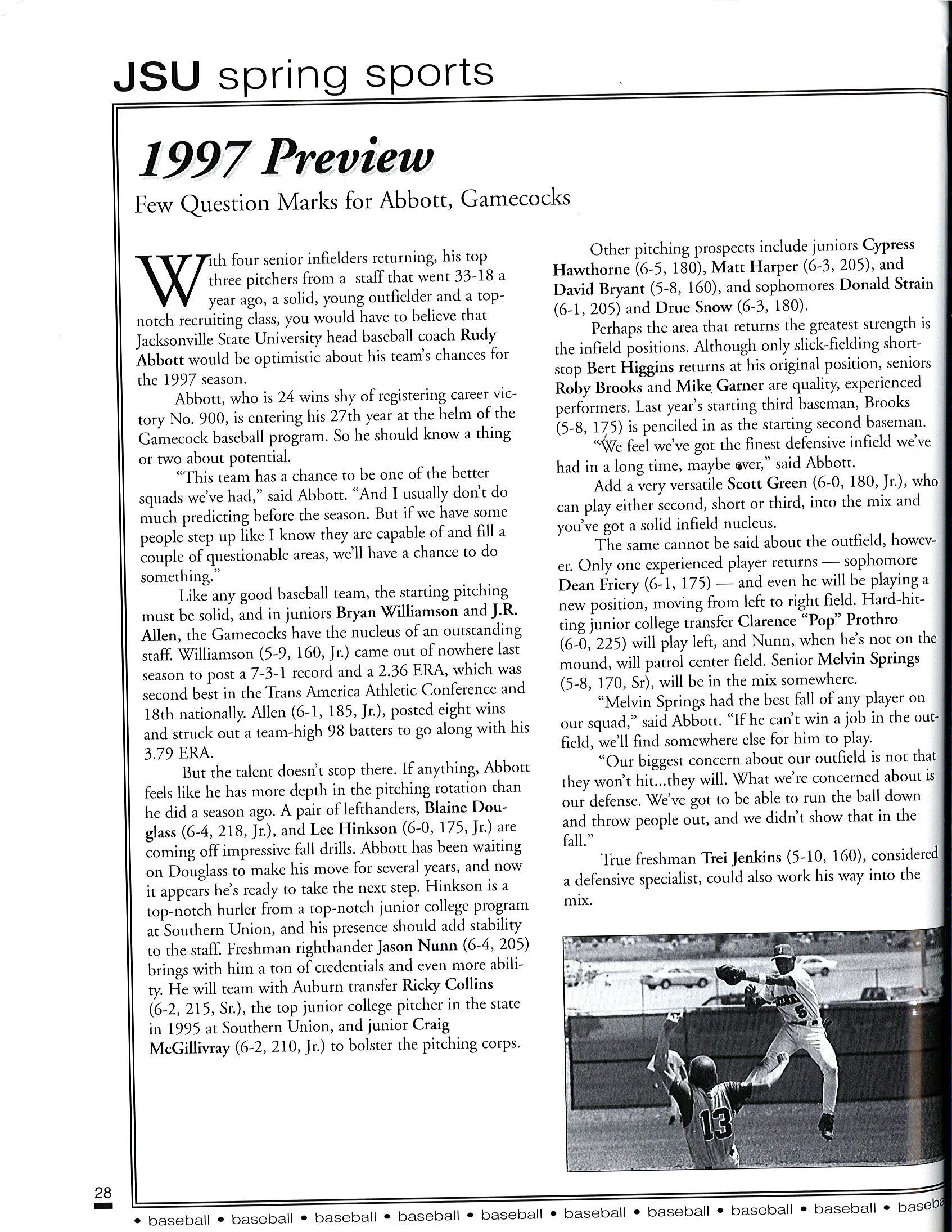 1997 JSU Baseball Media Guide by Jacksonville State Athletics - Issuu
