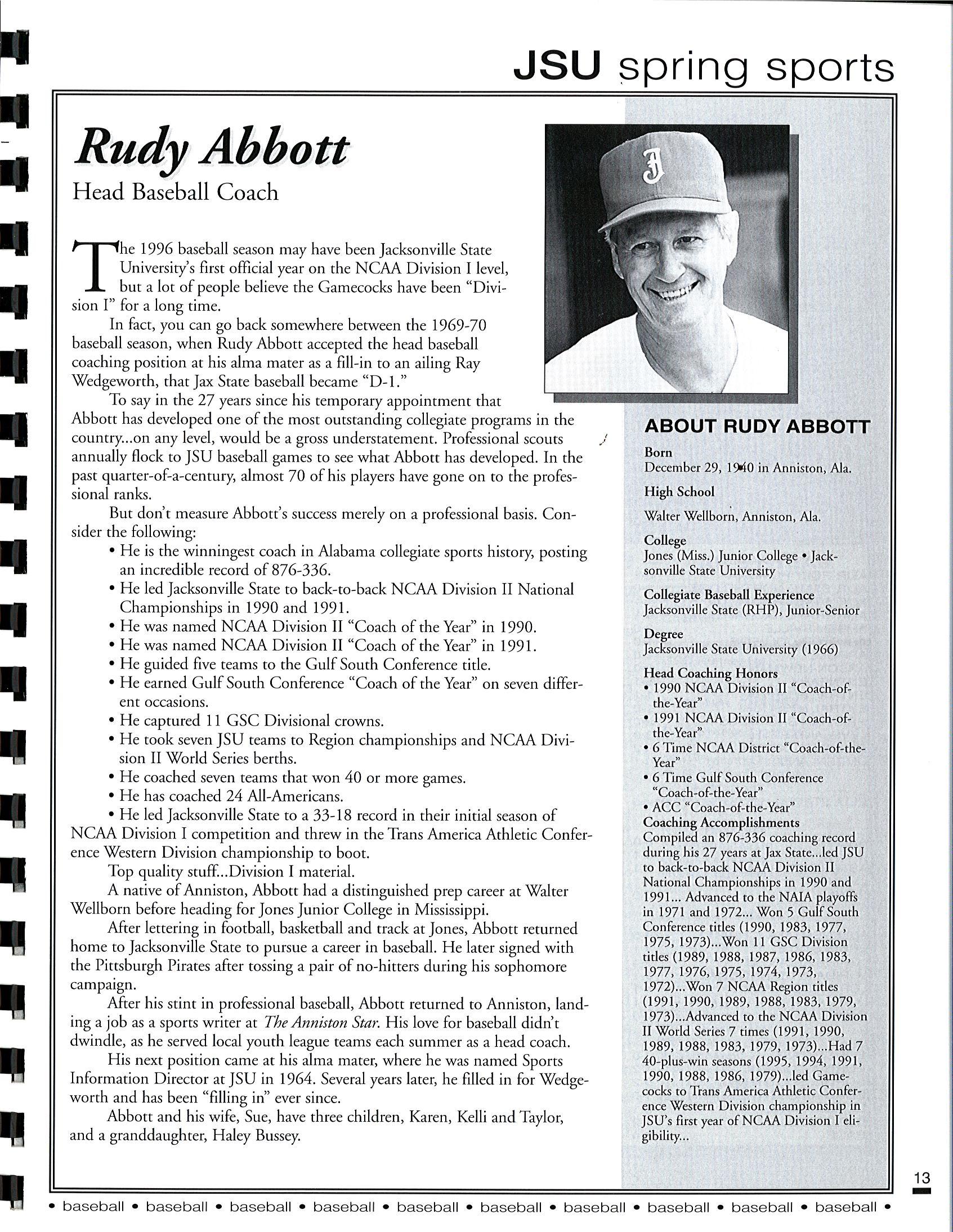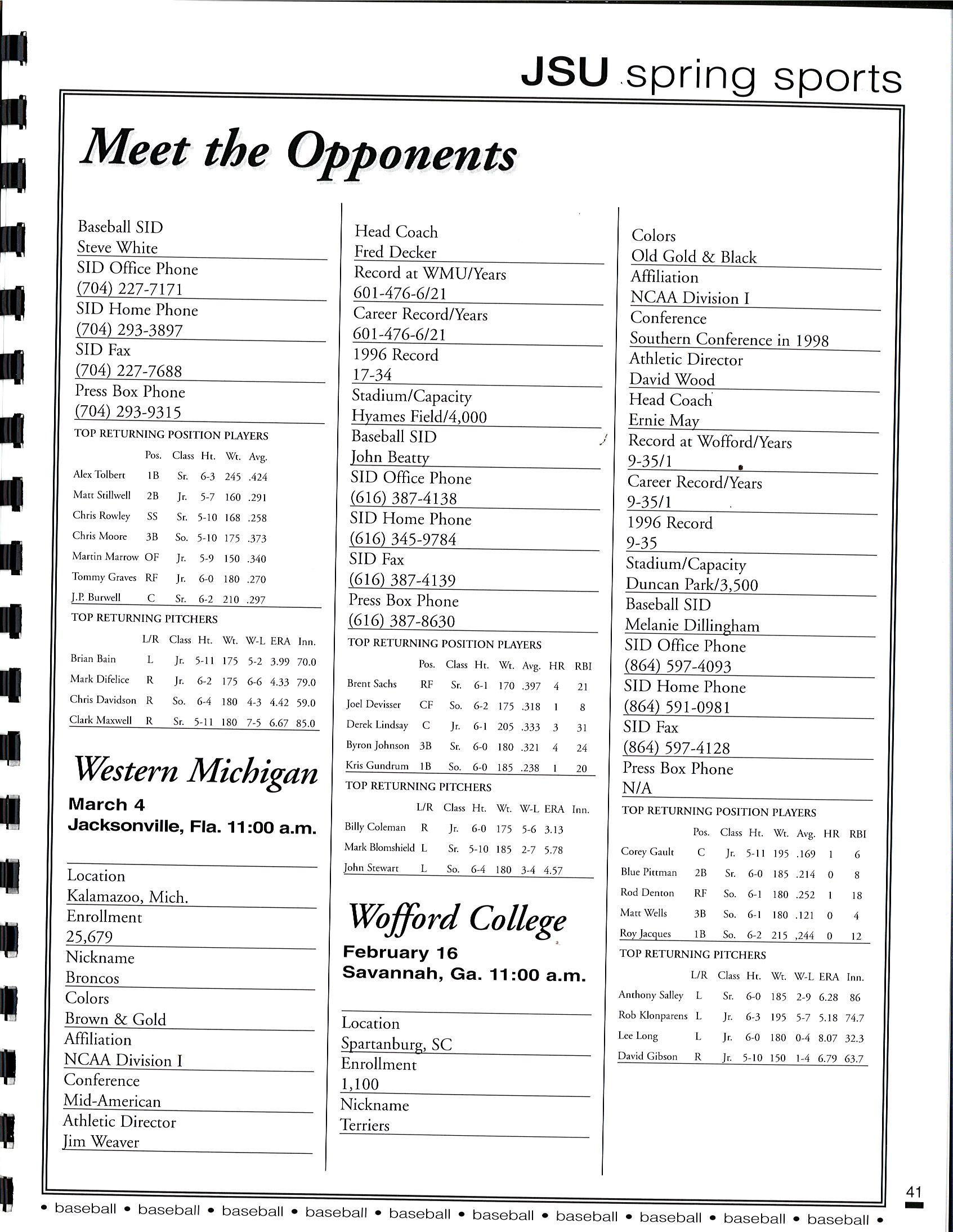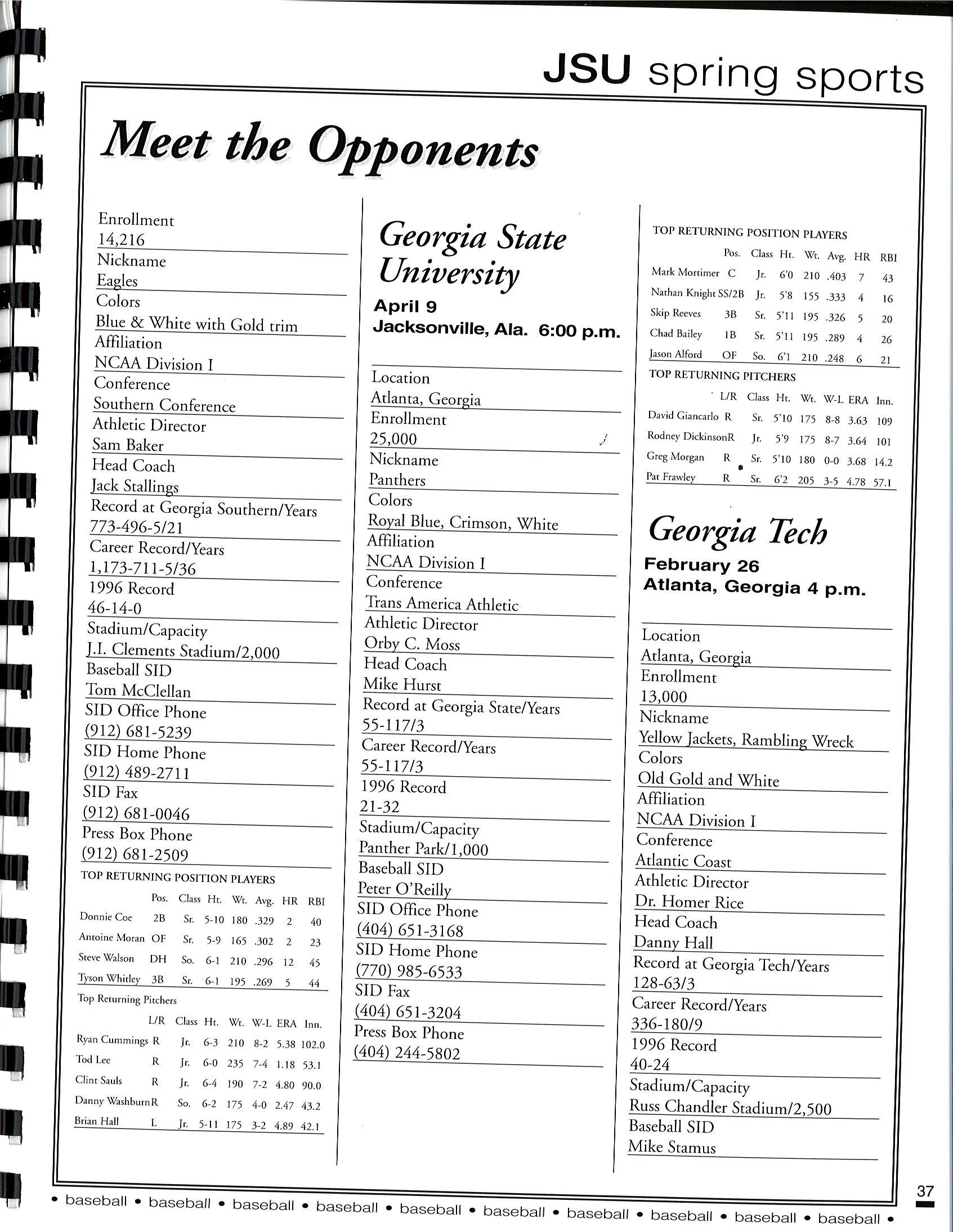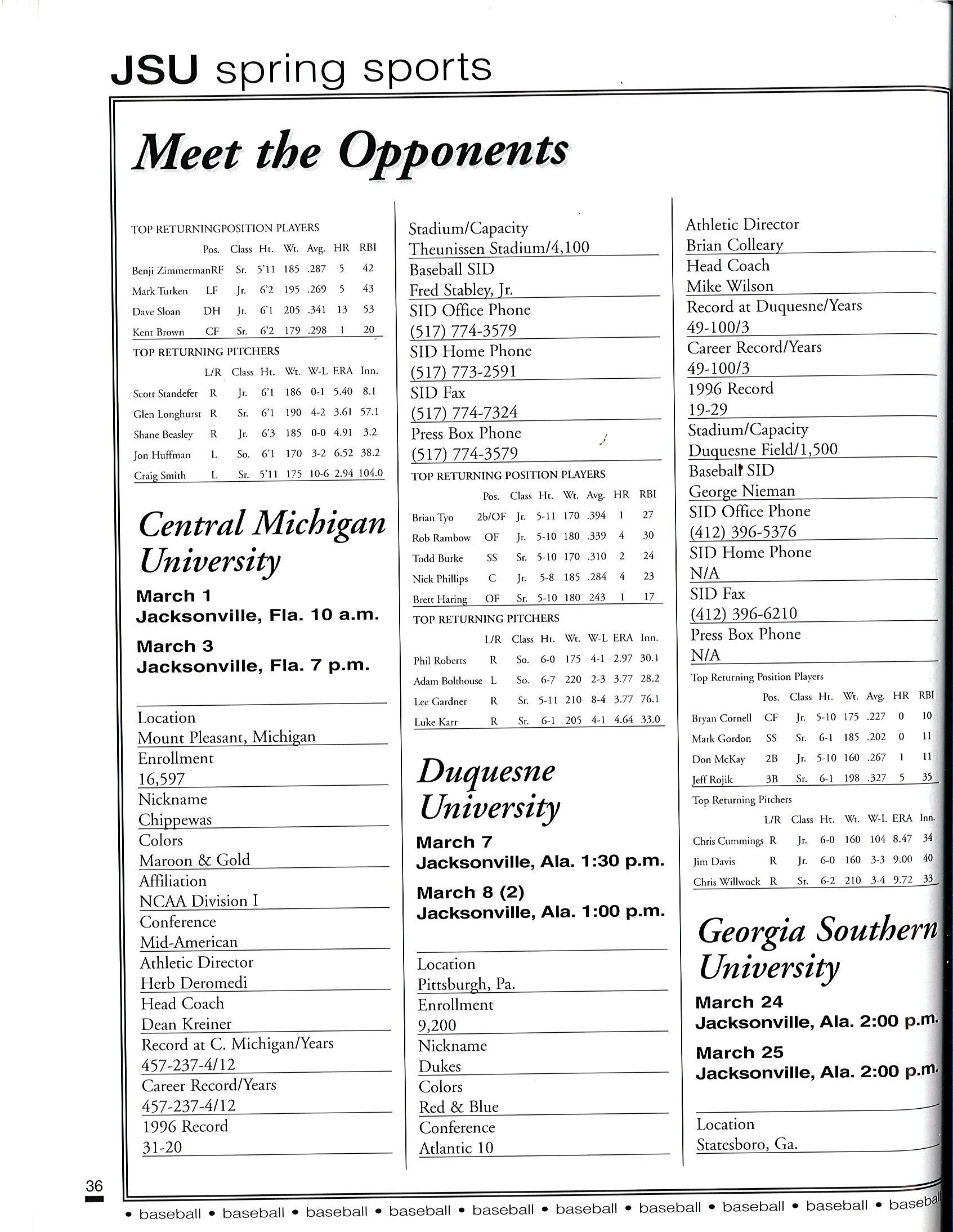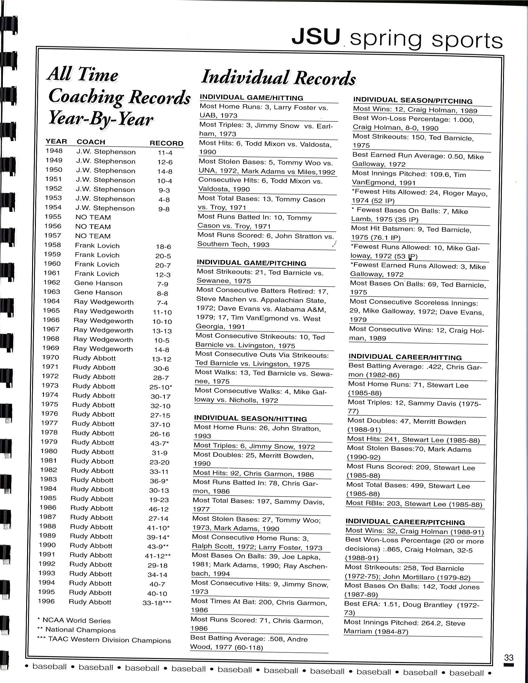 1997 JSU Baseball Media Guide by Jacksonville State Athletics - Issuu