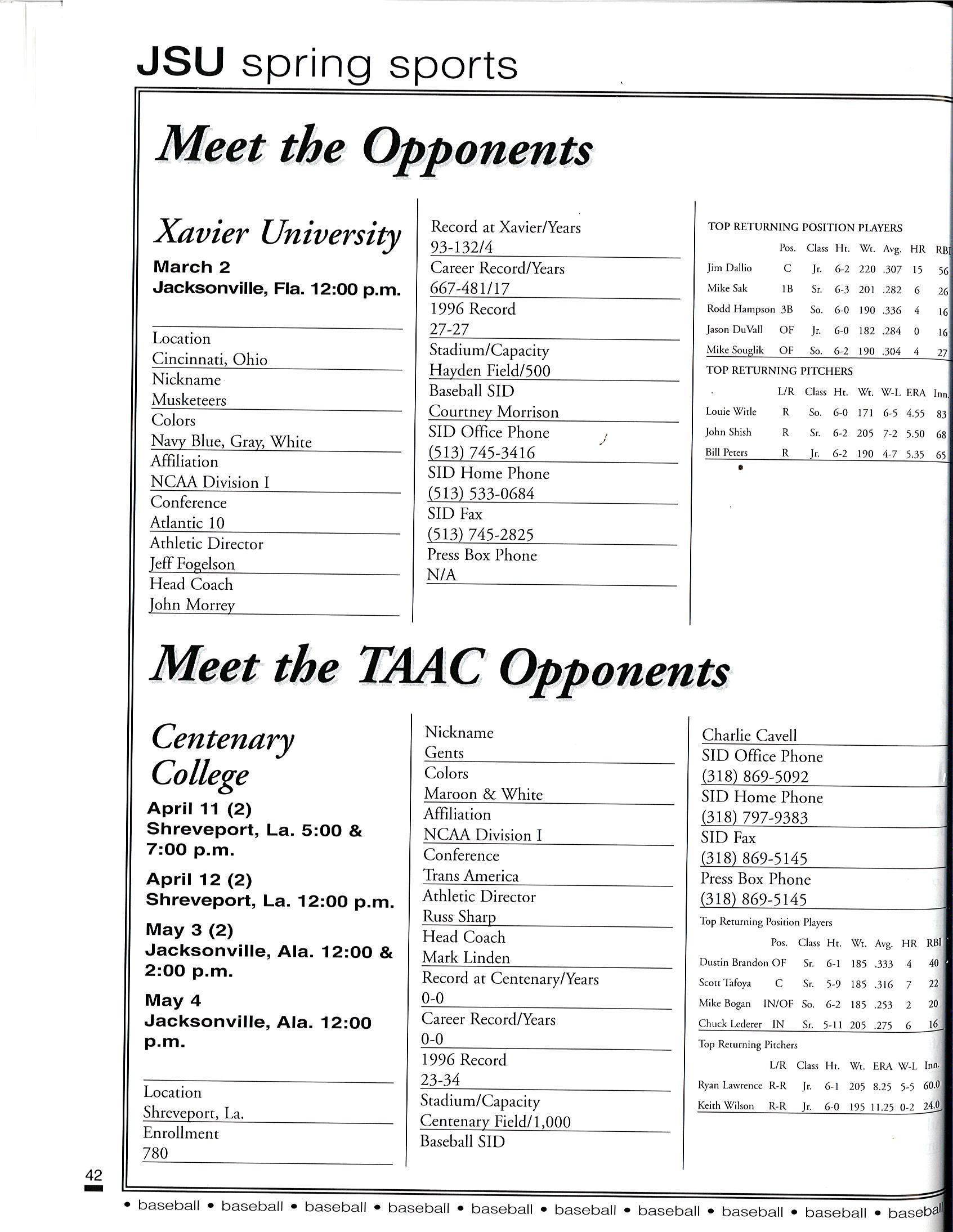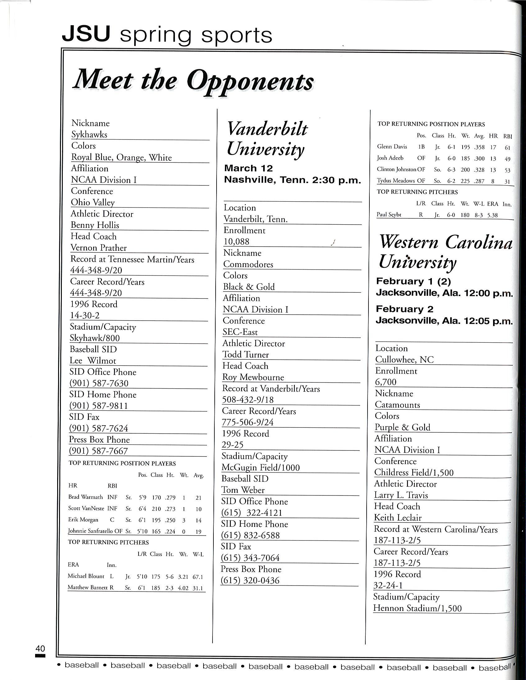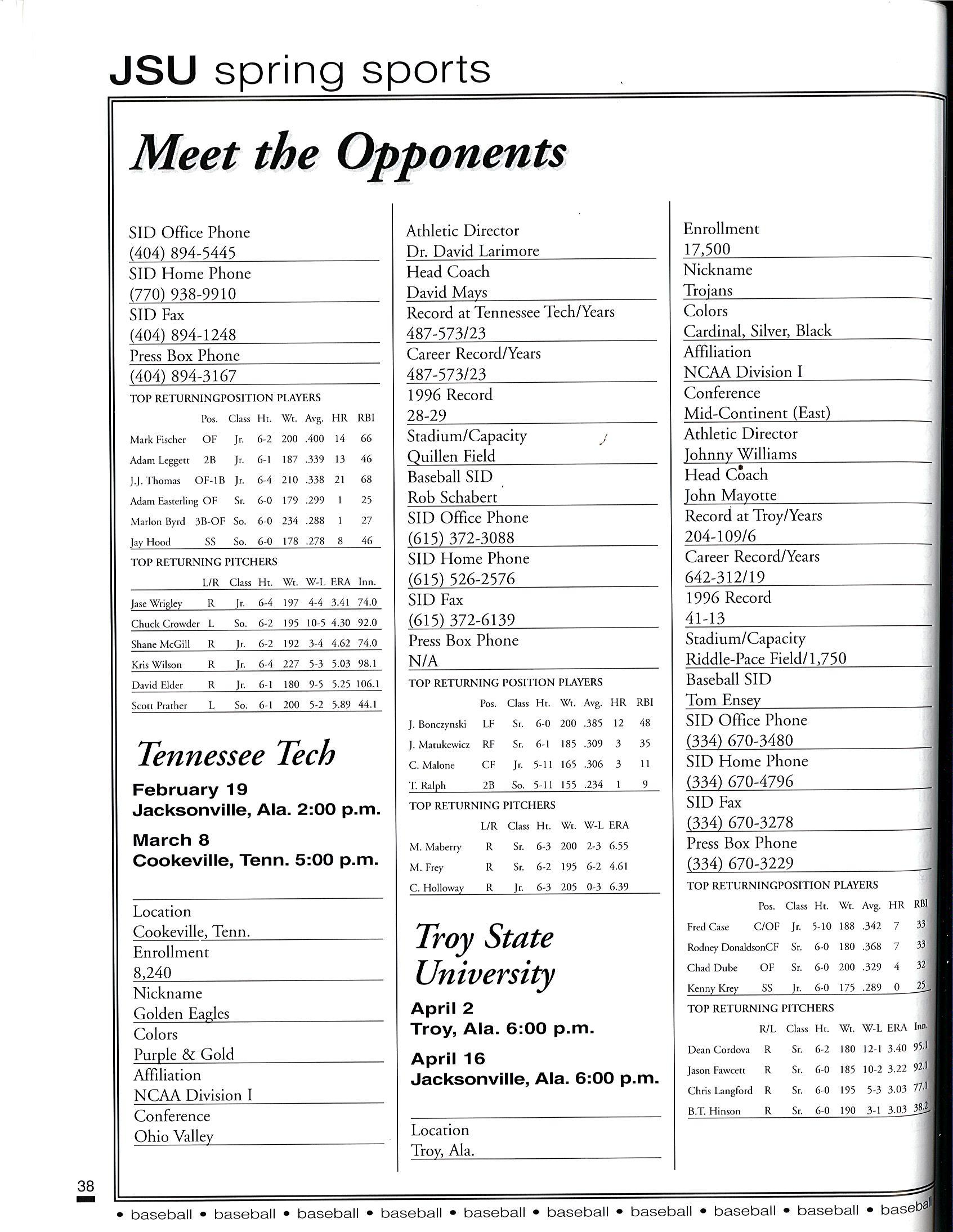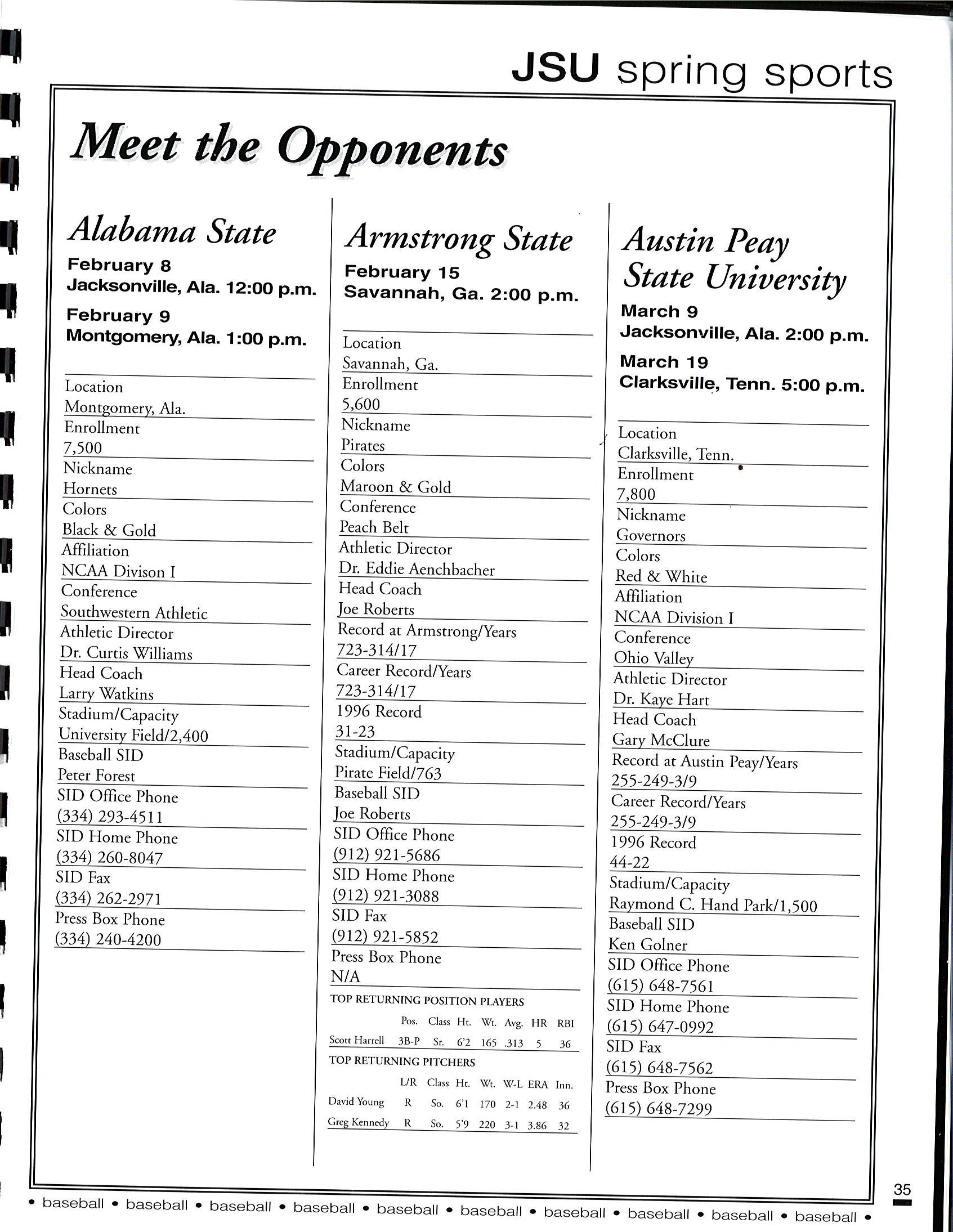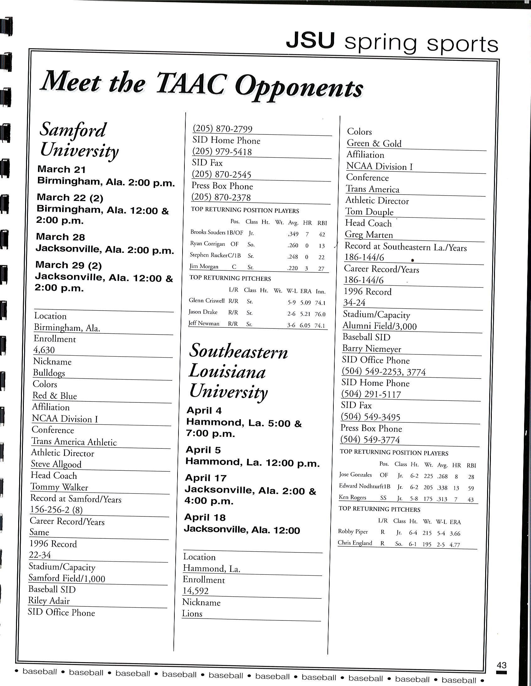 1997 JSU Baseball Media Guide by Jacksonville State Athletics - Issuu