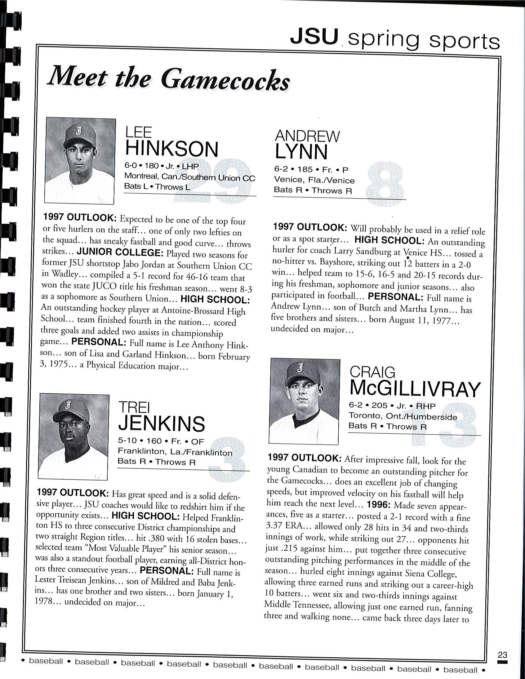1997 JSU Baseball Media Guide
