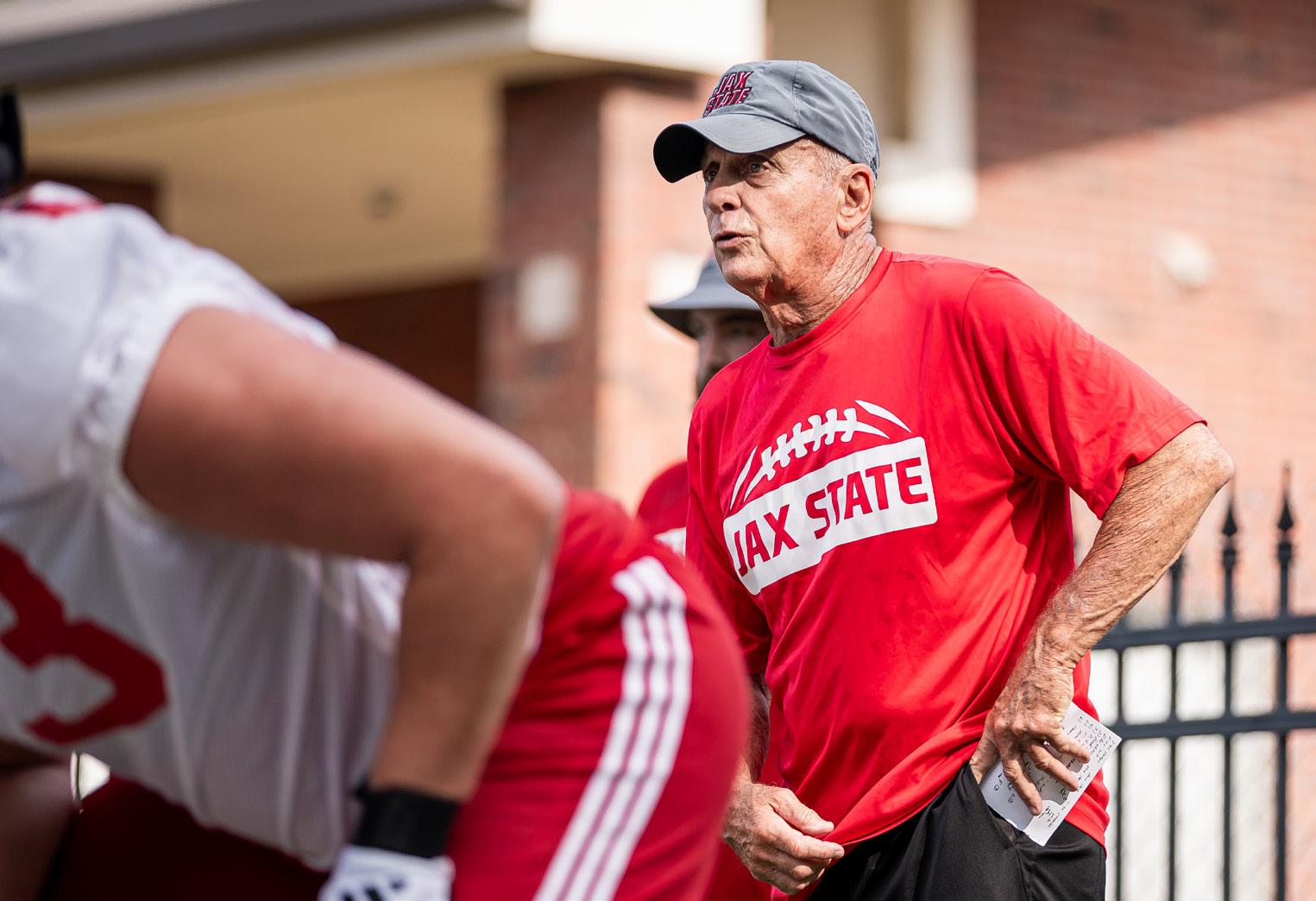 From his earliest days leading the Gamecocks, the Jax State football team won a JSU and Ohio Valley Conference-record five consecutive league titles and won a league-record 36-straight OVC games from 2014 to 2018, the second-longest conference win streak in FCS history. The Gamecocks were the only Division I program to win its conference title outright during those five seasons. The 2015 season saw the football team post it’s first-ever No. 1 ranking in school history, and earn the No. 1 National seed in the FCS Playoffs before advancing to Jax State’s first Division I National Championship Game appearance in Frisco, Texas. The Gamecocks set more than 50 school records and ranked in the top three in attendance at the FCS level after hosting three-straight home playoff games.