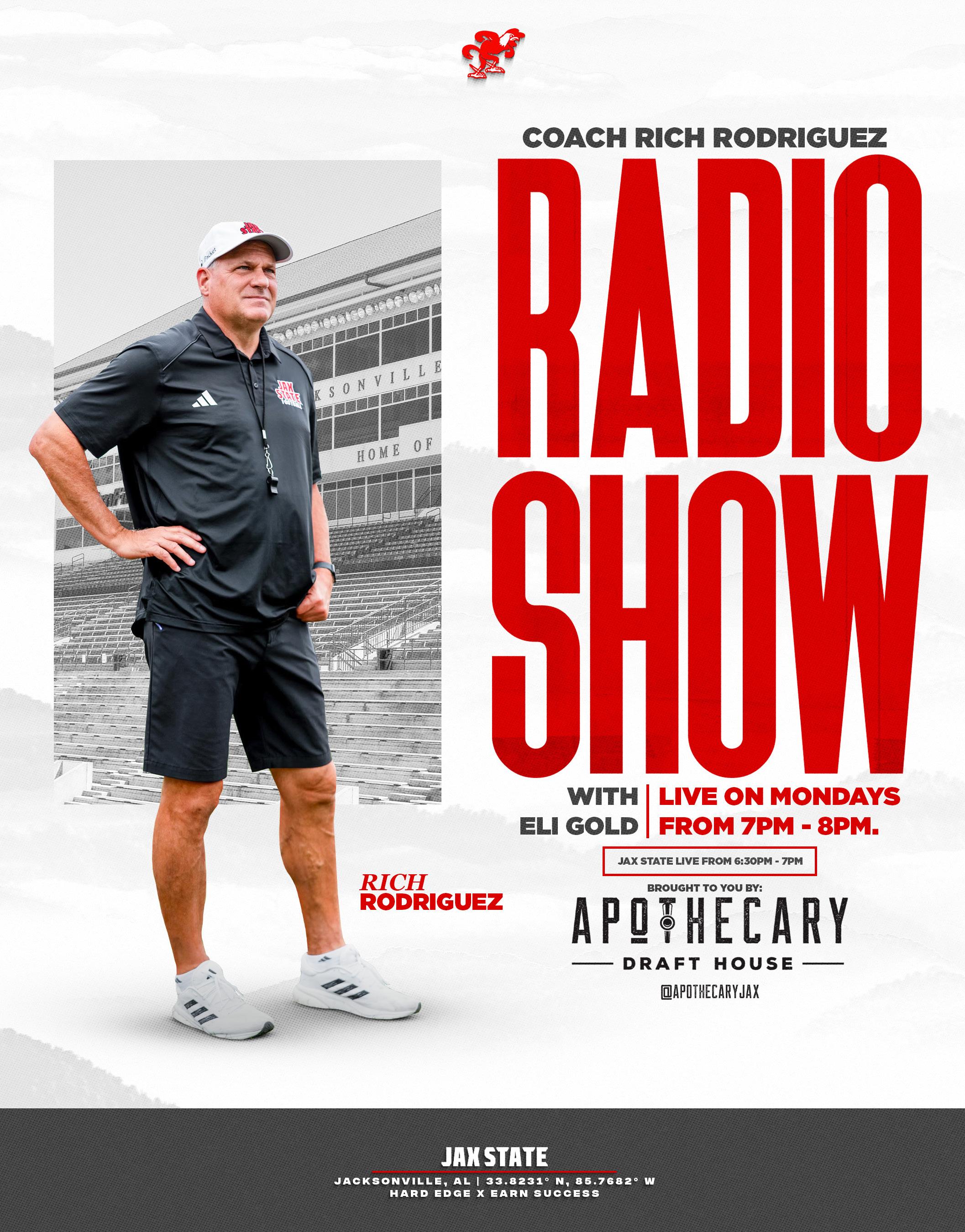 Jacksonville State is Rodriguez’s fourth FBS head coaching job after stints at West Virginia (2001-07), Michigan (2008-10) and Arizona (2012-17). He led WVU to three 10-win seasons and was named the Pac-12 Coach of the Year in 2014 after leading the Wildcats to their first 10win season in over 15 years.