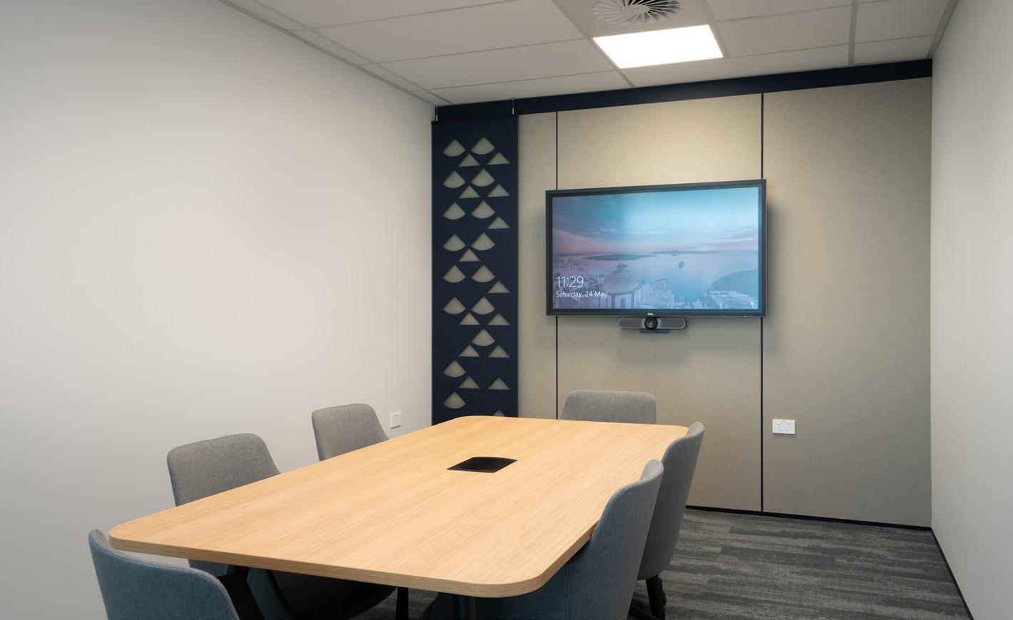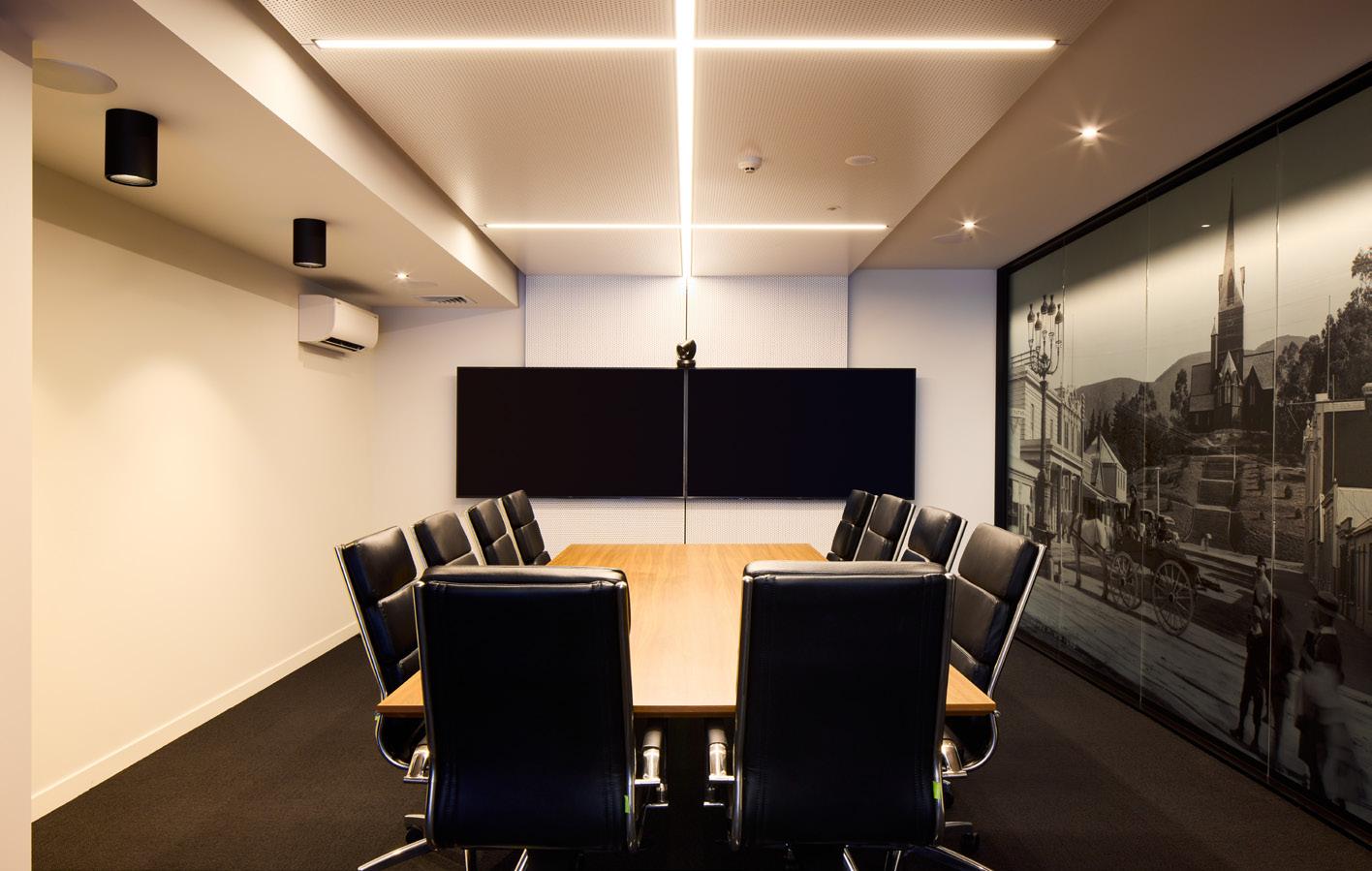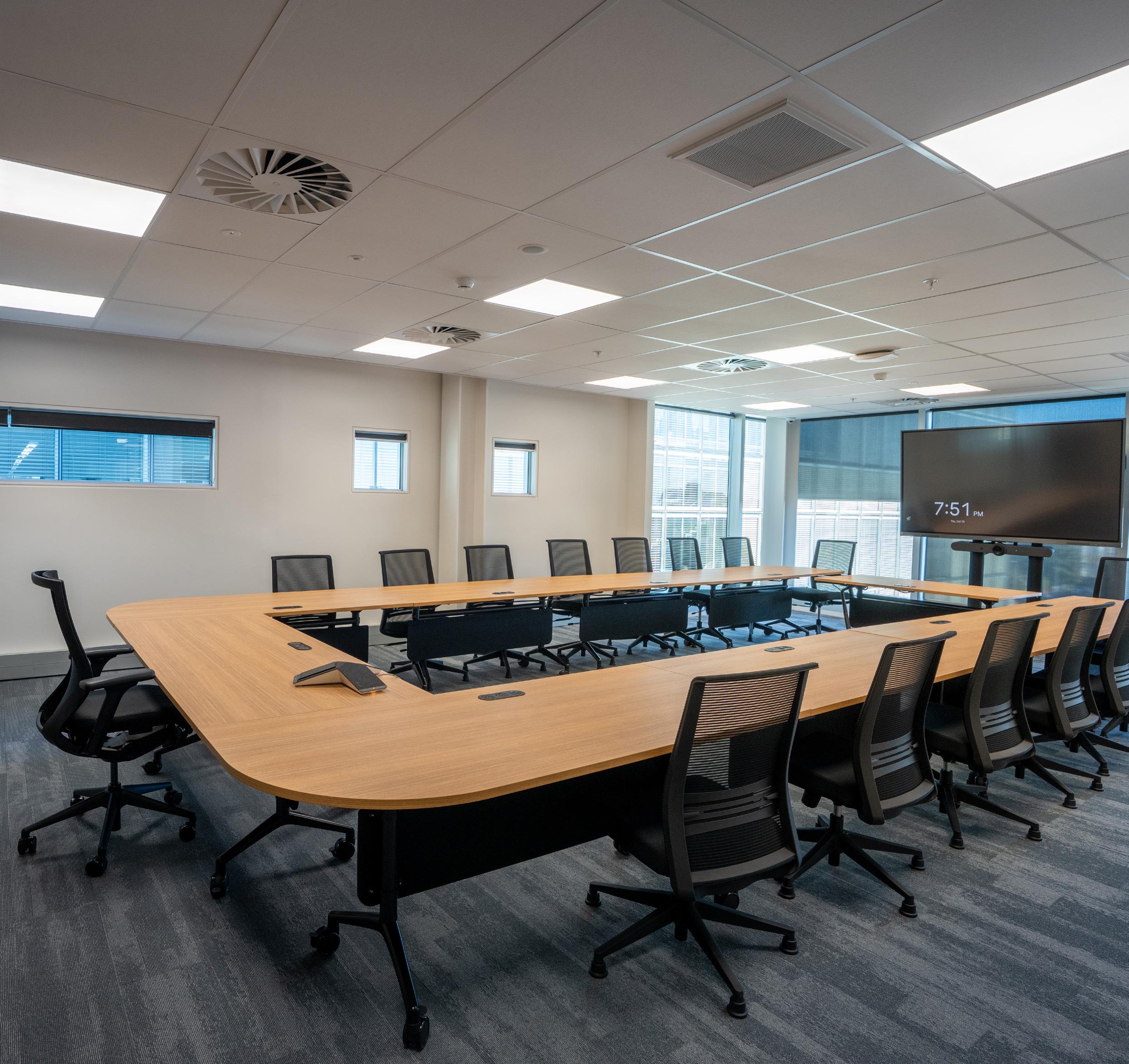 space, wall and ceiling panelling were designed to incorporate lighting, acoustics and AV requirements for a fully integrated solution.
