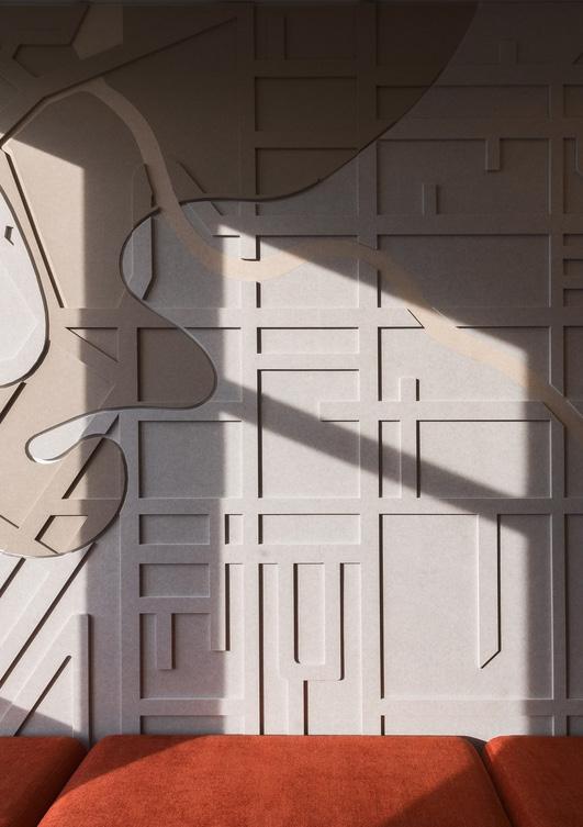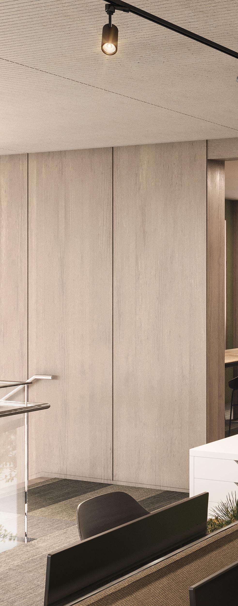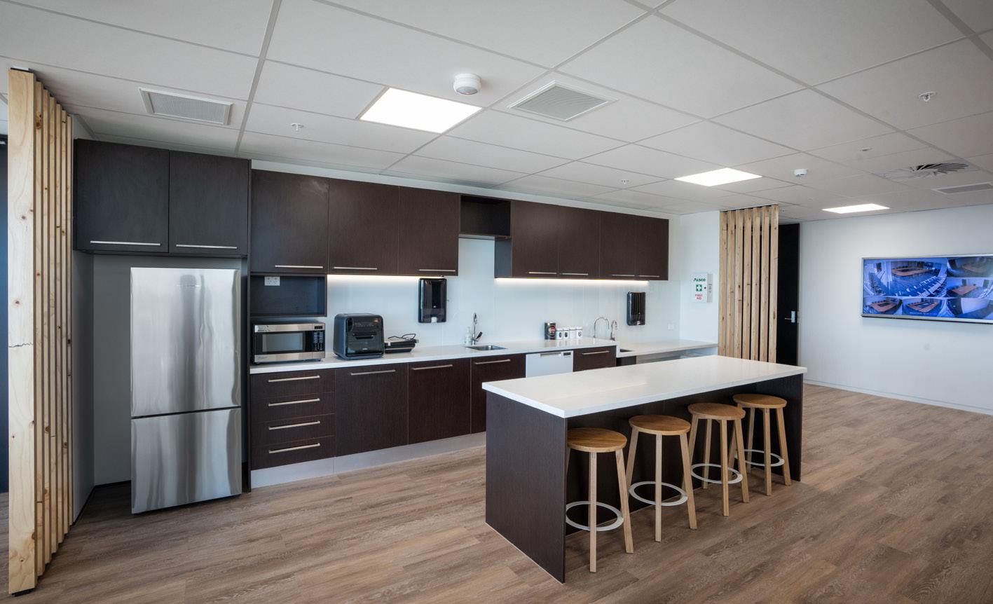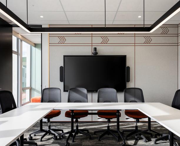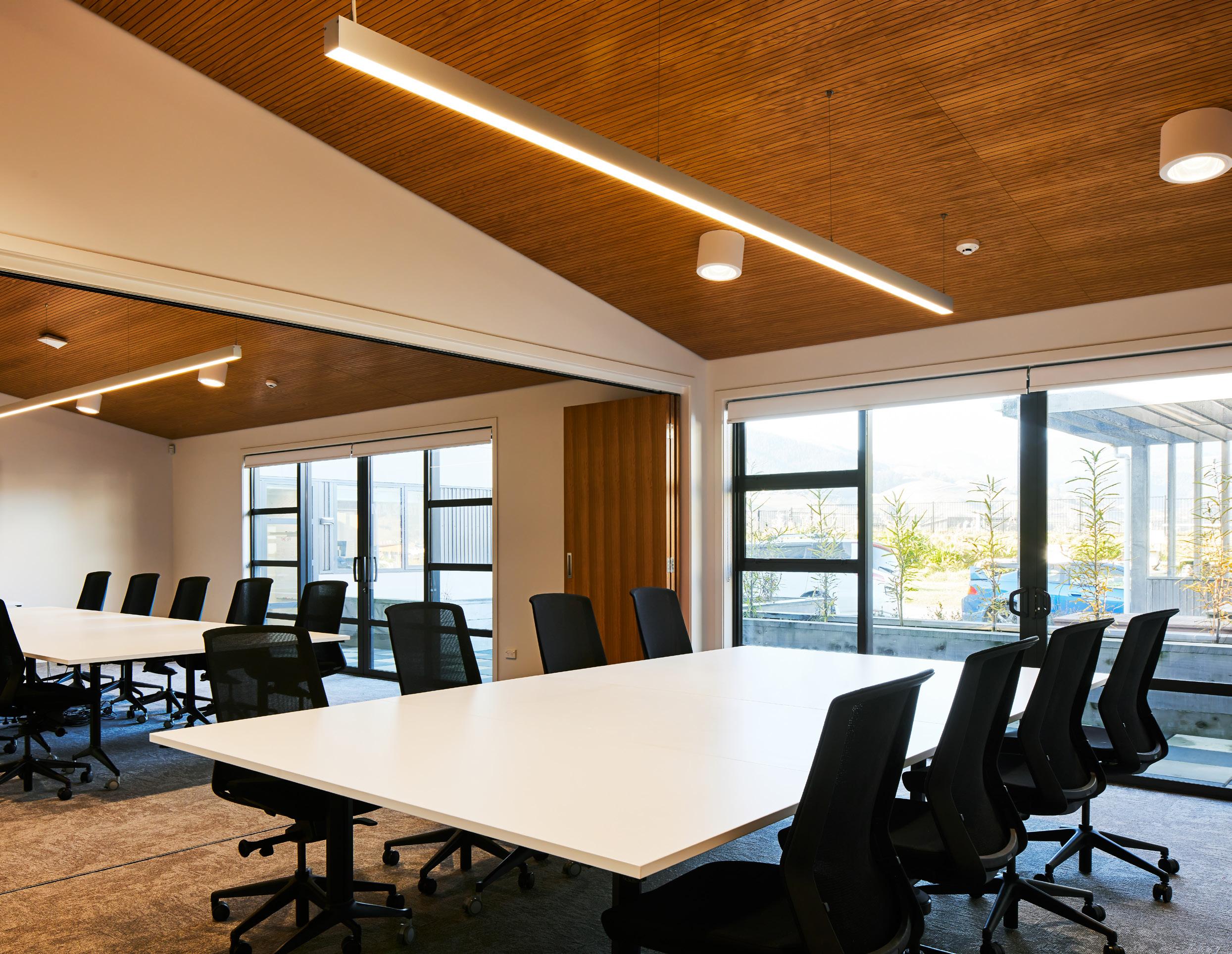 space, wall and ceiling panelling were designed to incorporate lighting, acoustics and AV requirements for a fully integrated solution.