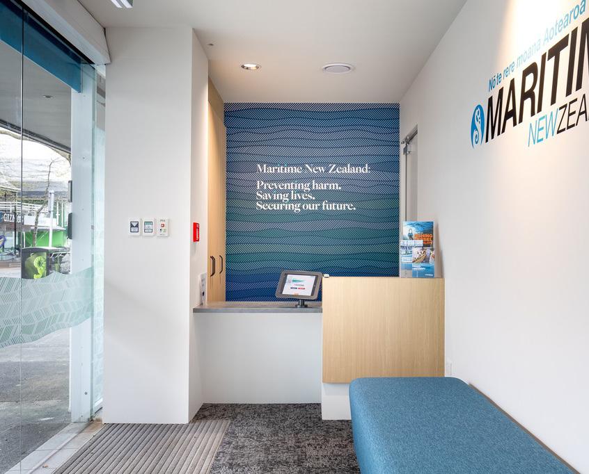 enclosed spaces. Finishes were in line with the Maritime New Zealand standards, in a palette of navy and timber to reference a nautical aesthetic.