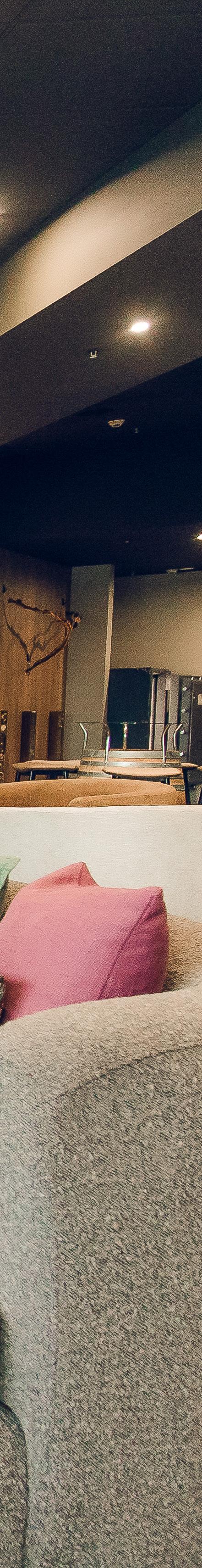 A wine-led palette anchors the atmosphere: oak tones reminiscent of barrel rooms, layered stains echoing local varietals, and tactile finishes that feel rich without being