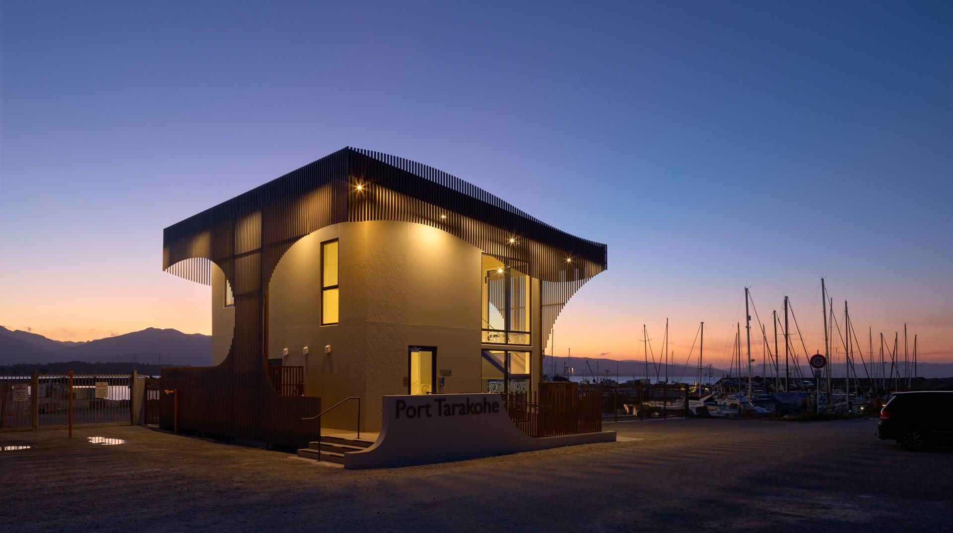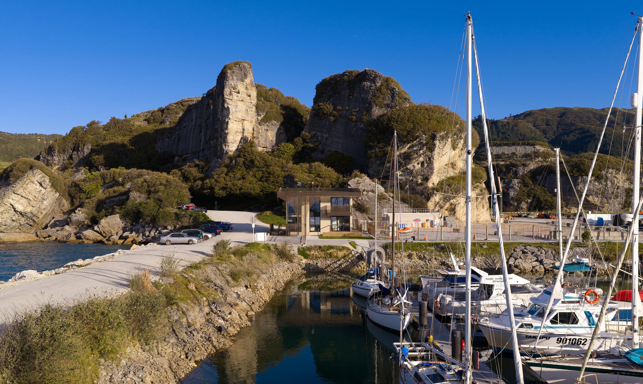 The new two-storey facility at Port Tarakohe combines practical function with a design that reflects the port’s landscape and local heritage.