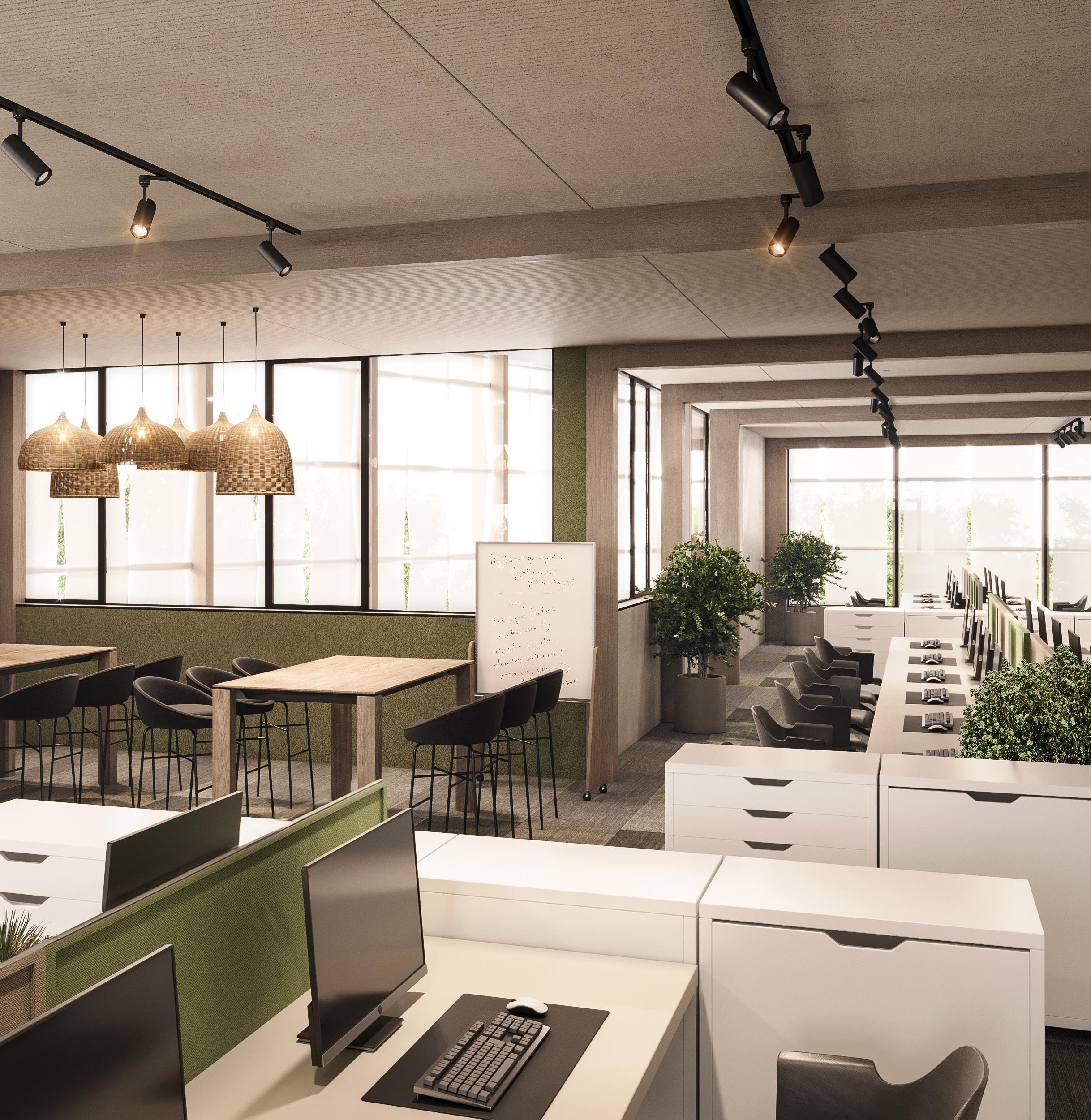 office environments to promote interaction and connectivity between these spaces.