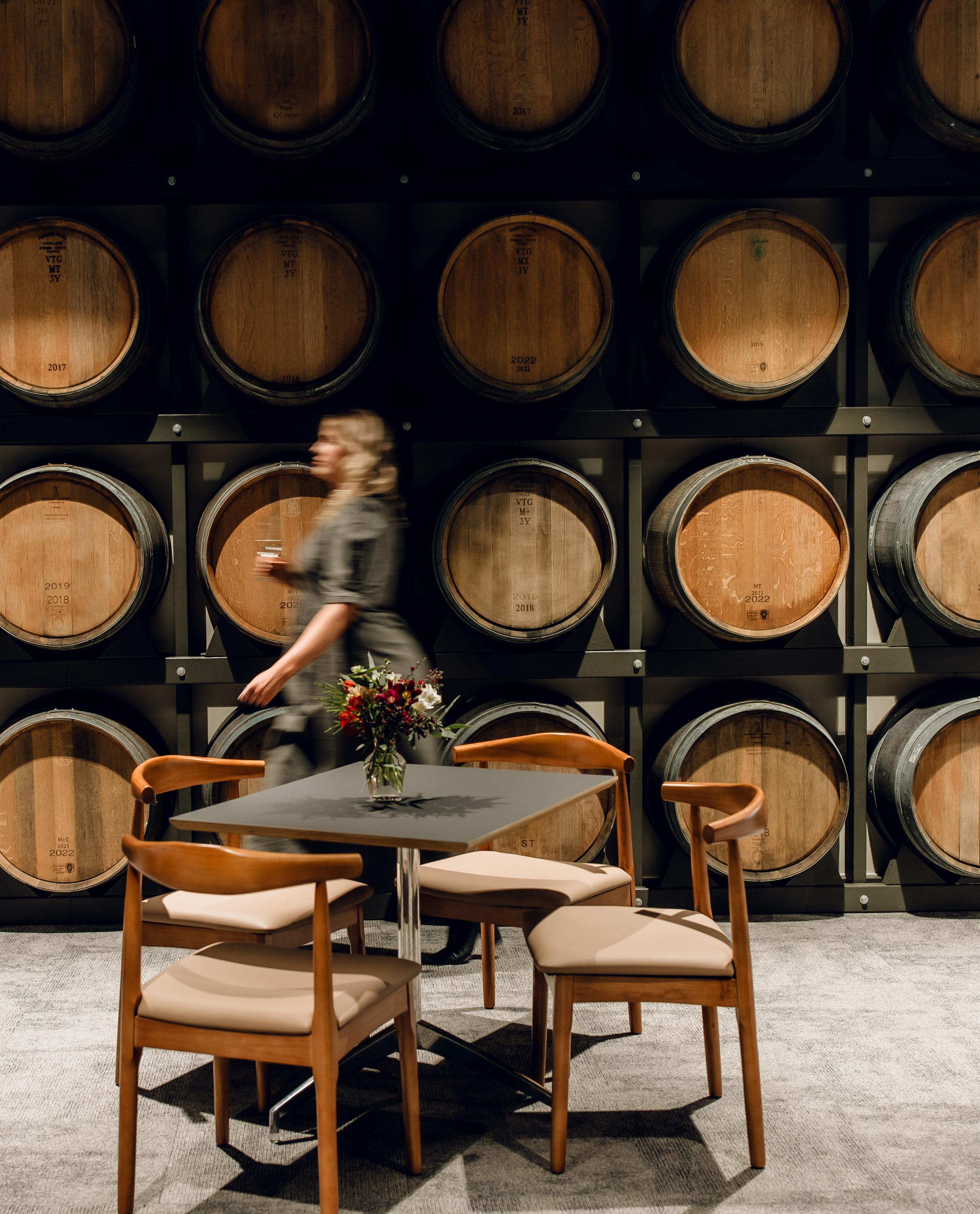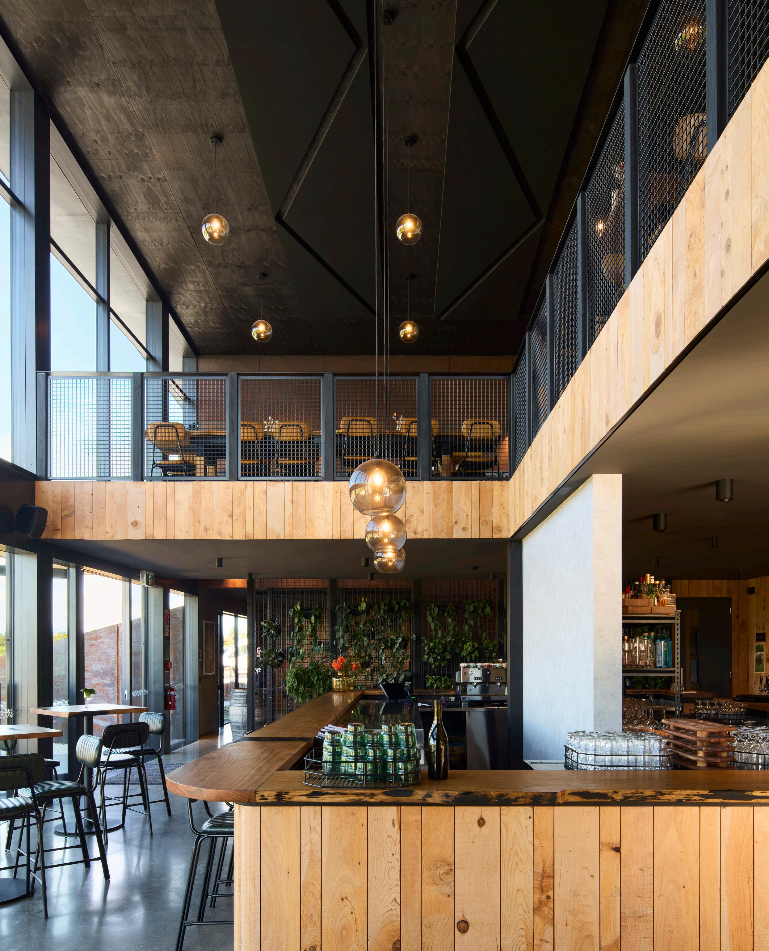 The 376 m² facility brings together cellar-door spaces for eight to ten wineries, a restaurant, brewery, tap room, laboratories, offices, and private dining and conference areas, all unified by a design language focused on sustainability and regional authenticity.