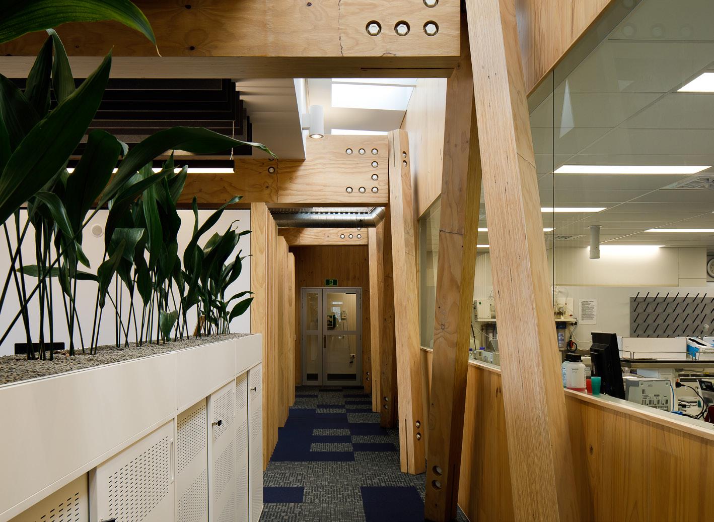 Specialist science facilities include chemistry labs, PC2 molecular labs, wet labs and a flow tank. A high level of transparency through the building be-tween the labs and