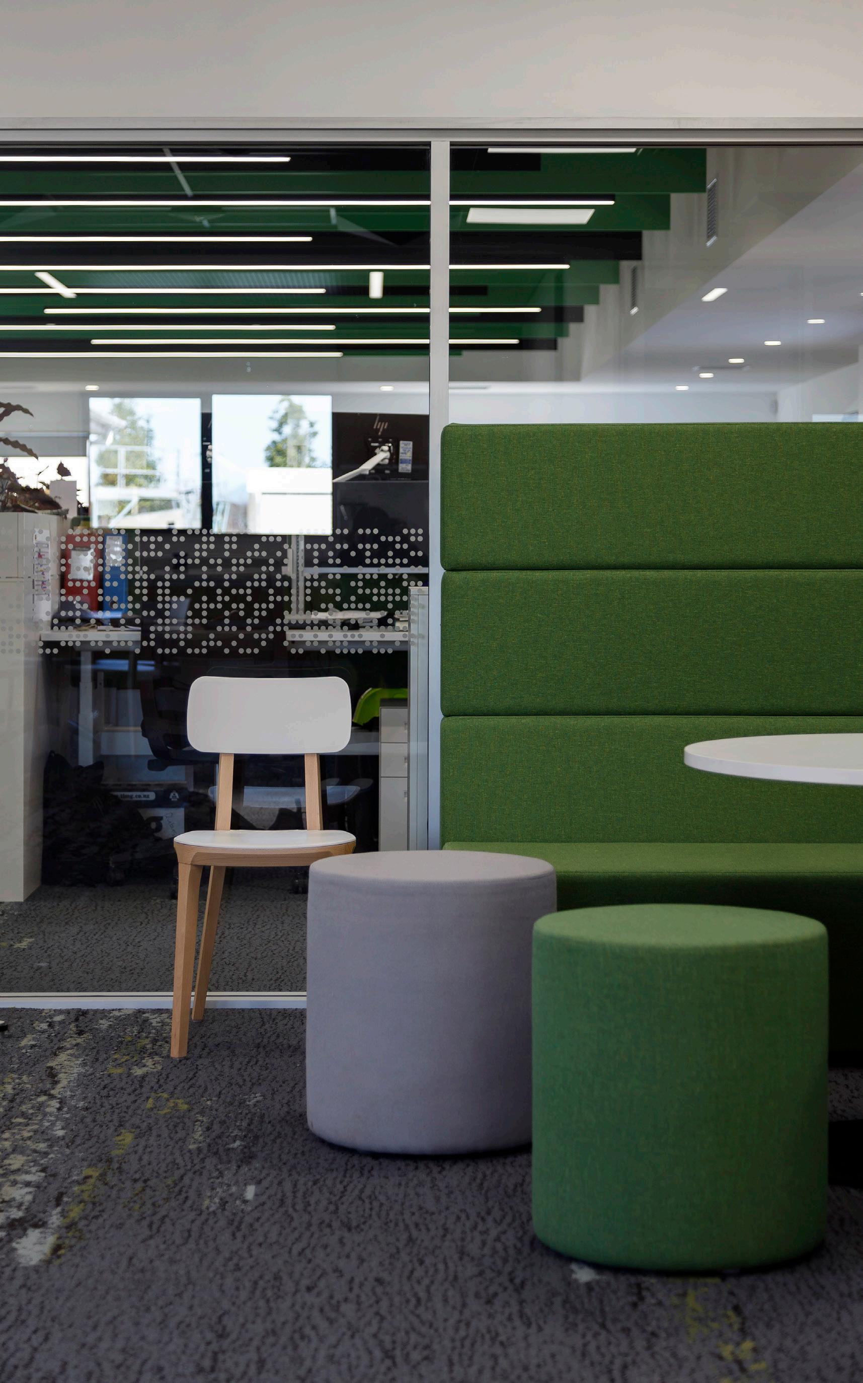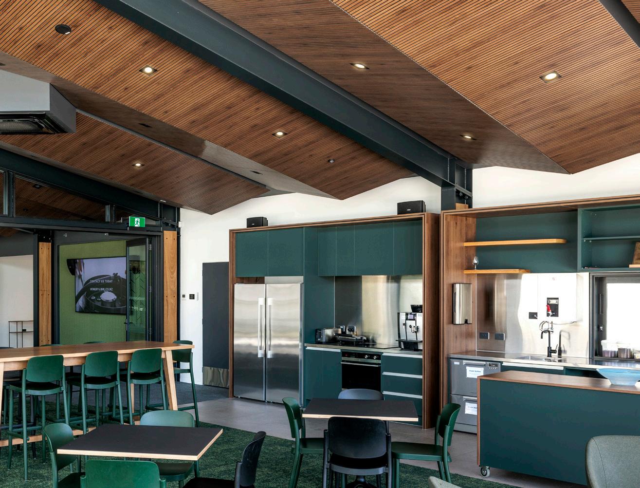 Interiors for the facility utilise a natural design palette in shades of green and organic forms. Acoustic battens nod to the rows of kiwi fruit orchards that this location specialises in.