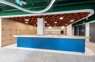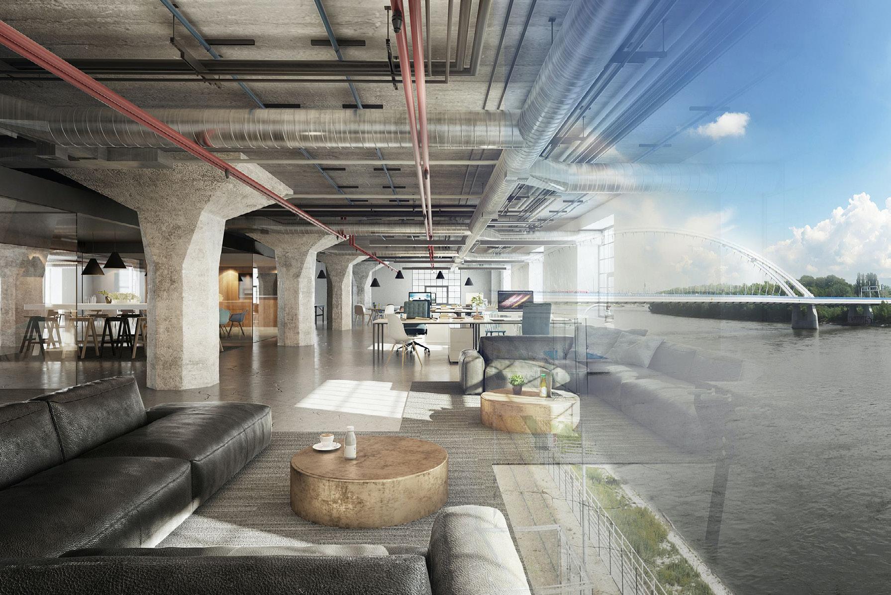 Elegancia, komfort a nápaditosť sprevádzajú návštevníkov celým priestorom. Precízne navrhnutý vstupný trakt zahŕňa recepciu a komunitný priestor s kuchynkou a barovým pultom. Dizajnovo oddelené kancelárie umožňujú jednoduchú orientáciu v priestore a zároveň vytvárajú harmonickú súhru „budov a zálivov“, čím reflektujú samotnú koncepciu komplexu RIVER PARK. Pozdĺžna dispozícia zabezpečuje dôkladné presvetlenie celej kancelárie a zmyselná tektonika miestností nikdy neomrzí. Zdravý a komfortný pobyt je zaručený kvalitným technickým, akustickým a dizajnovým riešením.