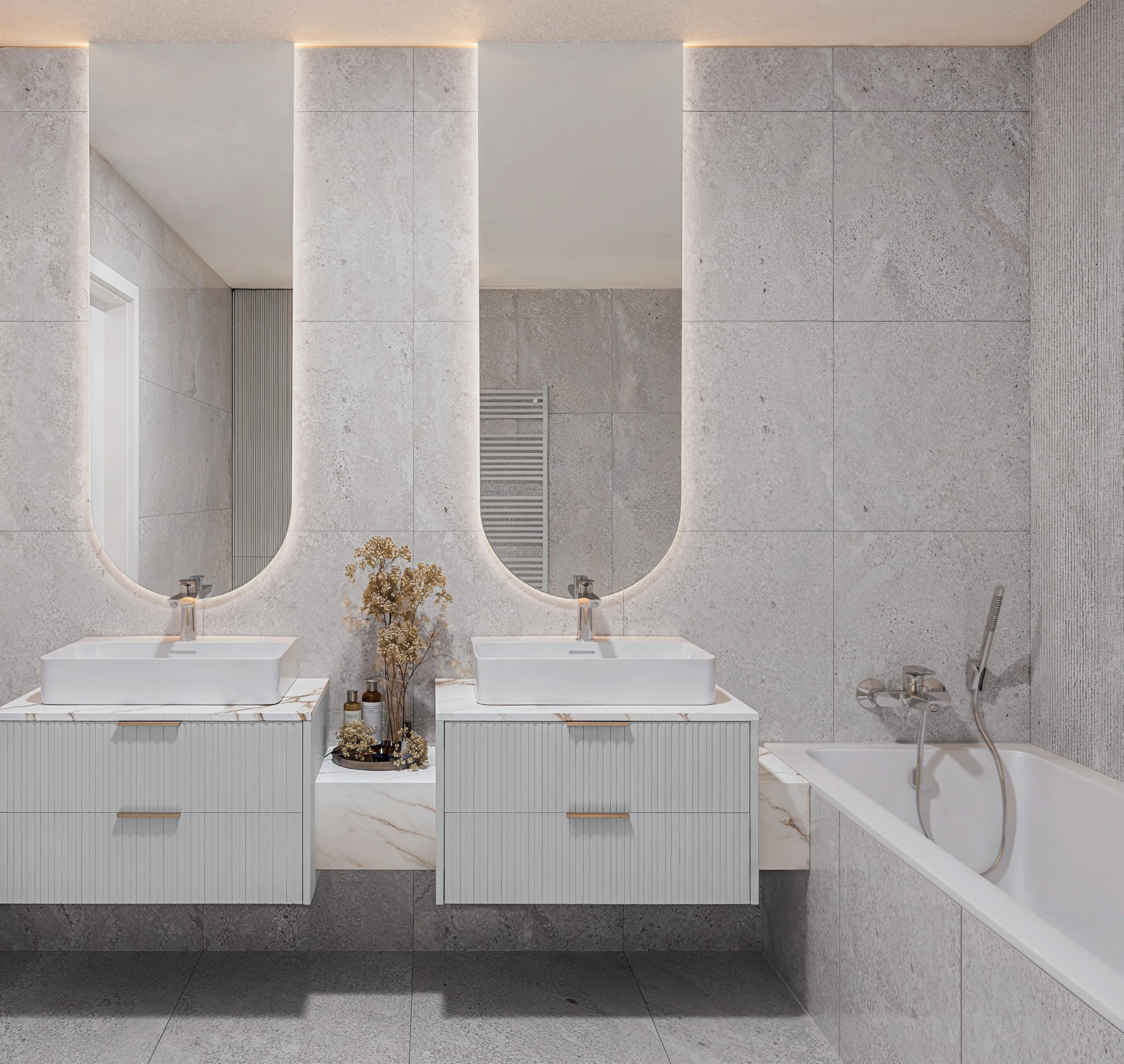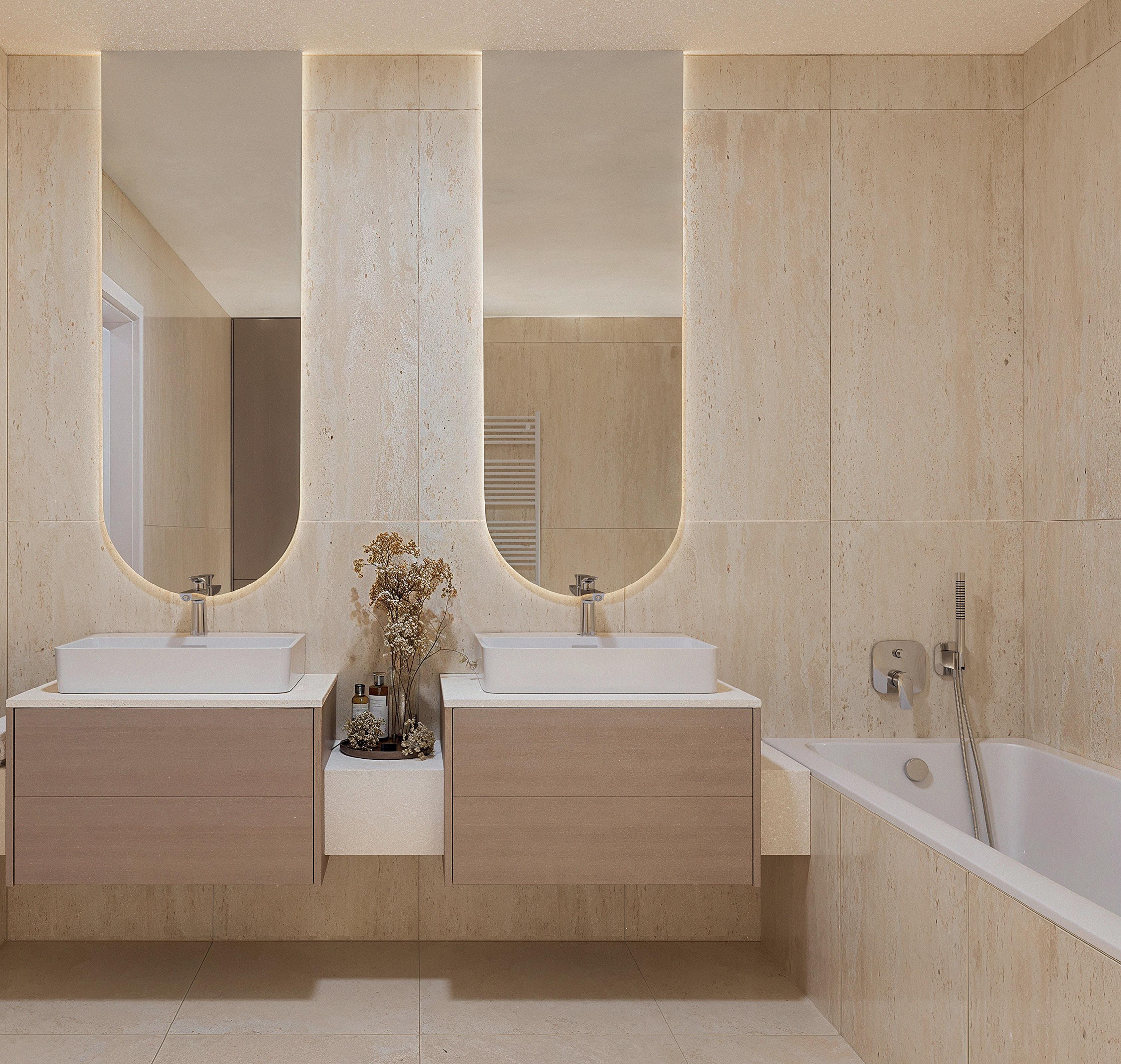 The welcoming warm interiors give a sensation akin to sun-blessed sand beneath your feet. Materials are inspired by limestone cliffs that guard secrets going back millennia to add an eternal elegance. White walls reminiscent of Mediterranean houses embrace the sun’s rays to brighten every corner. Your apartment will be a safe harbour of memorable coastal moments, where your spirit is replenished by nature’s touch. More than a style, Capri is an experience that enhances your life with exclusivity and comfort.