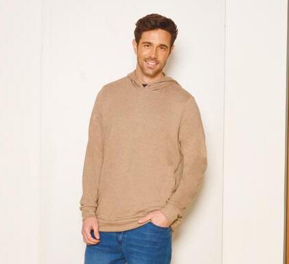 Confeccionada en viscosa roja con recorte en viscosa azul. Con capucha y estampa localizada en delantero.