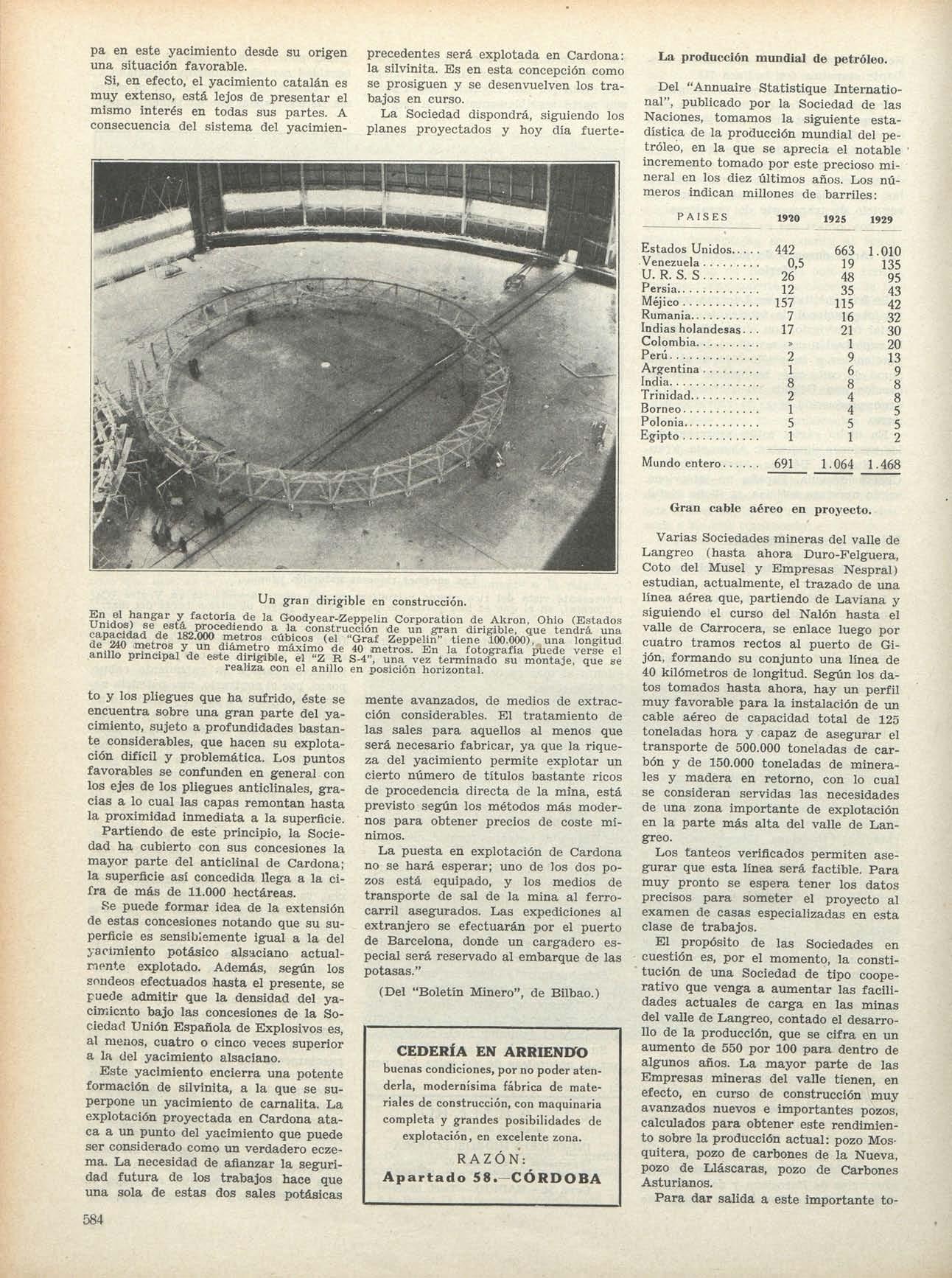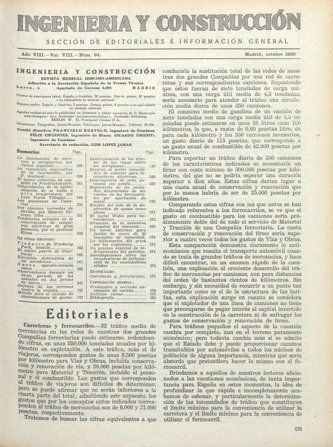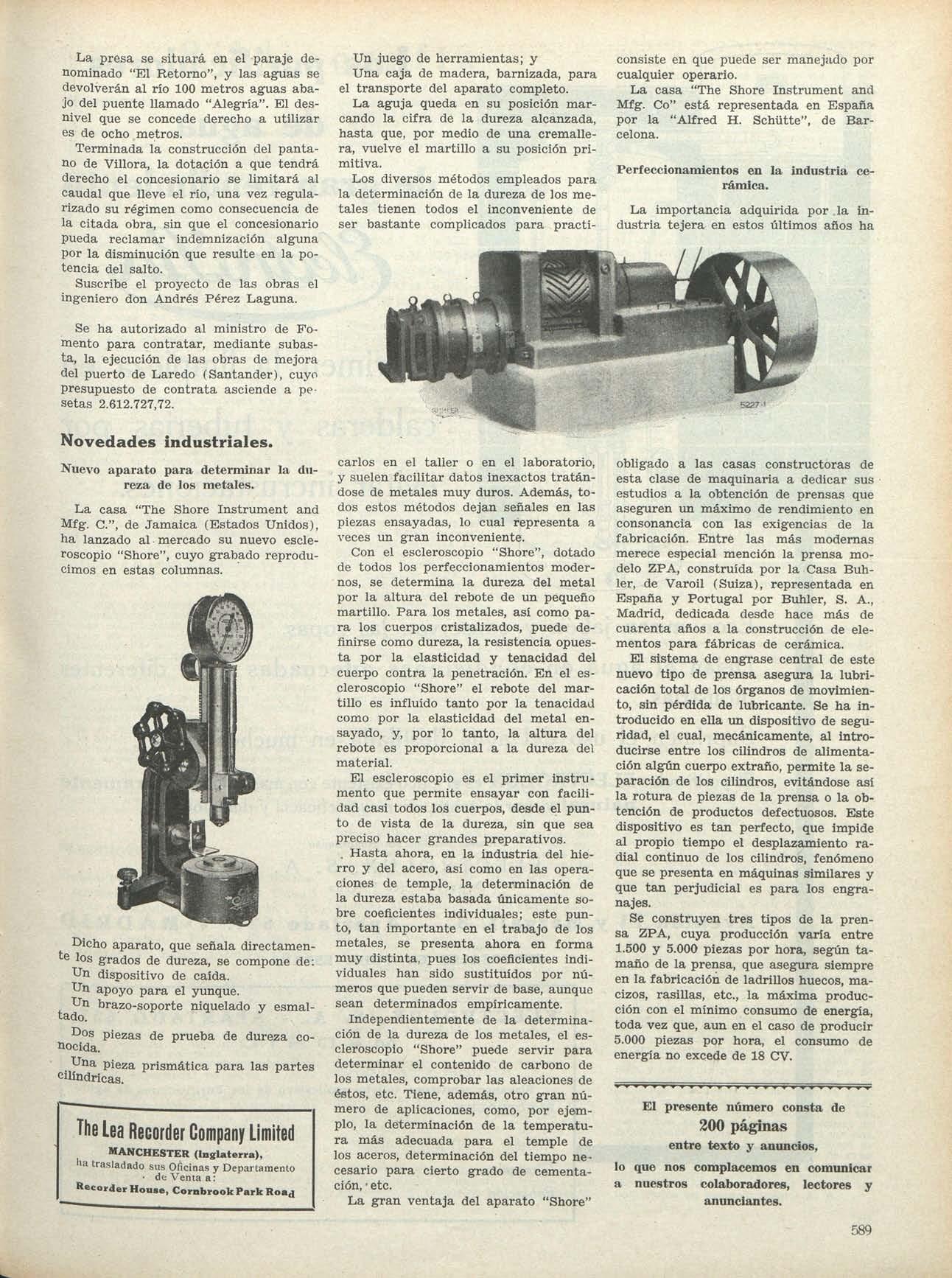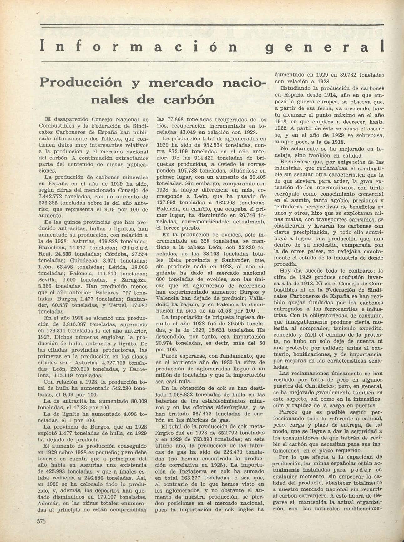 "Anuario de Minería, Metalurgia, Electricidad y demás industrias de España", tomo XXX, 1930, publicado por la "Revista Minera, Metalúrgica y de Ingeniería", Villalar, 3, Madrid.—975 páginas.-Precio, 10,50 pesetas.