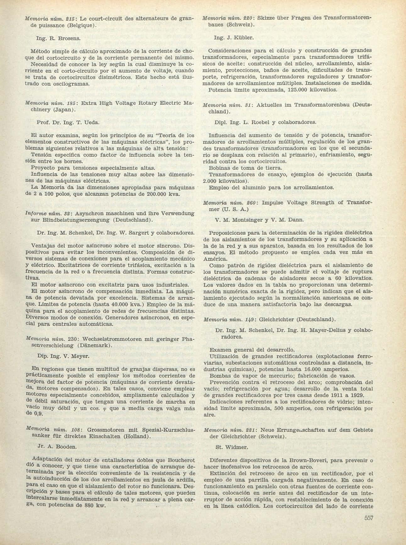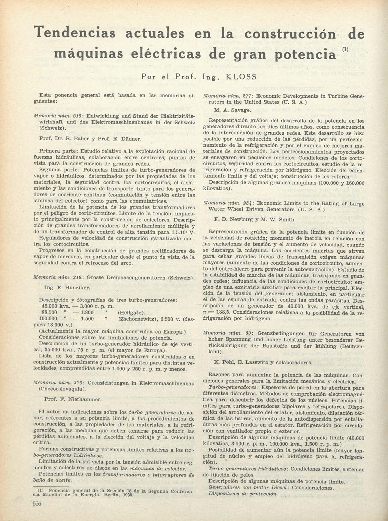 "Zweite Weltkraftkonferenz".—Berlín, 1930 Tres ediciones: alemana, inglesa y francesa; la alemana contiene 271 páginas.— Editor; VDI-Verlag G. m. b. H., Berlín, NW. 7.—Precio, 20 RM.