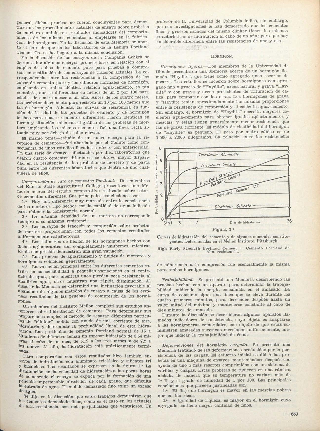 Estas cifras sonrealmente moderadas, puesen el pliego de condiciones del proyecto se indica que el cementoa emplear seasupercemento ocemento aluminósecapazdedarenensayoalosveintiocho días una resistencia de 300 Kg :cm.^ para hormigones de300kilosdecementopor cada metro cúbico