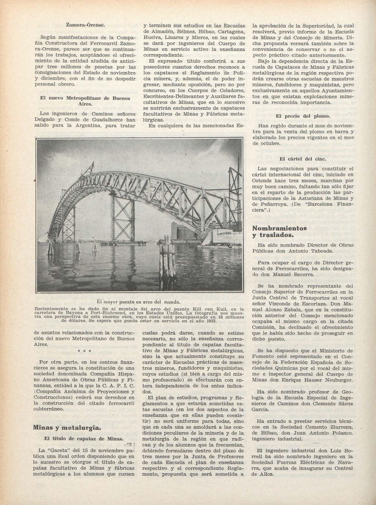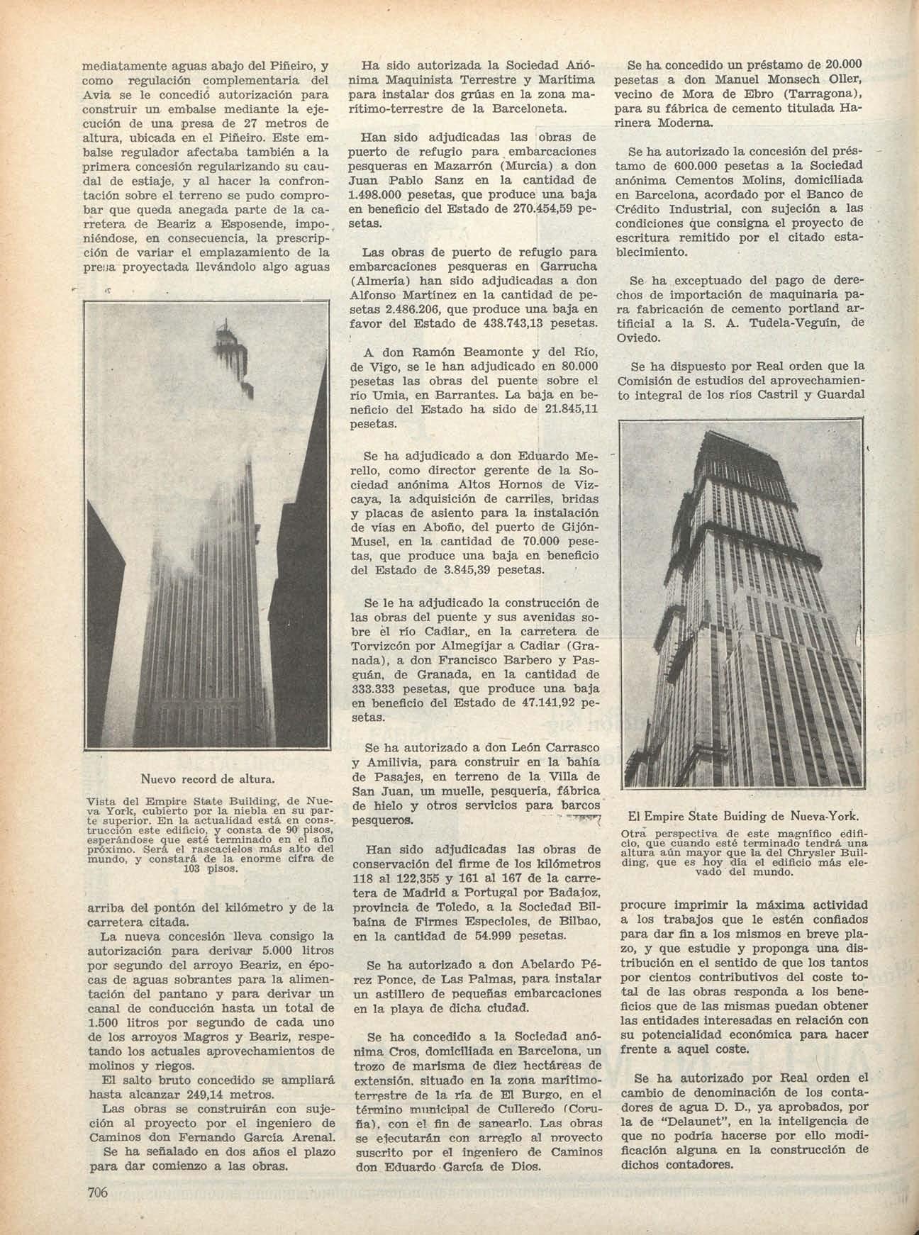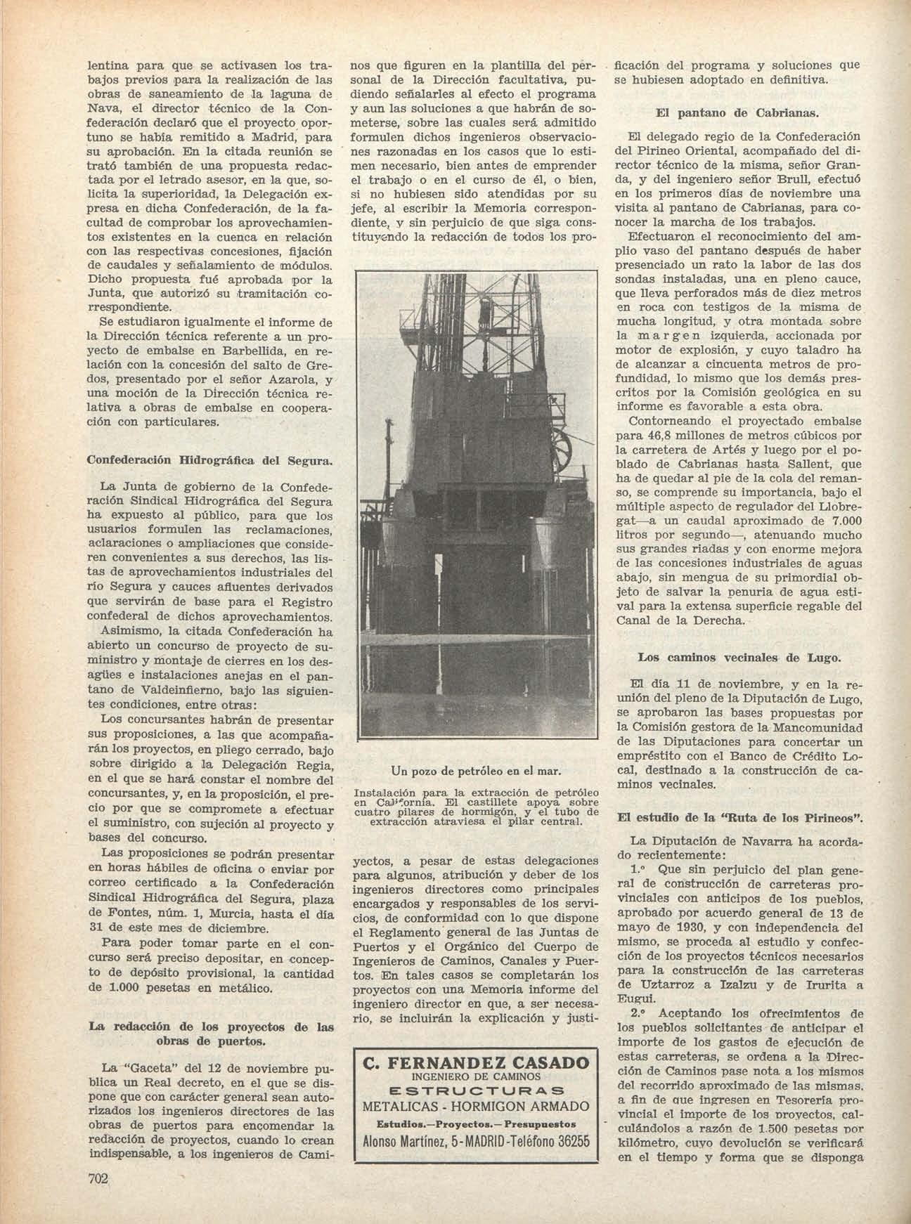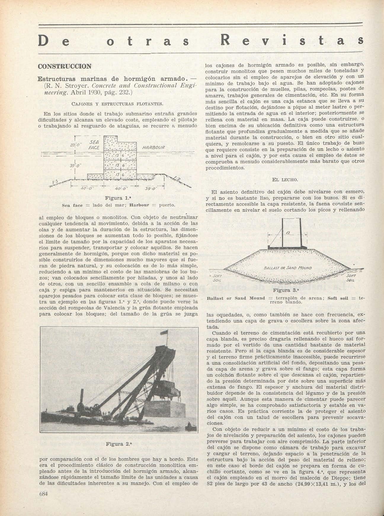 fl) En este mismo número de INGENIERÍA Y CON.S TRUCCIÓN V en el anterior, correspondiente al mes de Noviembre, el señor Peña se ha ocupado con yran detenimiento del cálculo y construcción d e los citados hangares, asi como de su nuevo tipo de presas bóvedas, mencionado más adelante