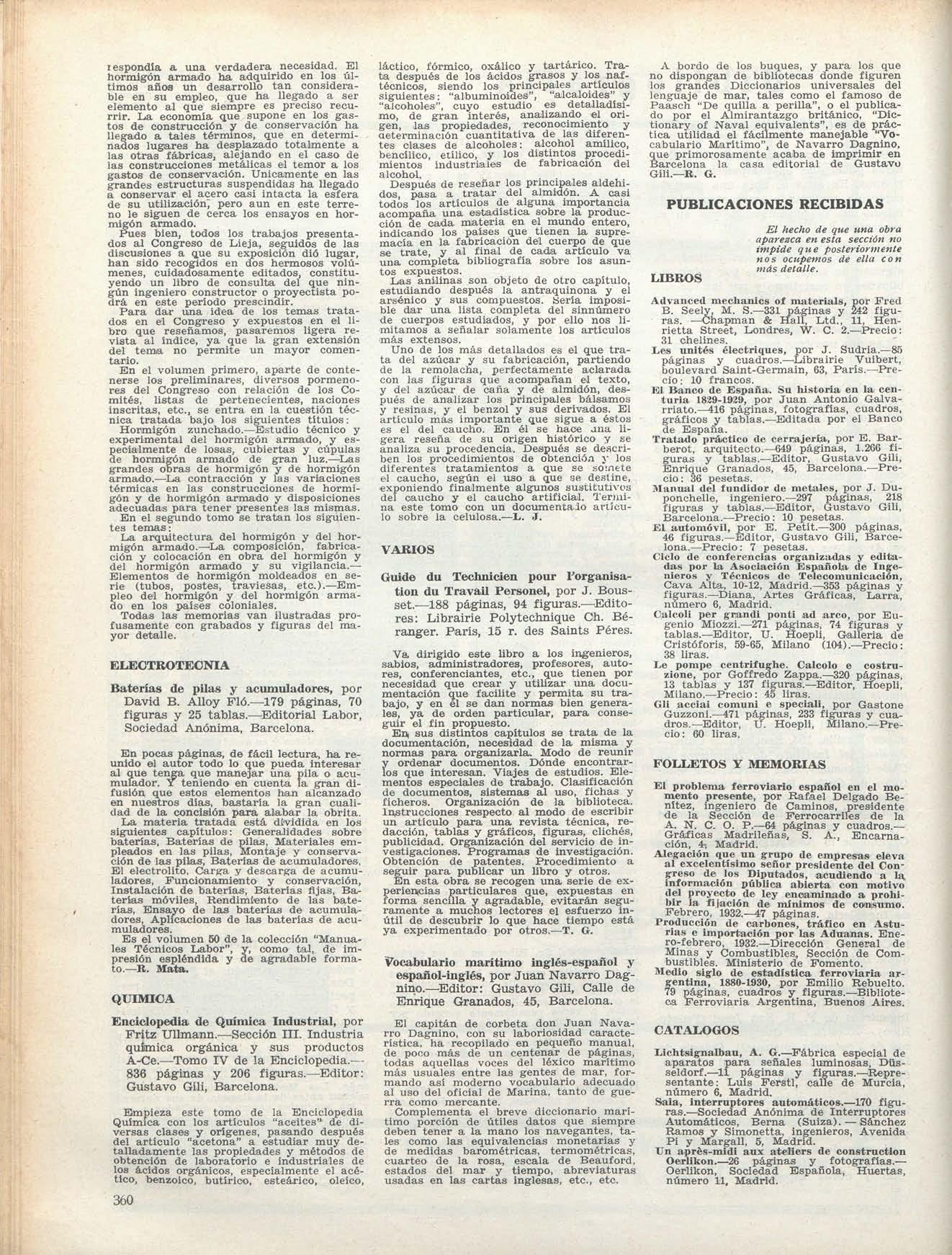 Dos tomos de 549 y 400 páginas, respectivamente, con múltiples grabados y figuras.—Editado por L a Technique des Travaux, 196 rué Grétry, Liege, y 54, rué de Clichy, París (IXme.)