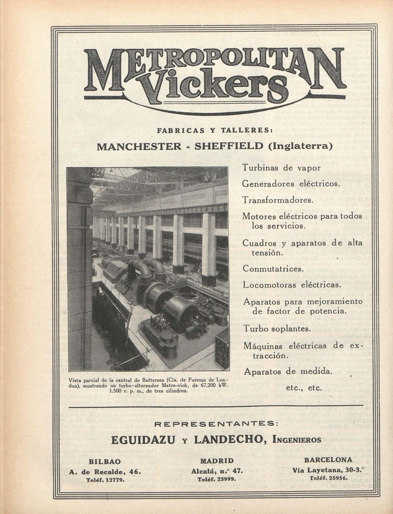 R E R R E S E INJT A N X E S : EGUIDAZ U Y LANDECHO , INGENIEROS BILBA O A. de Recalde, 46 . Teléf. 12779. MADRID Alcalá) n.o 47. Teléf. 23999. BARCELONA Vía Layetana, 30-3." Teléf. 25956.