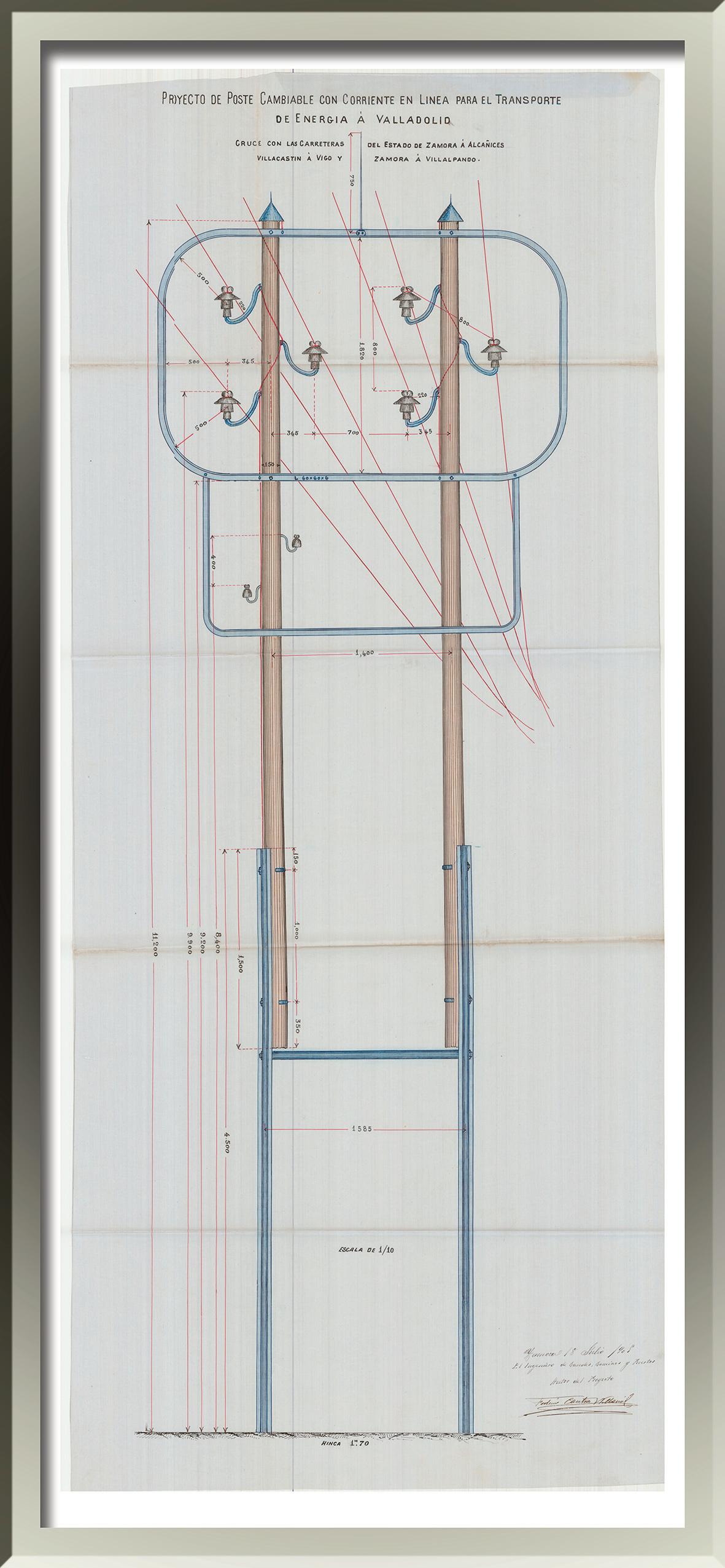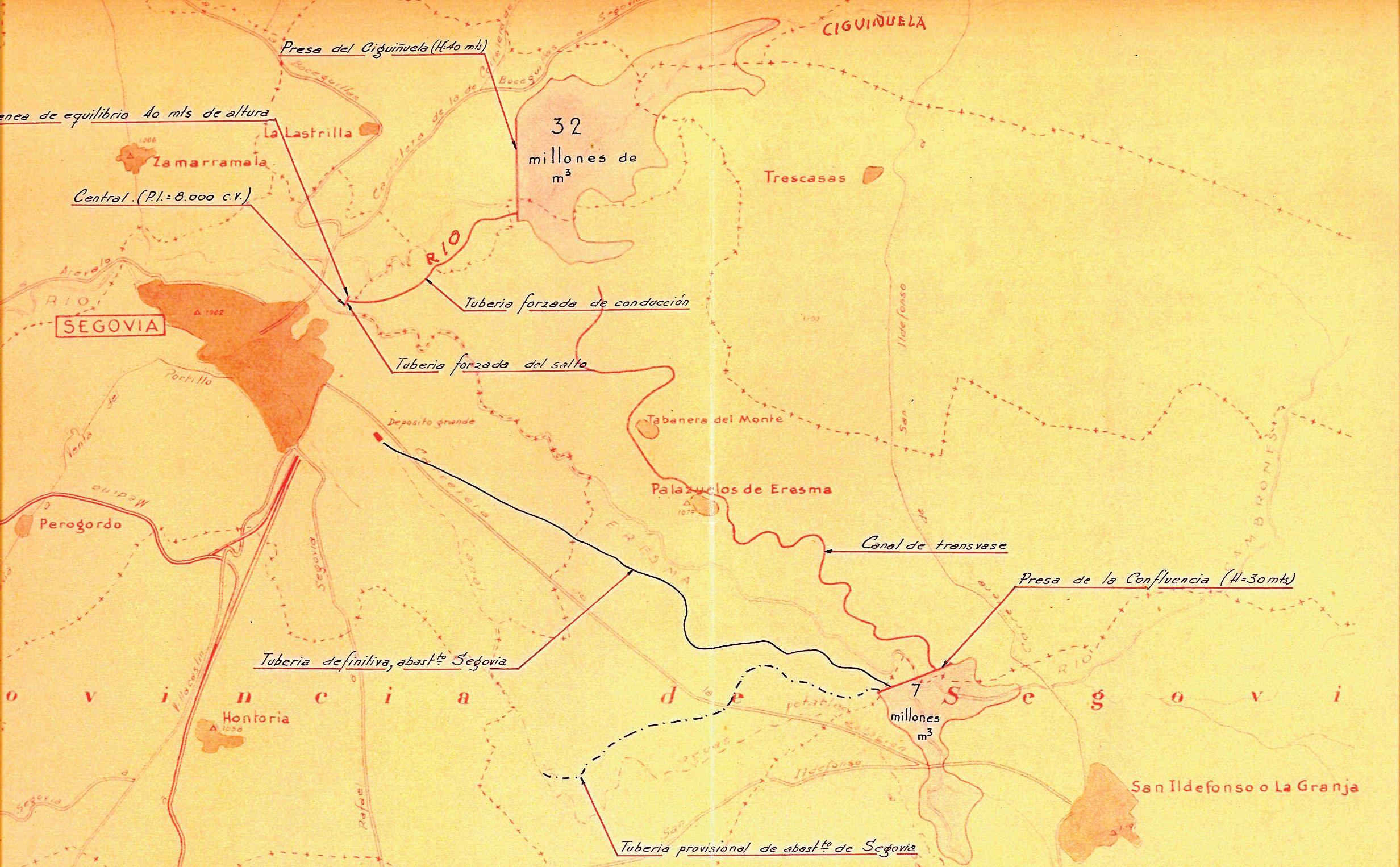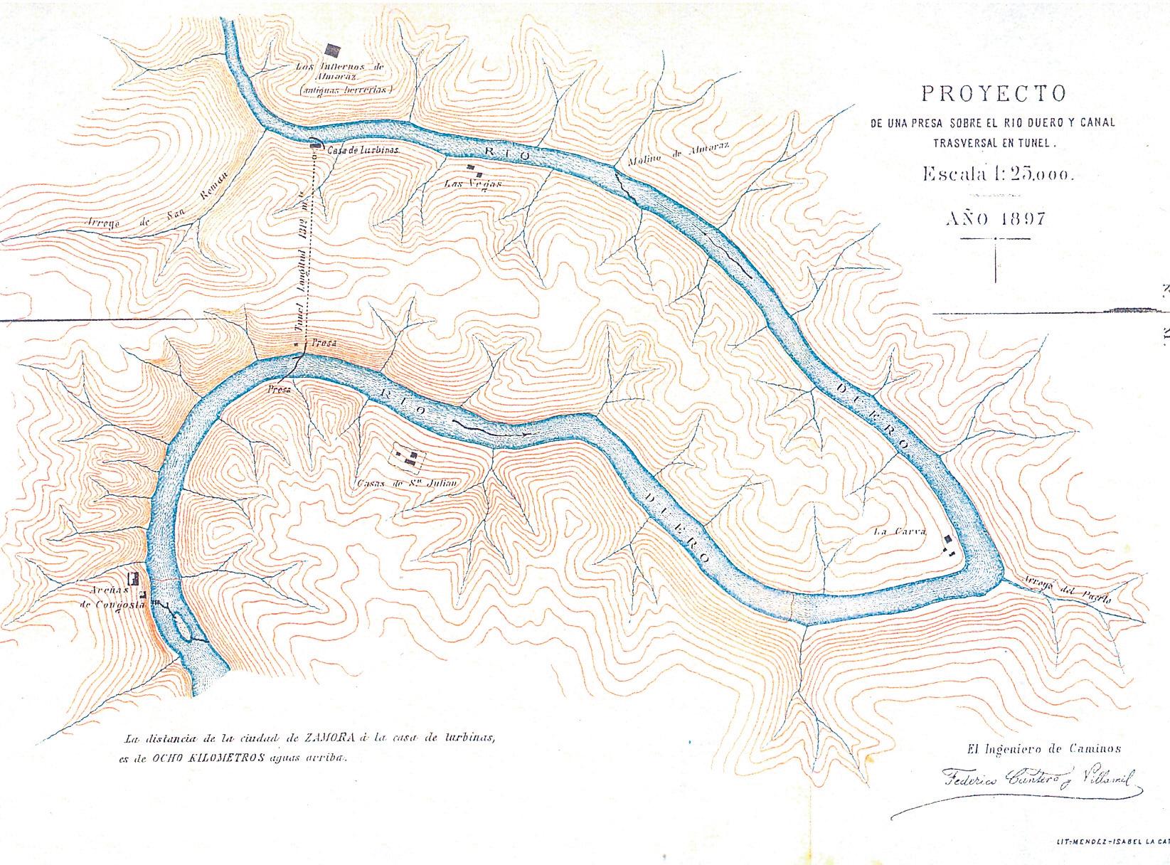Figura 3: Proyecto de una presa sobre el río Duero y canal transversal en túnel, diseñado por Cantero Villamil en 1897. Archivo Histórico de Iberdrola “Salto de Ricobayo”.