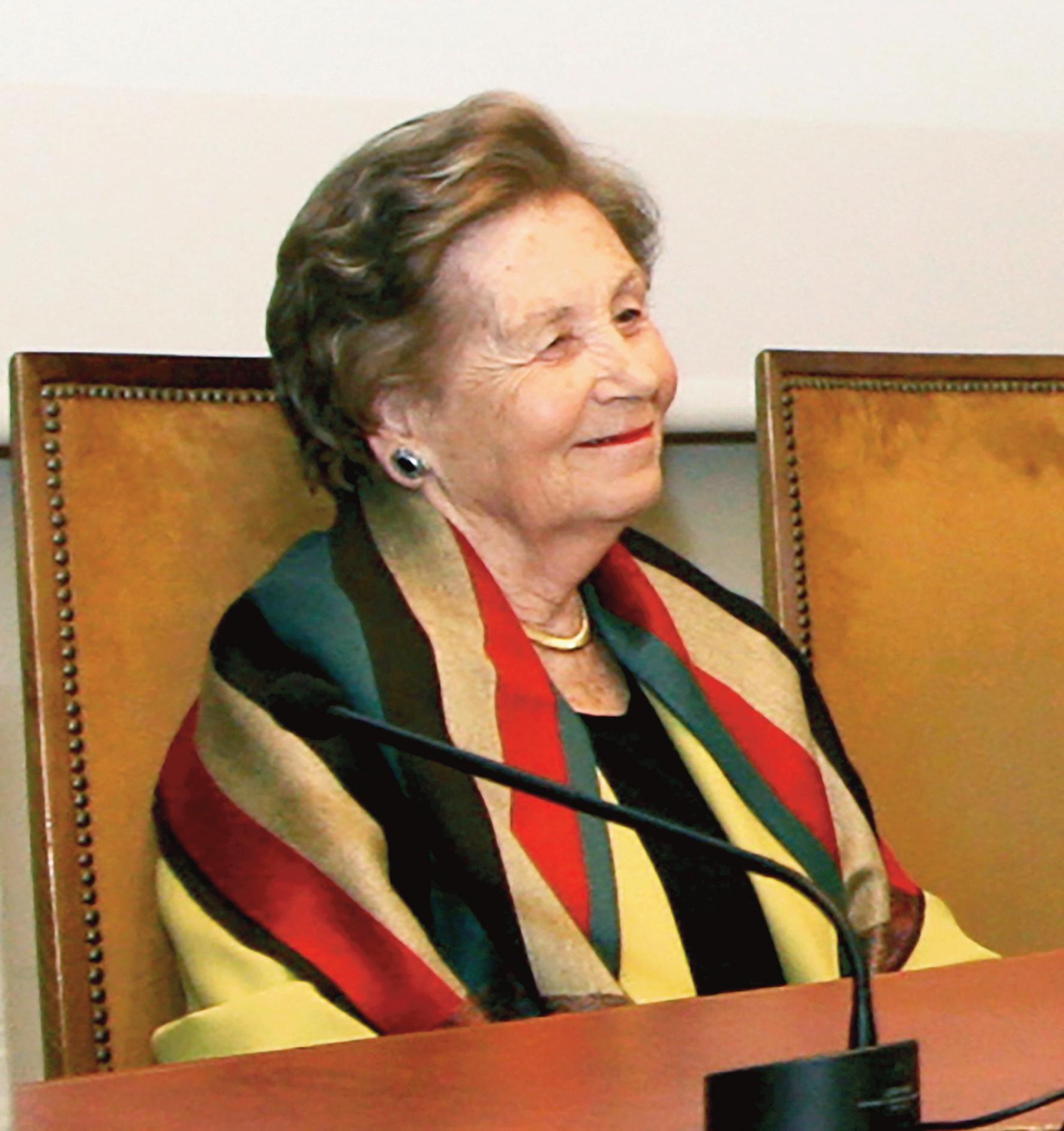 Foto 1: Concepción Cantero García-Arenal (Conchita) en la presentación de la biografía de Cantero Villamil en el Instituto de la Ingeniería de España, organizada por la Asociación de Ingenieros Aeronáuticos de España y la Asociación de Ingenieros de Caminos Canales y Puertos de España. de noviembre de 6. Archivo Instituto de la Ingeniería de España.