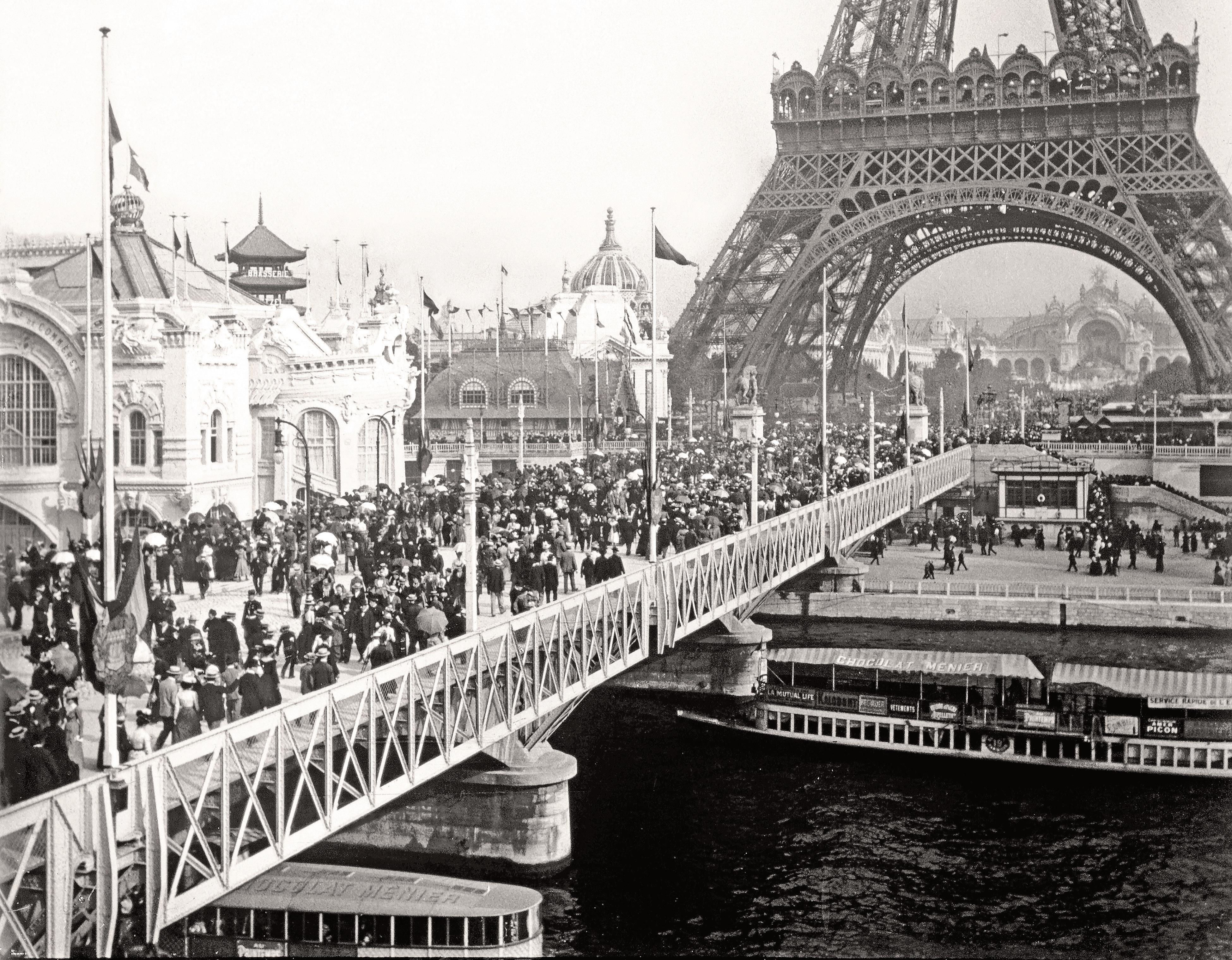Foto: Puente del “Pont D’léna”. A través de este puente se accedía al Campo de Marte donde estaban ubicados los pabellones de ingeniería civil, química, metalurgia, minería, arte, diseño, economía, colonización e industrias diversas. Al fondo, a la derecha, se puede ver la fachada del “Palacio de la Electricidad”.