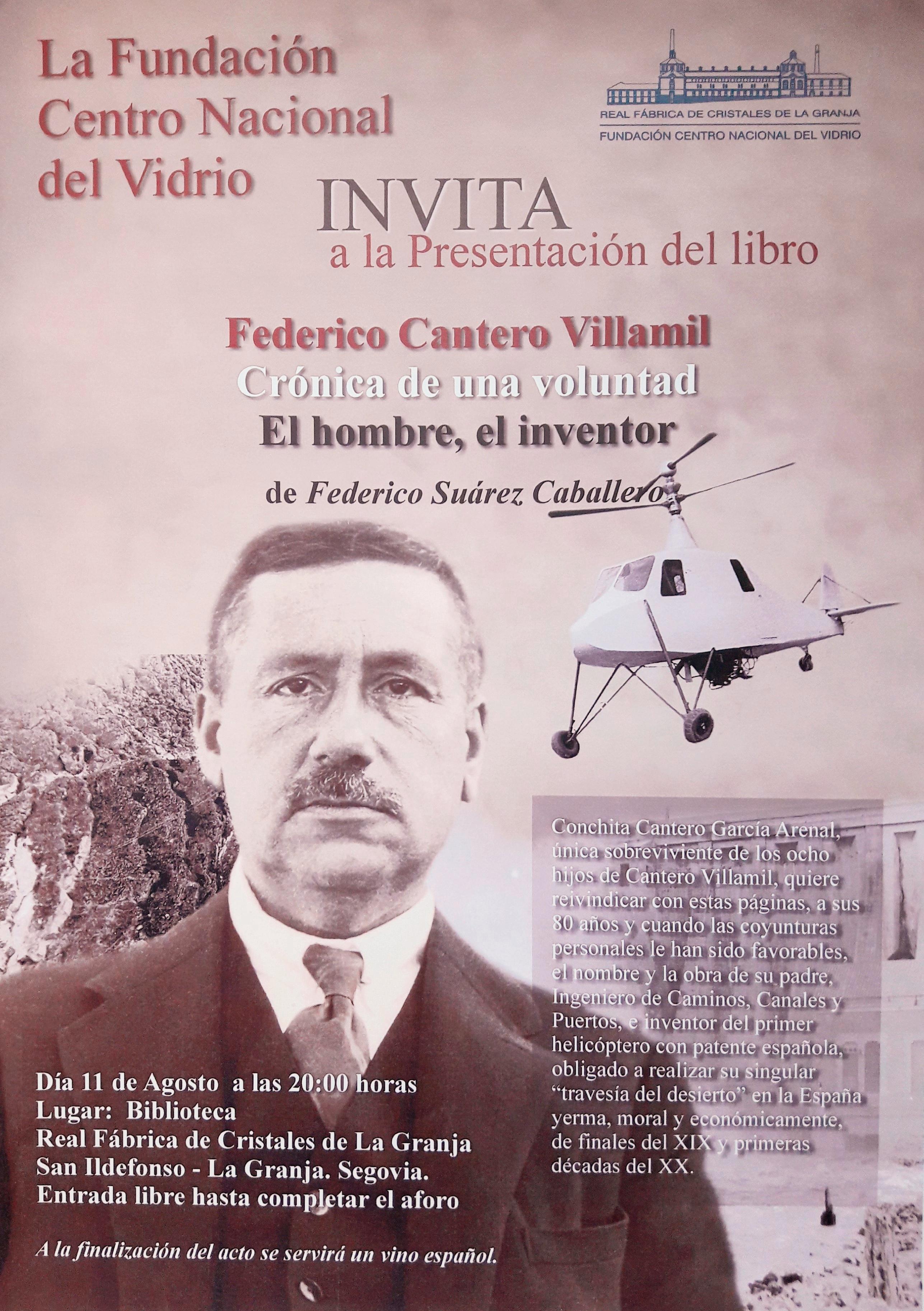 Hoy, veinte años después de los primeros trabajos de exhumación, ve la luz este epítome que pretende ser archivo, resumen y compendio de todas las actividades realizadas desde la publicación de Federico Cantero Villamil. Crónica de una voluntad. El hombre, el inventor, una aproximación a la biografía del ingeniero.