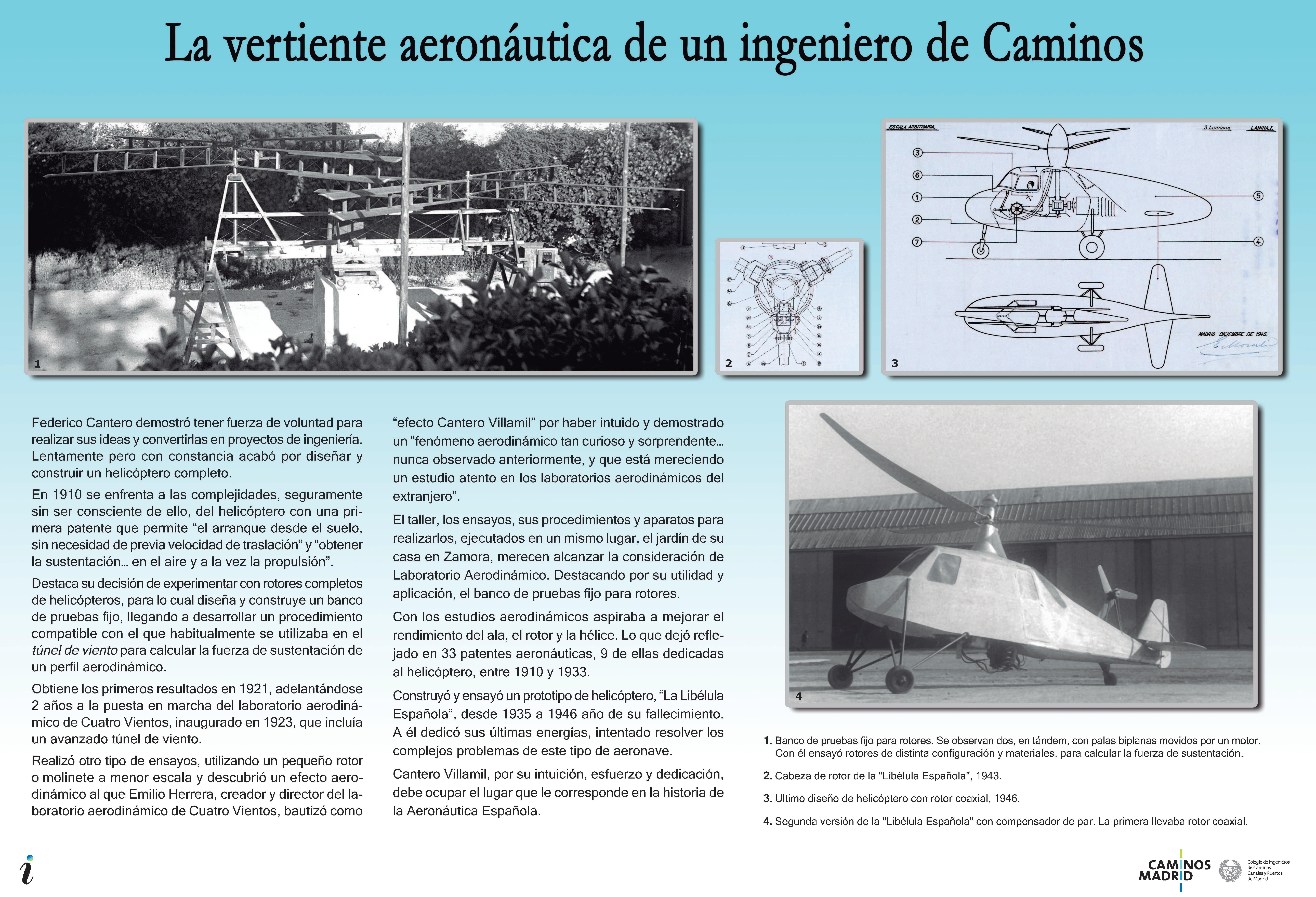 Isabel y Federico, solos o en compañía de otros, a lo largo de 20 años, han hecho una labor incesante, no ya para promocionar su biografía sino para exponer en muy distintos foros los aspectos de la figura y de la obra de Cantero que quedaban por desarrollar. No hay tecla que no hayan tocado, casi siempre con éxito. Son muchas las personas que han cooperado eficazmente con ellos y de casi todas hay referencias en esta publicación. Yo me limitaré a citar a un hombre extraordinario ya fallecido, José Luis López Ruiz, catedrático de helicópteros y miembro de la Real Academia de Ingeniería, cuya enorme sabiduría contrastaba con su encantadora sencillez.