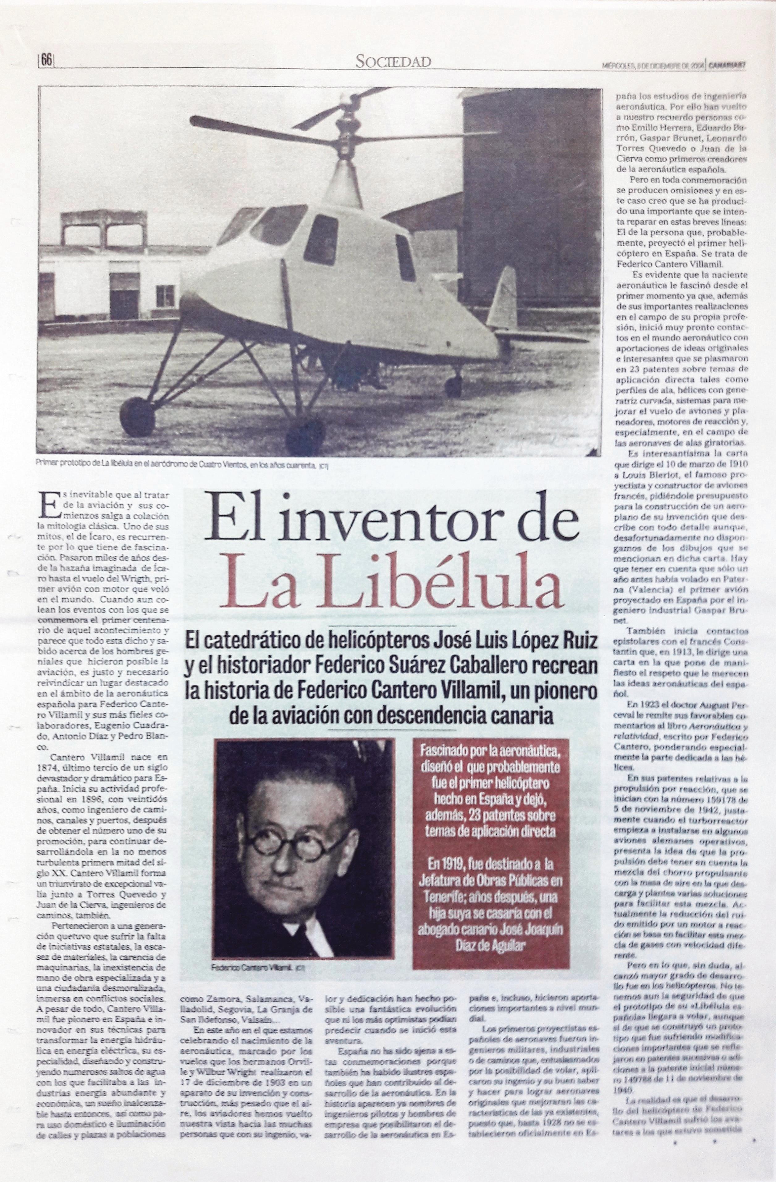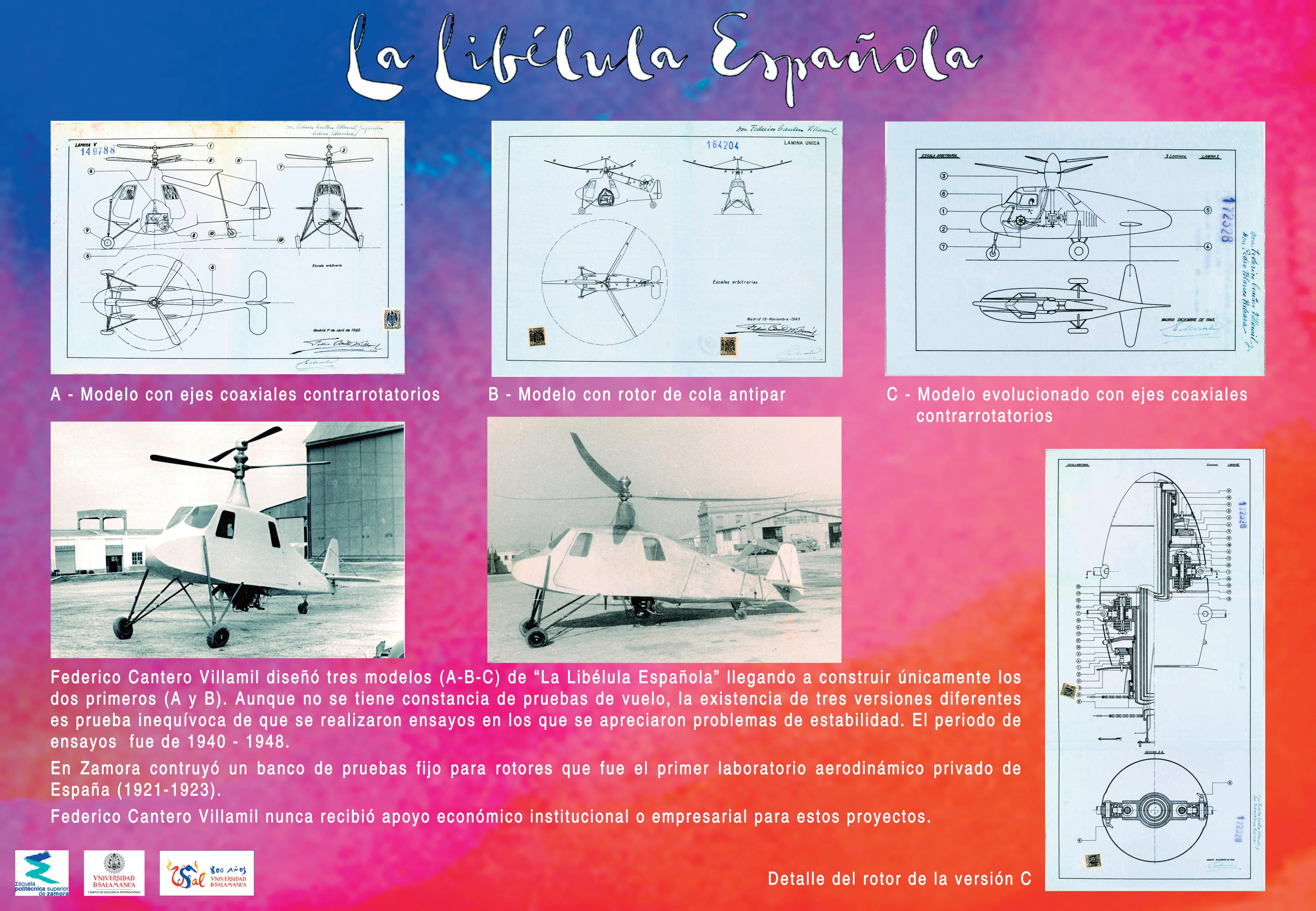 de julio de 1936. La Libélula Española pudo ser el primer helicóptero del mundo, diseñado y construido por un español. Las pruebas estaban previstas para agosto, y el conflicto armado obligó a un parón hasta 1940, tiempo suficiente para que Sikorsky, en los Estados Unidos, con los medios económicos necesarios, hiciese volar en 1939 a su helicóptero SV-300.