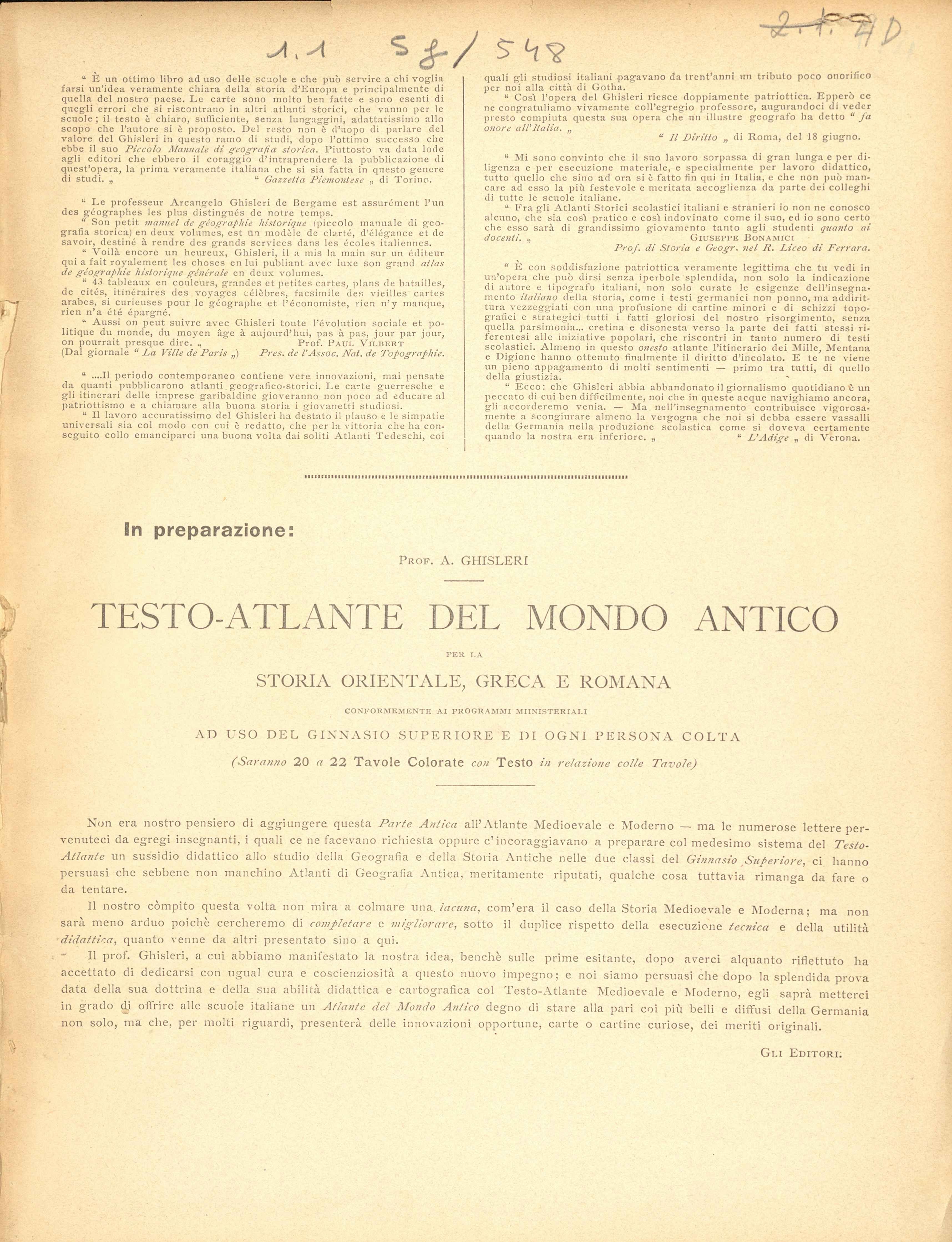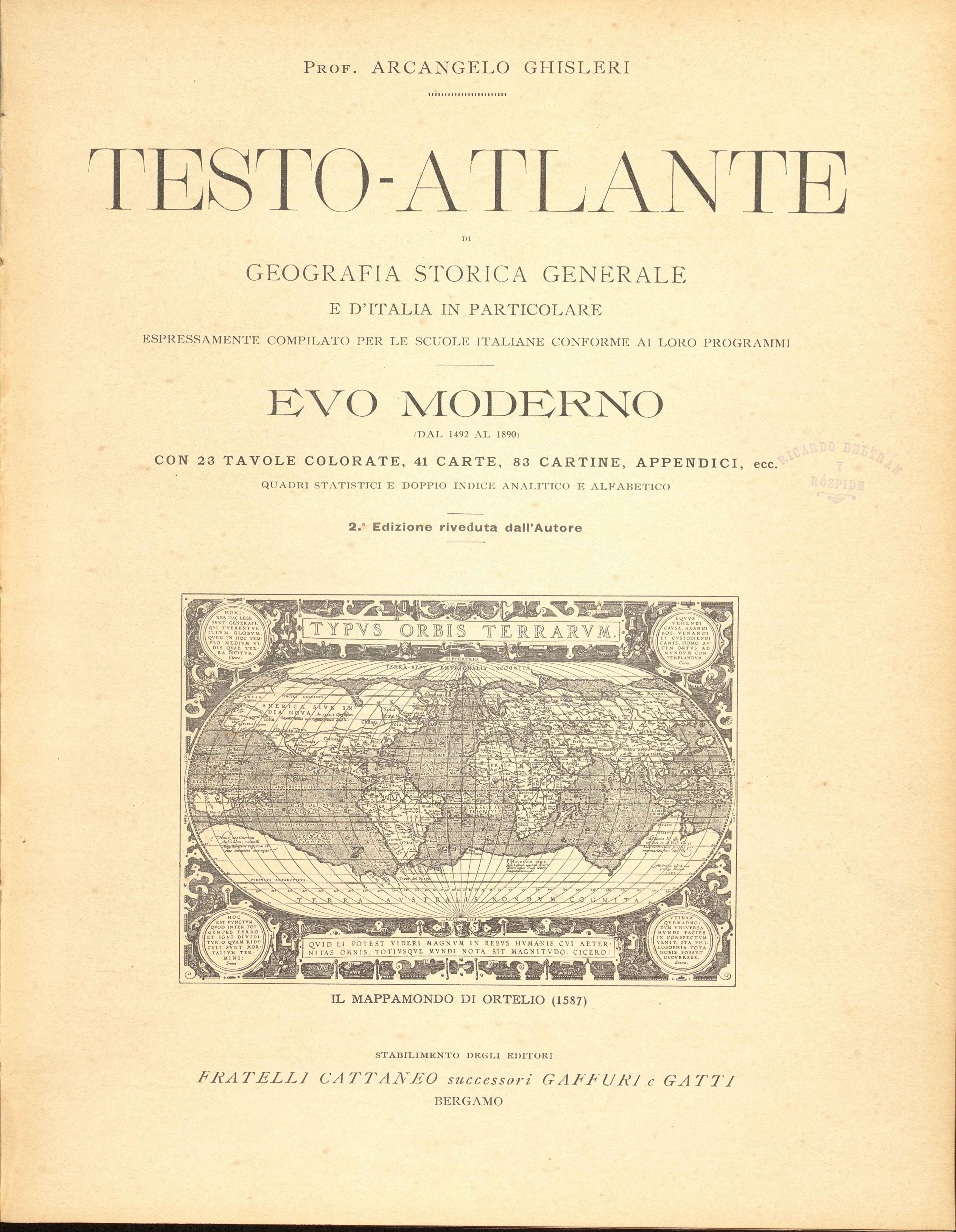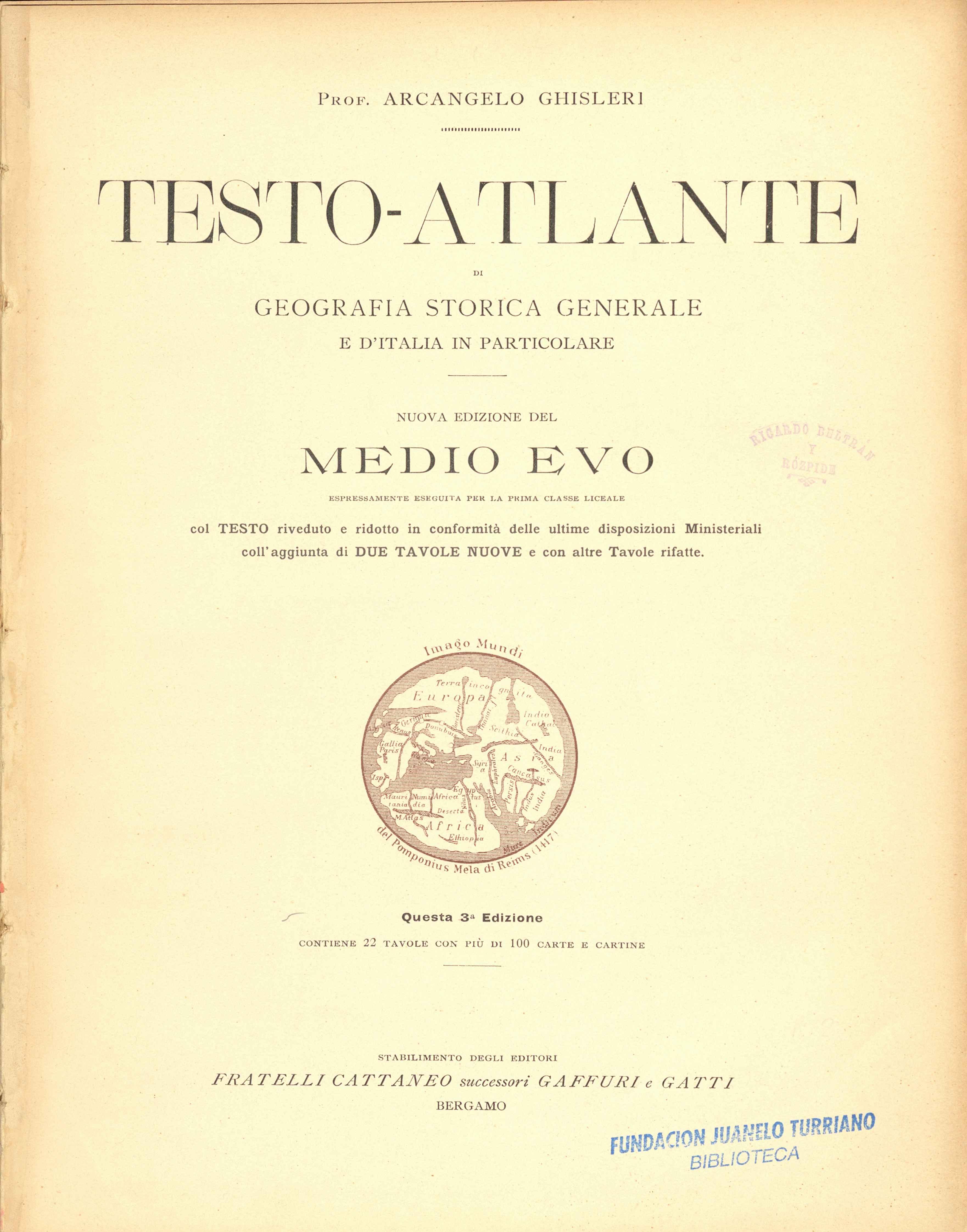 Testo _atlante di geografía storica generale e d'Italia in particolare_nuova edizione del Medio E