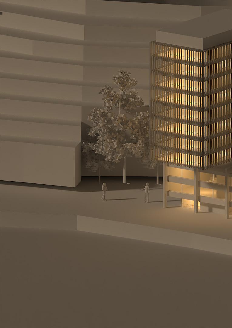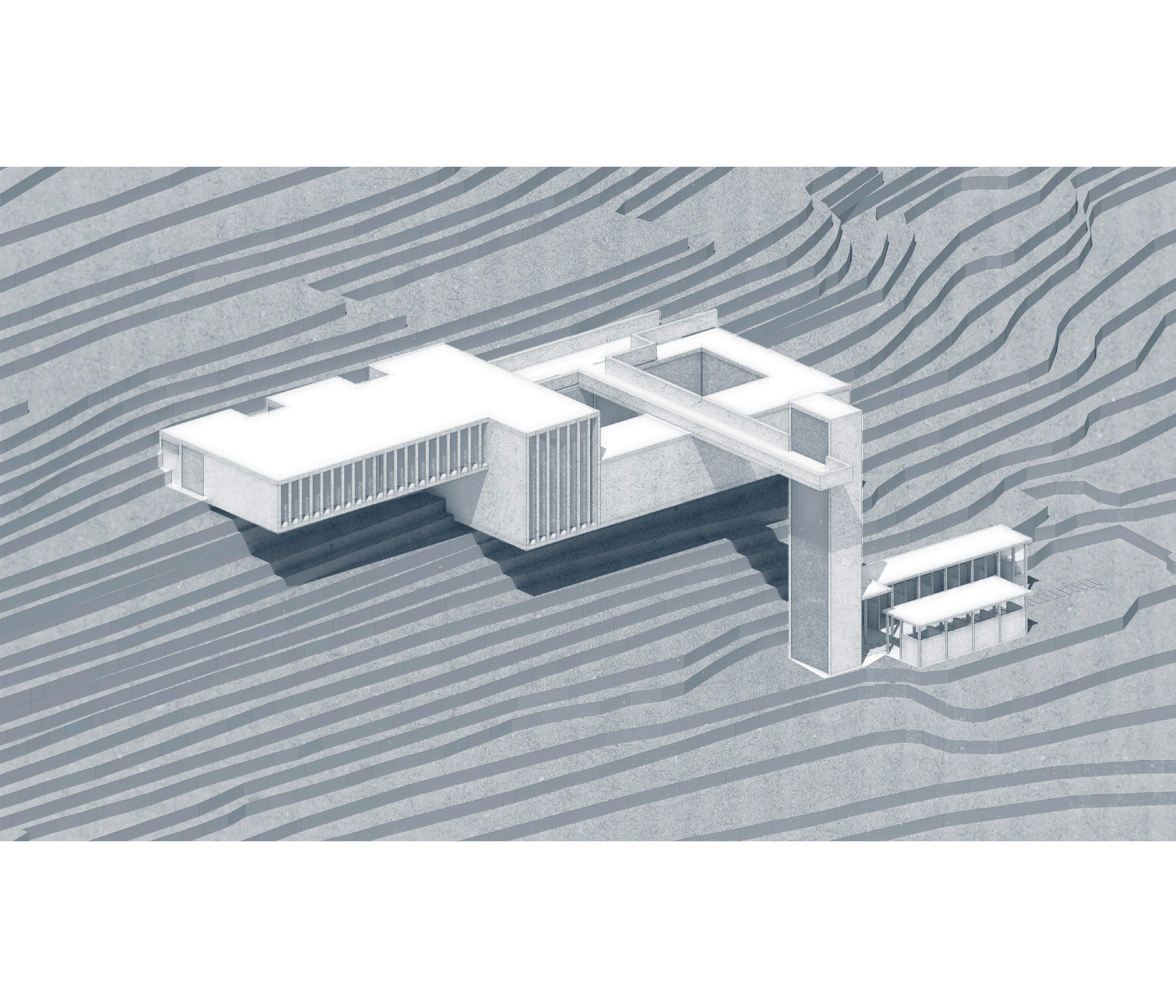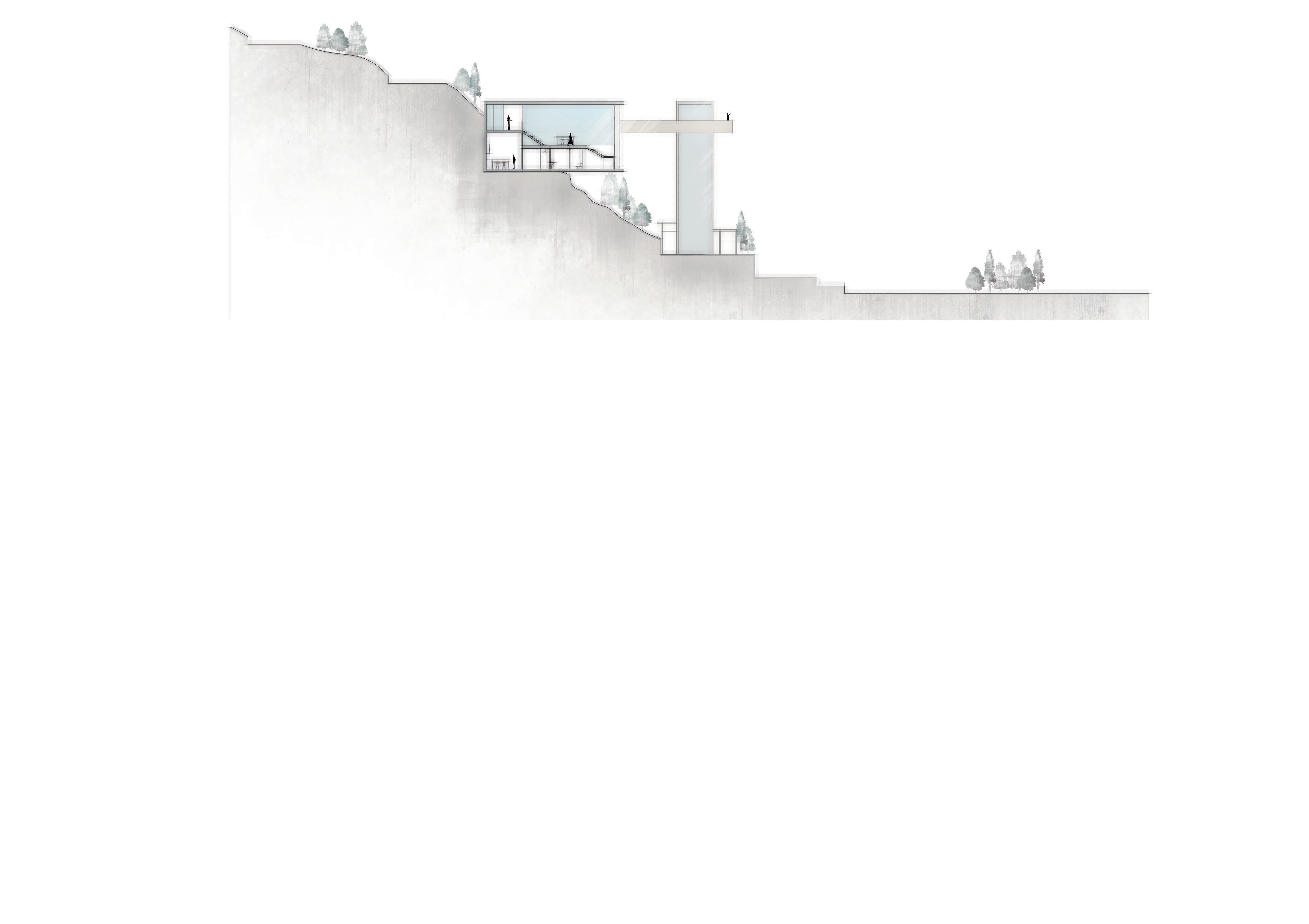 El proyecto gira en torno a una torre ascensor diseñada para conectar los diferentes niveles del terreno de forma directa, ofreciendo ademásvistas panorámicas de la ciudad.