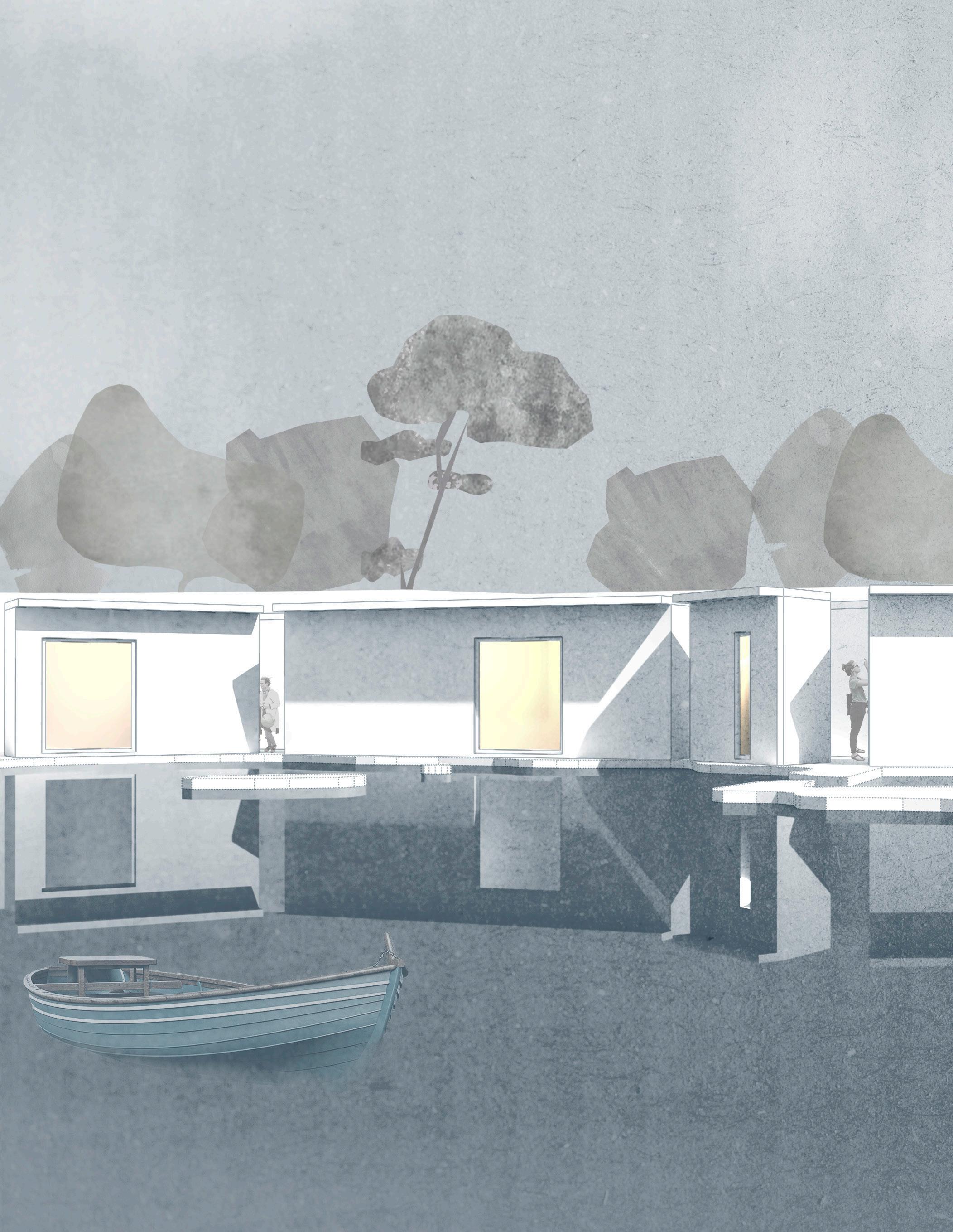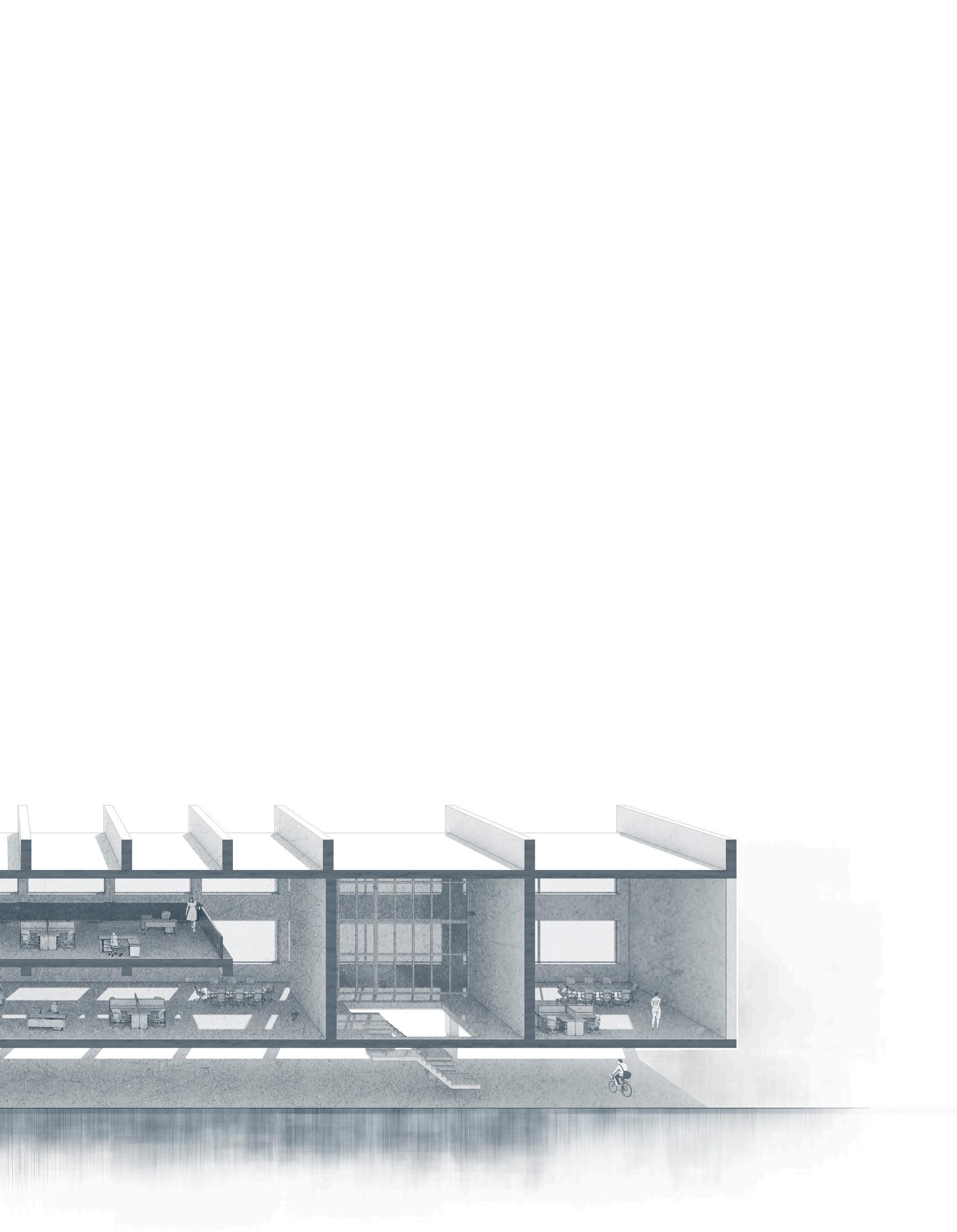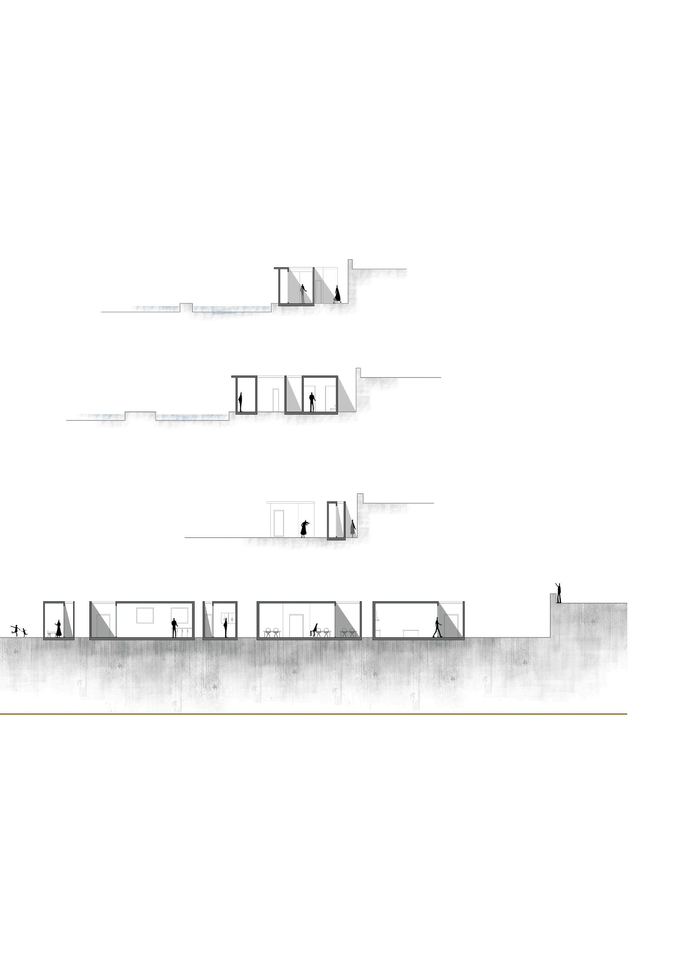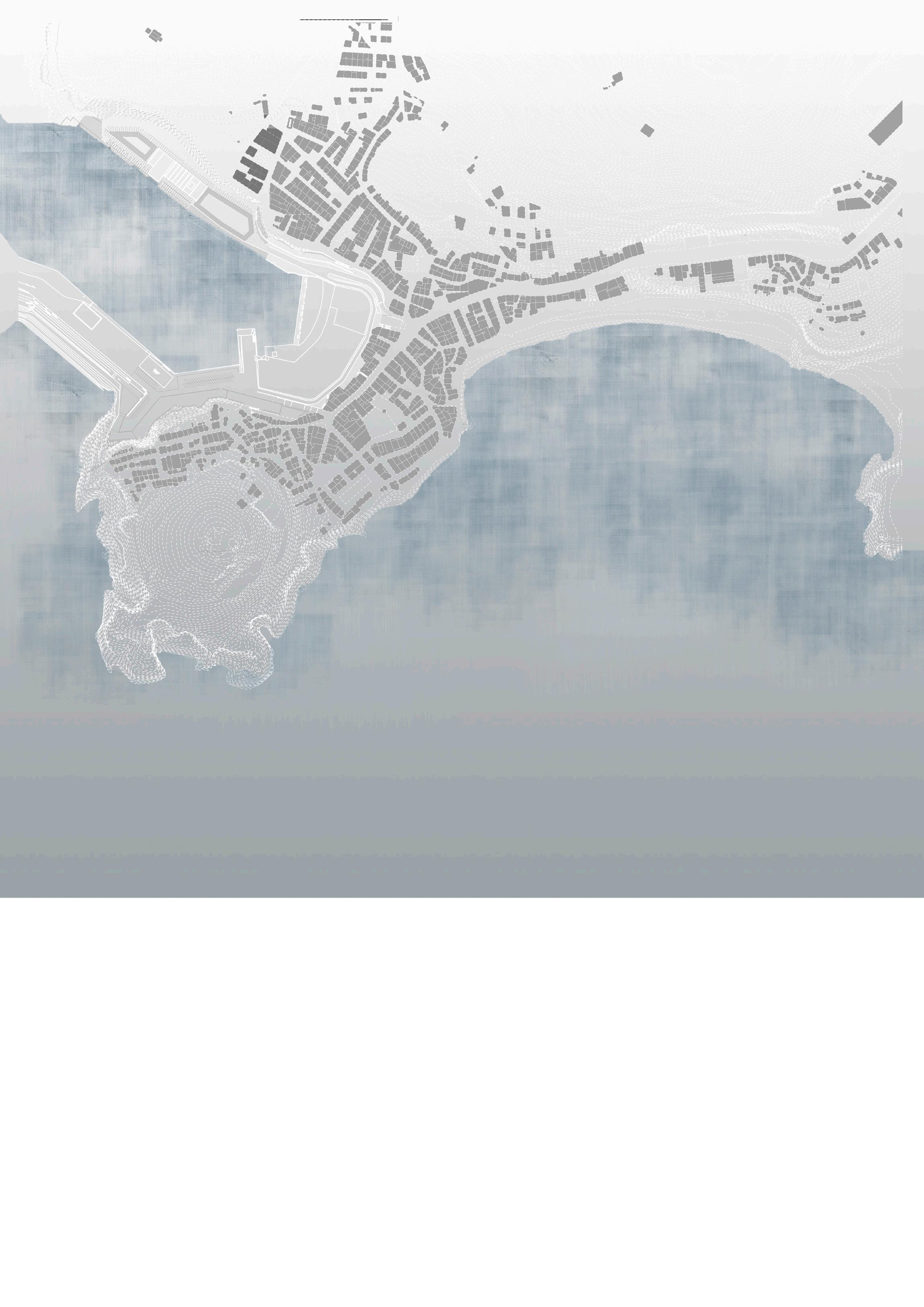 El concepto es generar dos grietas, aprovechadas para crear los recorridos del proyecto, reforzando la línea de costa presente al lado sur y la medianera situada en el lado norte. Los volúmenes que albergan el programa del proyecto se separan entre sí para generar los puntos de conexión entre los recorridos y las entradas de luz a las grietas.