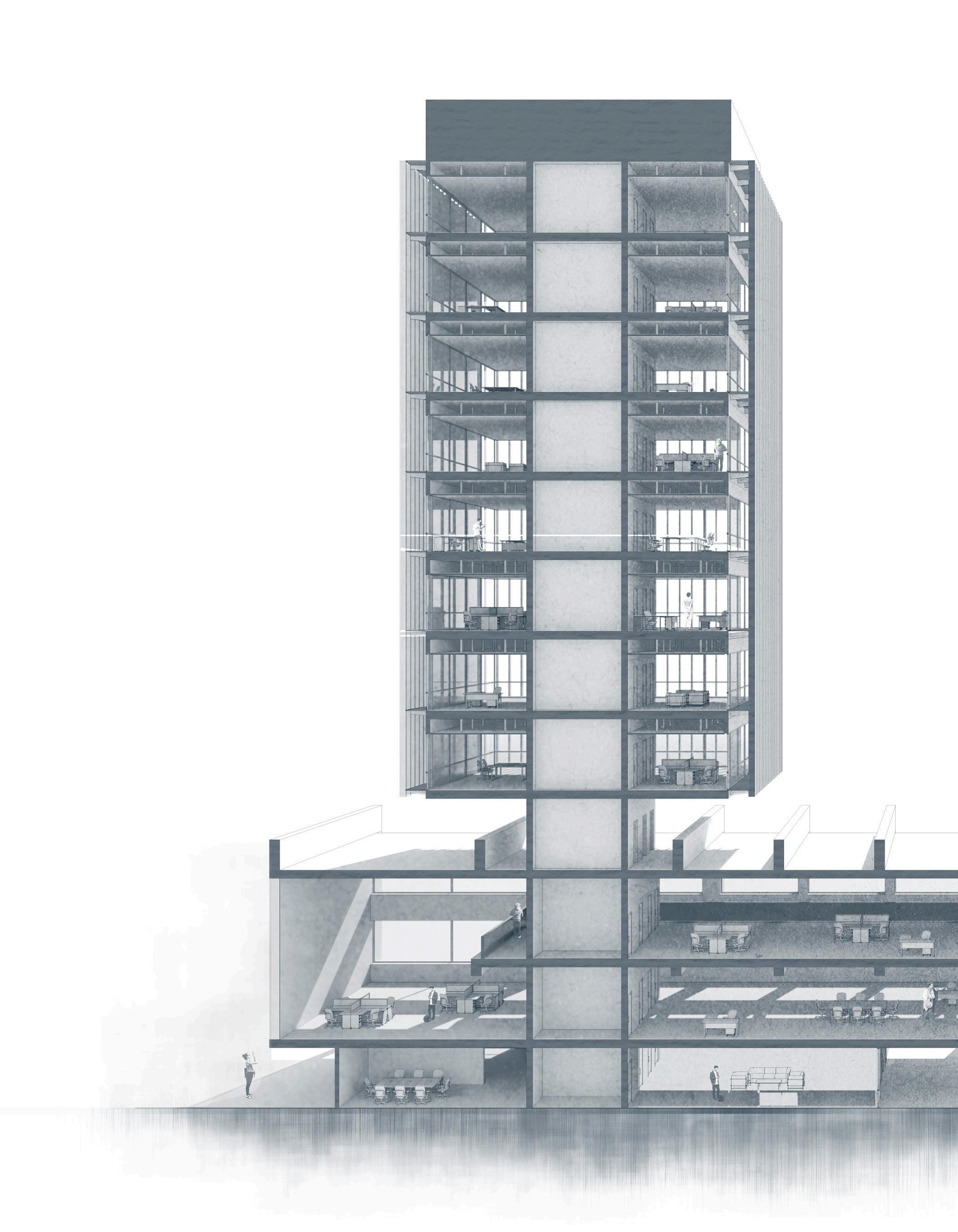 El proyecto se centra en un edificio que a su vez se compone de dos volumenes.