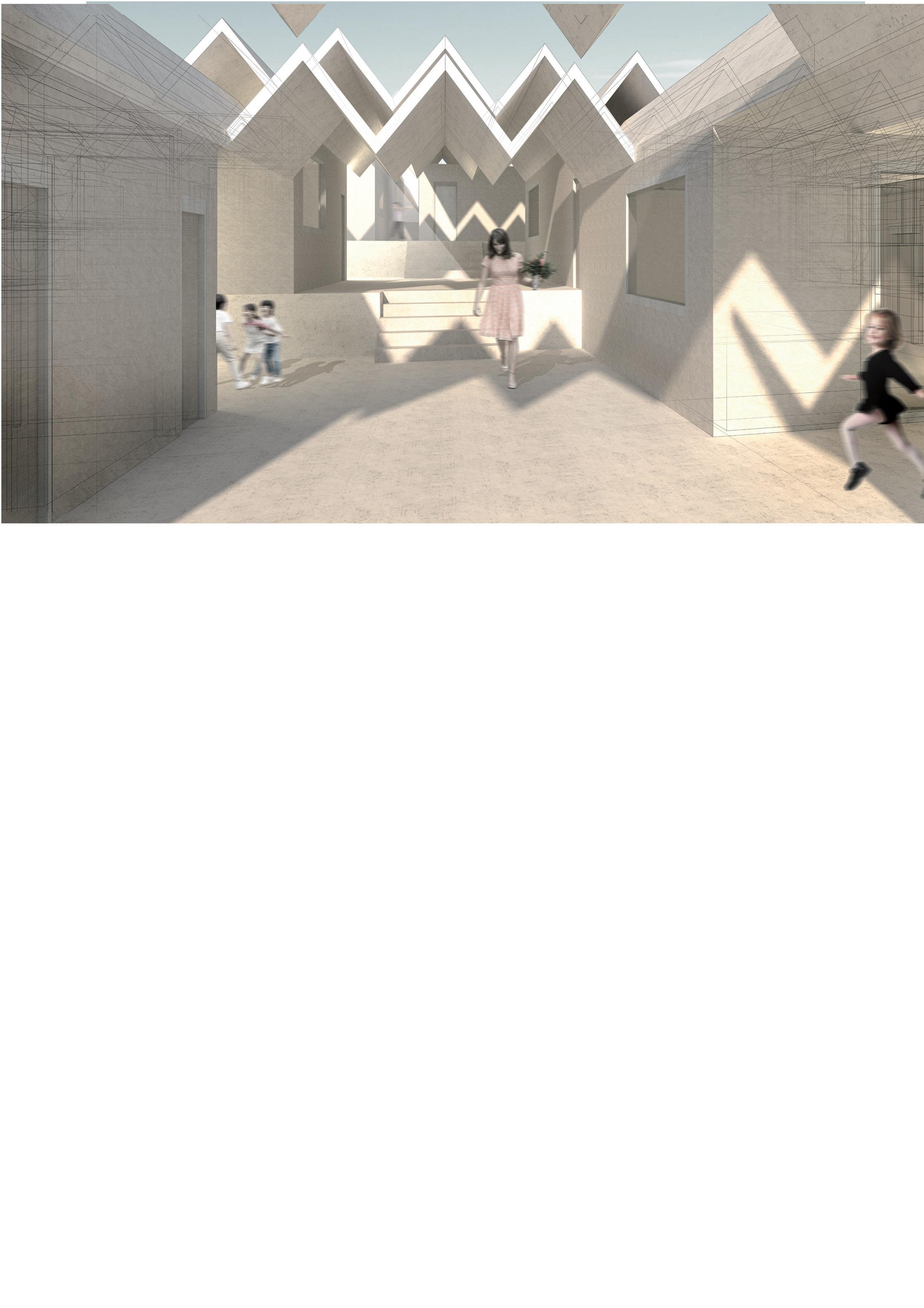 Esta nueva pequeña escuela consta de dos aulas para infantes de entre tres y cuatro años y otras dos para alumnos de entre cinco y seis años. También cuenta con cinco aulas exteriores, una por cada aula interior, con el objetivo de fomentar una enseñanza no estrictamente ligada al aula, brindando a los alumnos un espacio donde puedan aprender, experimentar y relacionarse.