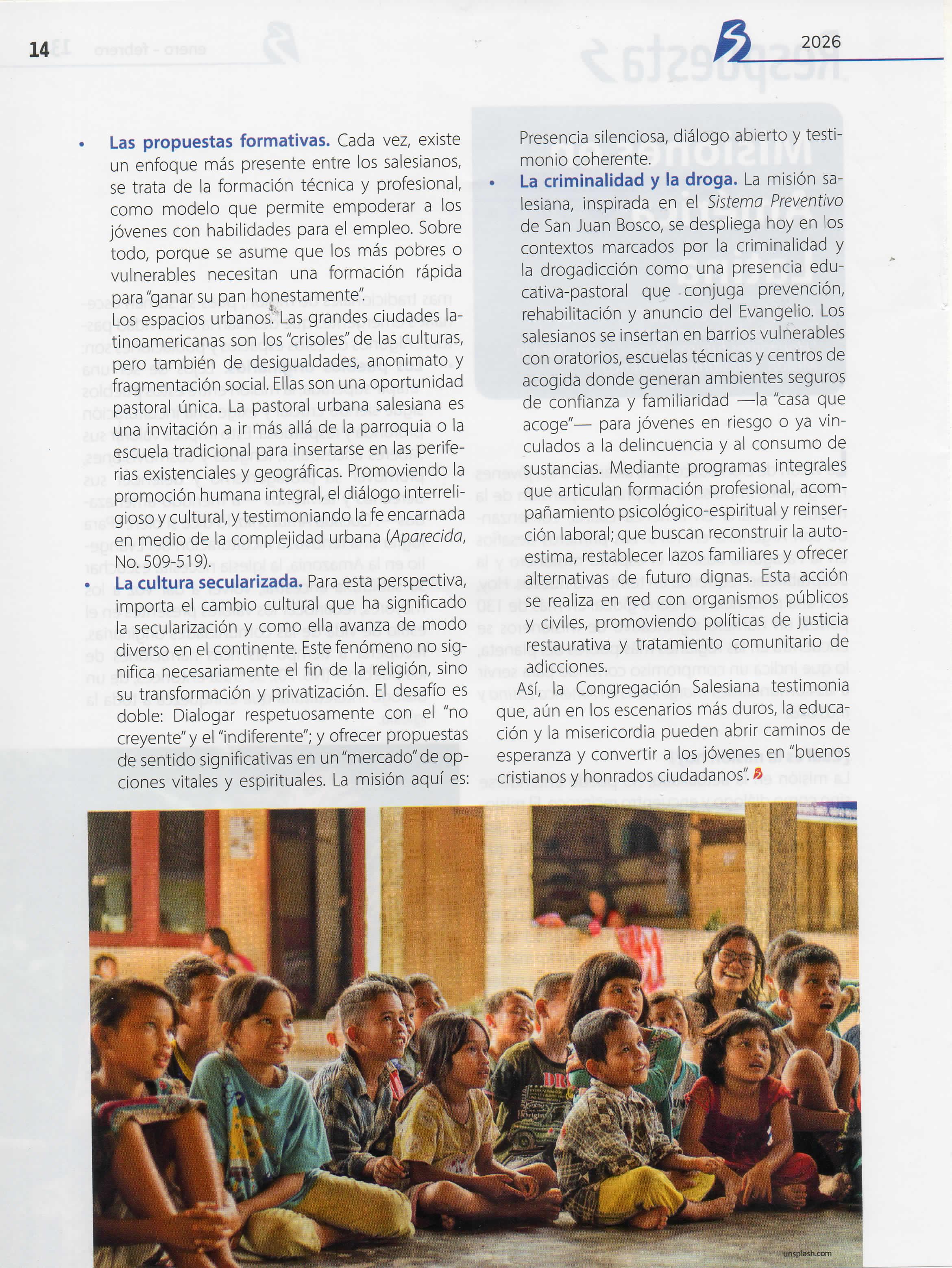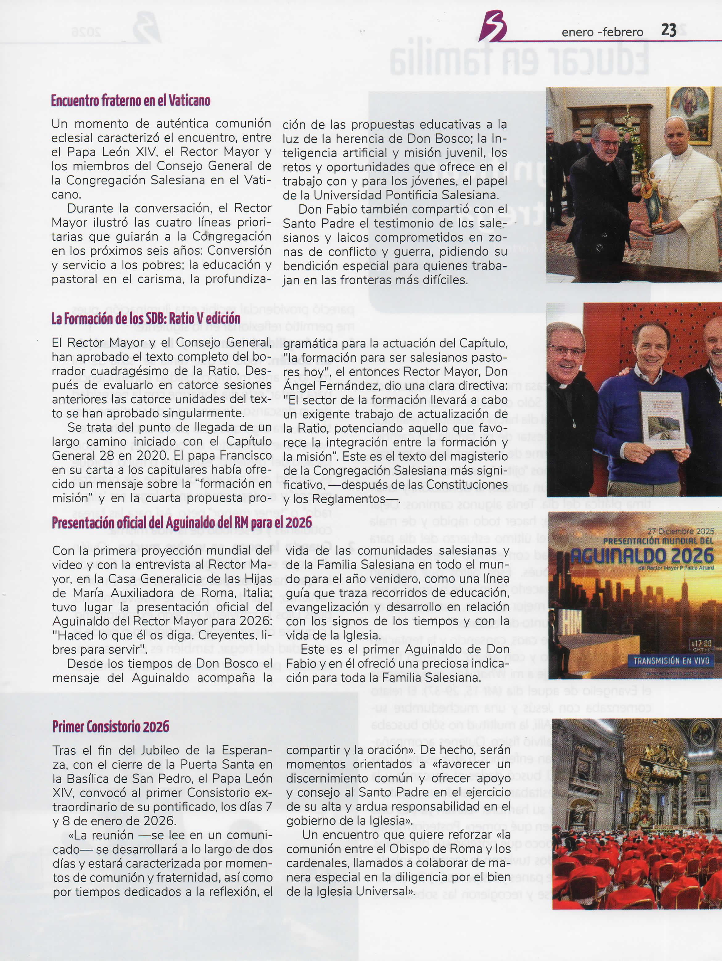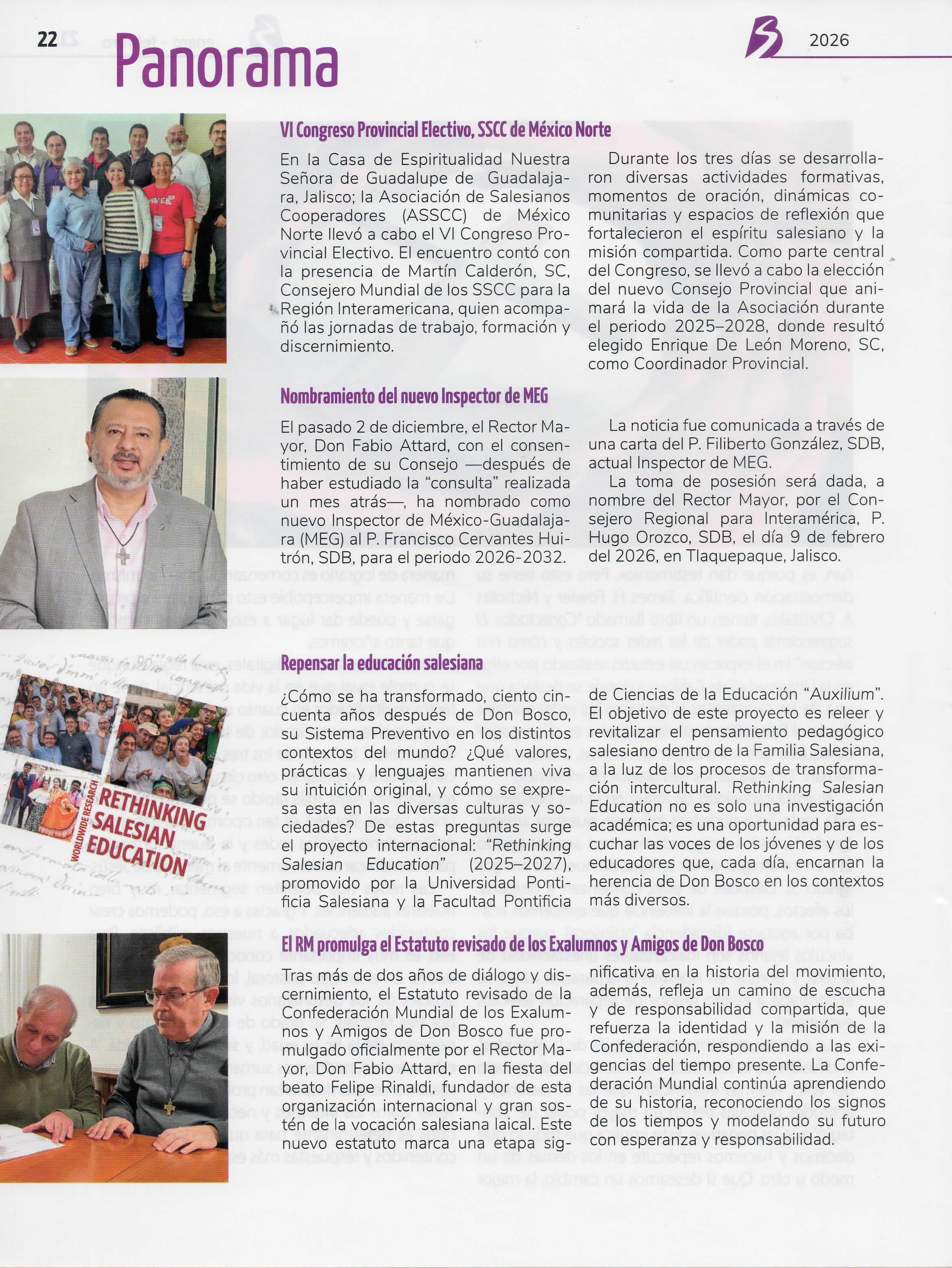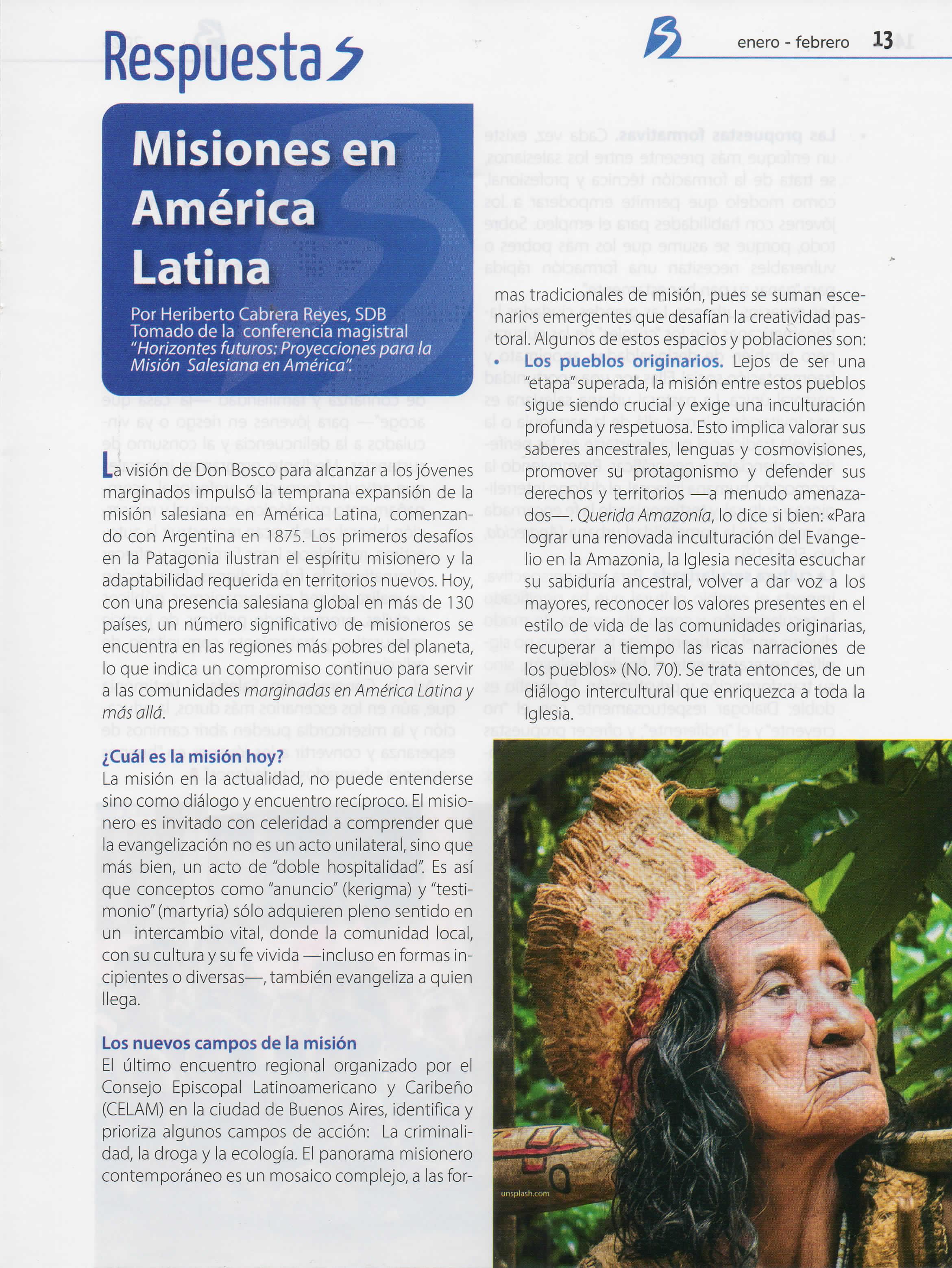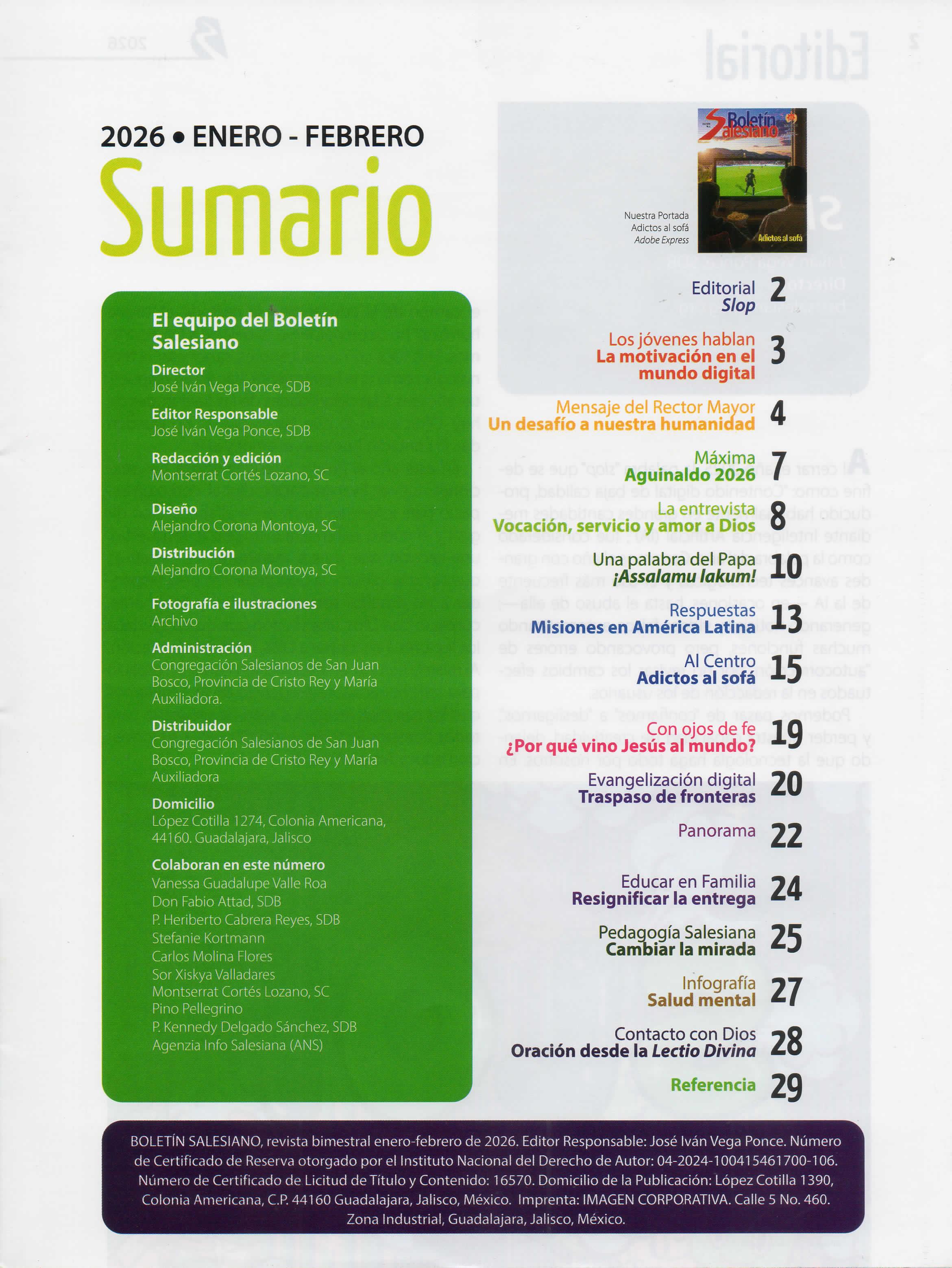 En este año el Boletín Salesiano ofrece tres secciones nuevas: Evangelización digital, como un espacio para ir formándonos en la alfabetización digital y el nuevo patio para evangelizar; respuestas, una sección que quiere manifestar las iniciativas que tiene la Iglesia y la Congregación para responder a los desafíos sociales actuales; y finalmente, contacto con Dios, una sección que busca ayudar a los lectores a encontrar a Dios, mediante la oración Al mismo tiempo,en esta sección habrá un espacio para reflexionar sobre preguntas de fe Esperamos que los cambios realizadossean de provecho para todos nuestros lectores y contribuyan a su formación educativo pastoral, ñ