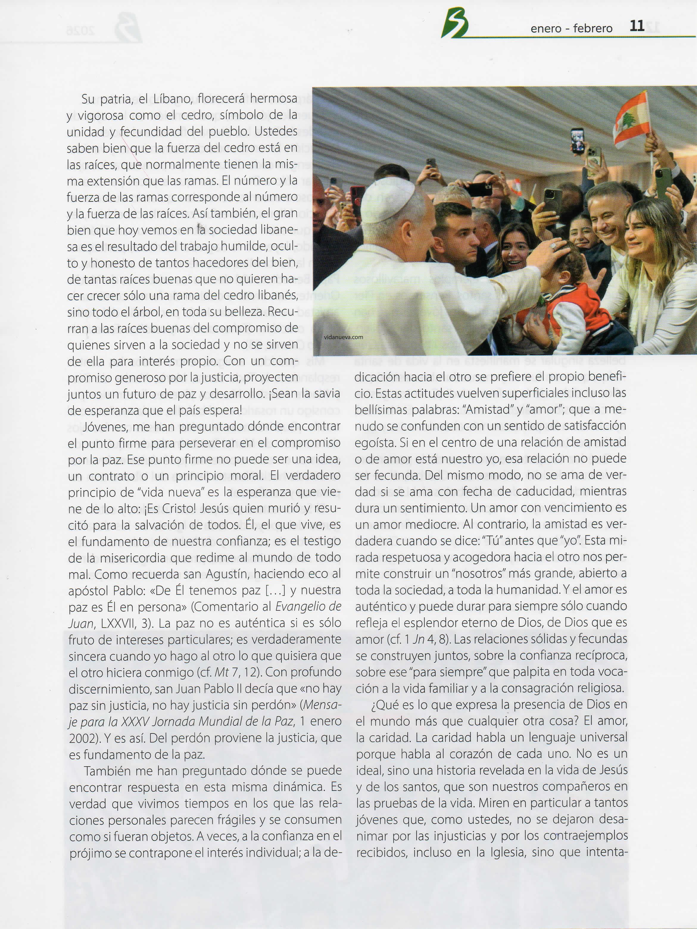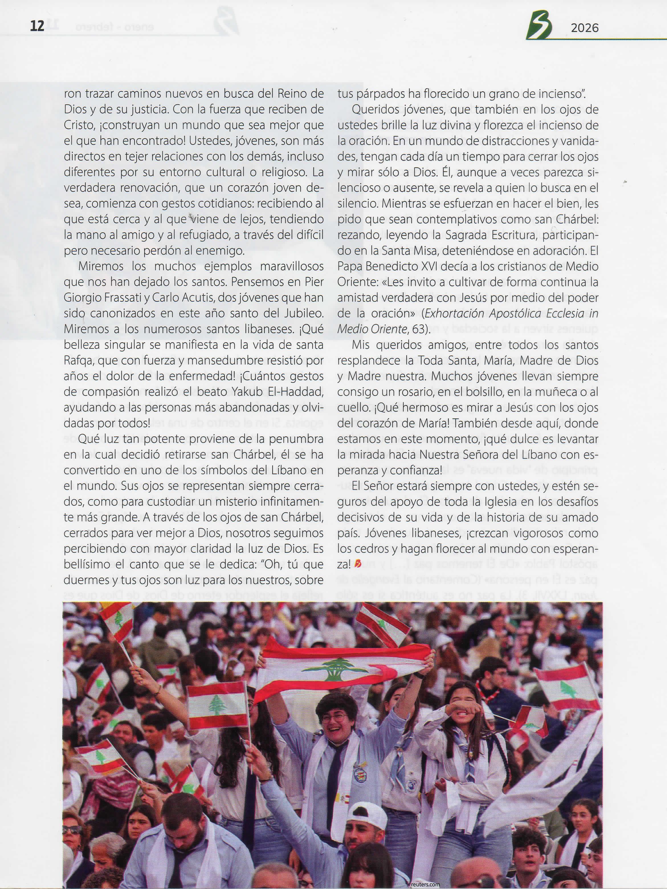 «¿ueridosjóvenes del Líbano, ¡lapaz esté con ustedes! ['Assalamu lakum!", en árabe]: