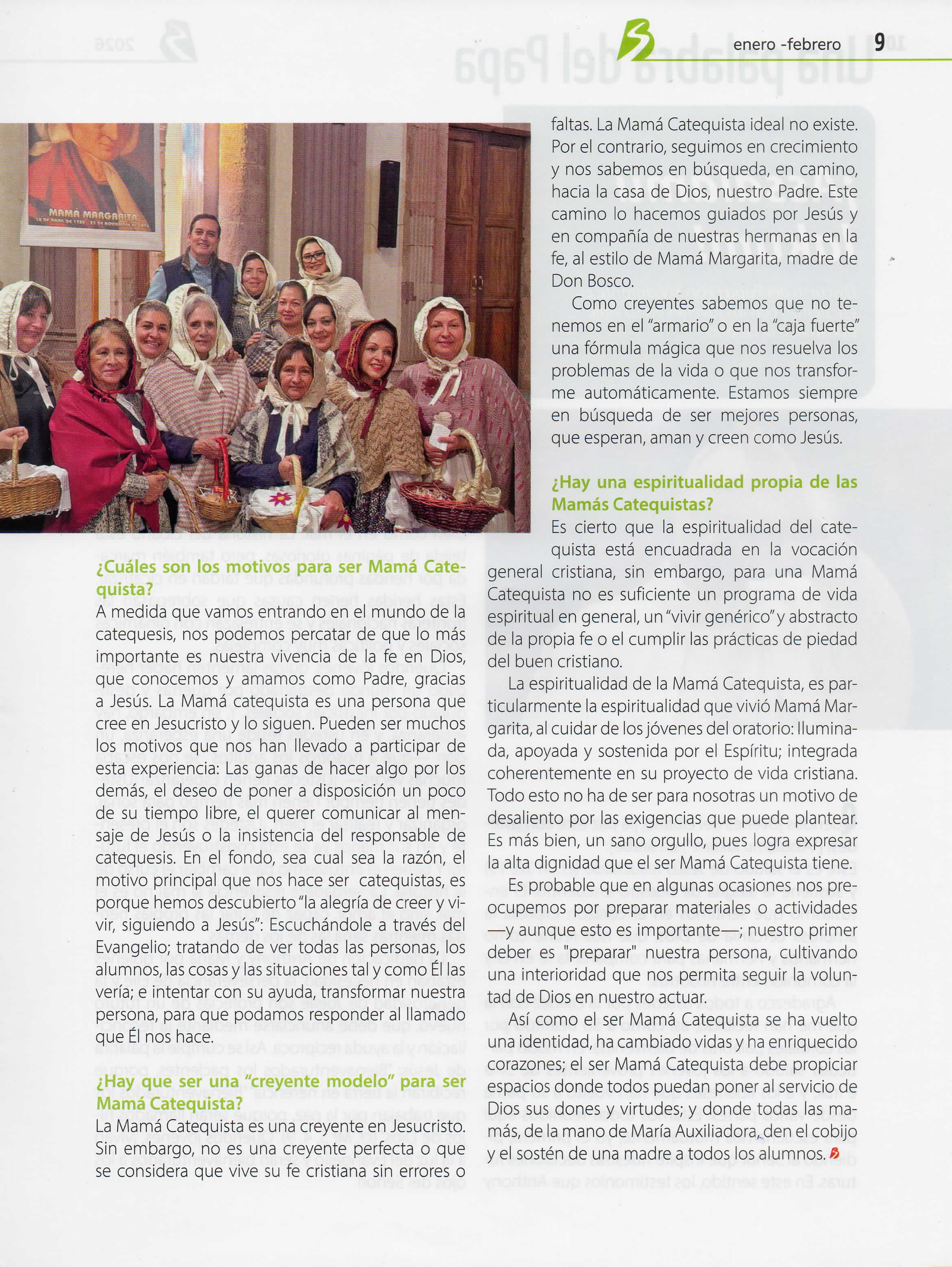 Pon Bosco inició su formación religiosa de manos de su madre Margarita, quien supo hacerlesentir a un Dios cercano y amoroso, quien le ayudó a disfrutar de las cosas de Dios y a prepararse para recibirlo sacramentalmente de la mejor manera posible En varios de nuestros colegios yespacios formativos, la presencia de madres de familia —y en uno que otro, la presencia de padres de familia ayudan a dar ese acompañamiento maternal a las niñas,los niños y los adolescentes,paratransmitir y deleitarse de eseencuentro con Dios