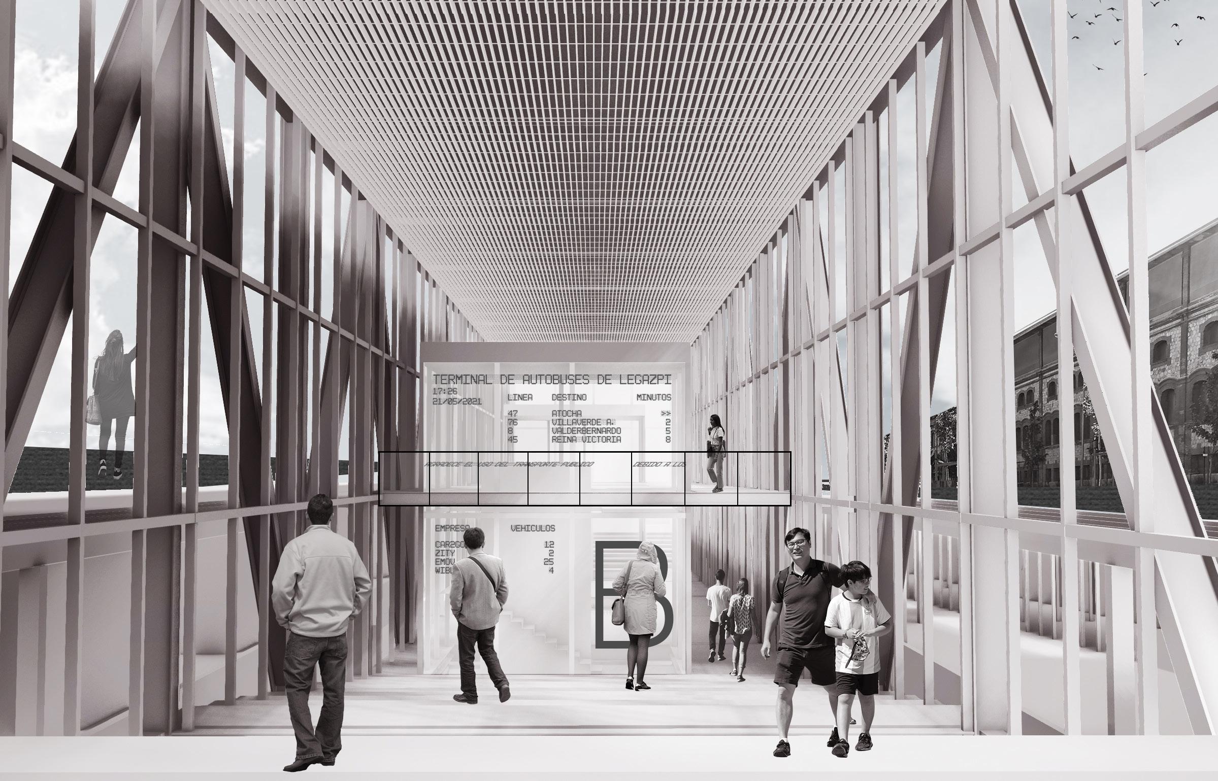 Una pieza que intenta ser independiente del resto de la estructura pero que, a su vez, es capaz de conectar y dar coherencia al proyecto. En ella, las circulaciones peatonales del edificio. Circulaciones de subida y bajada, de recorrido longitudinal. Acompañando estas circulaciones, diversos usos públicos que dotan de carácter humano a la infraestructura.