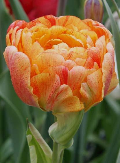 • Dubbele, pioenachtige bloem met een volle opbouw en directe impact